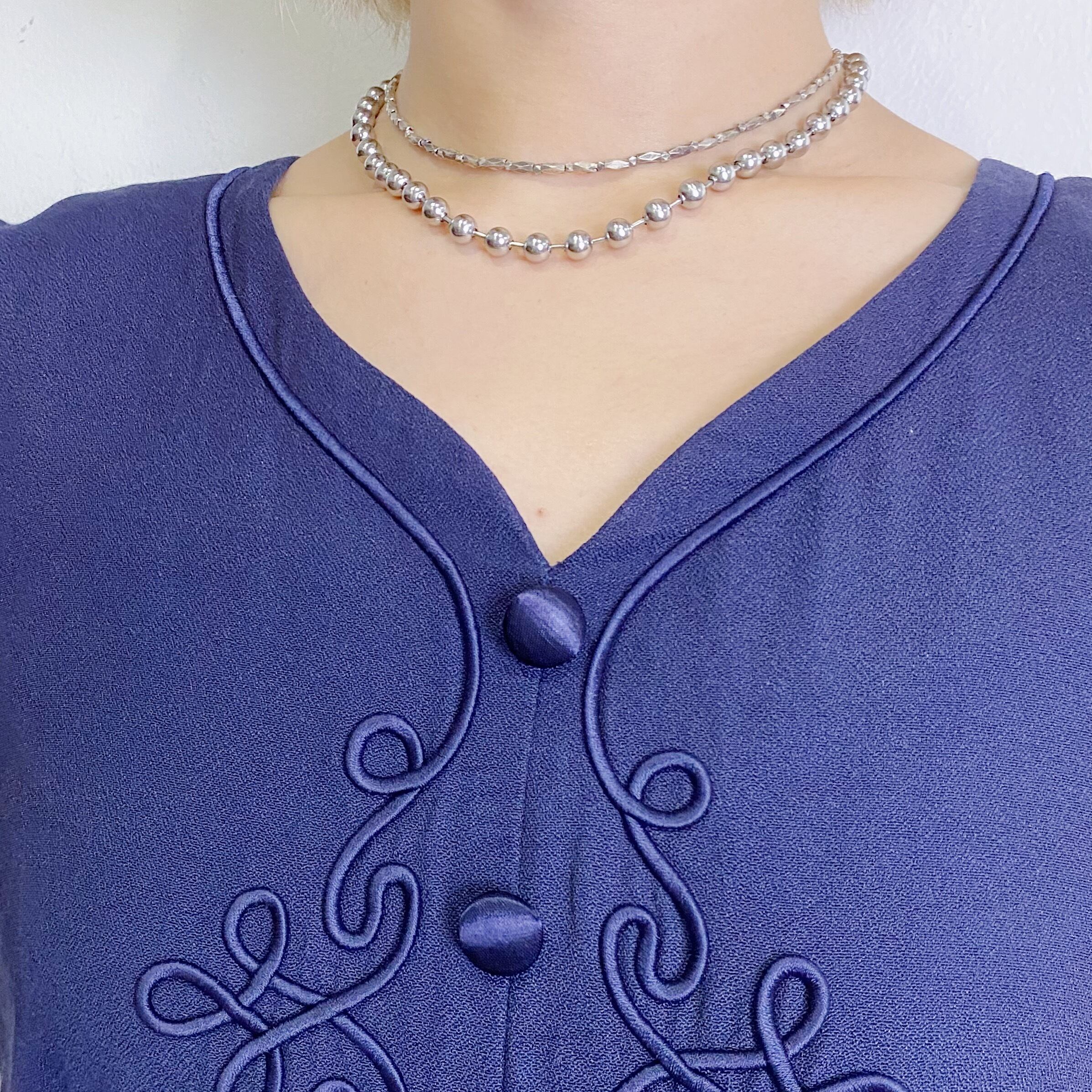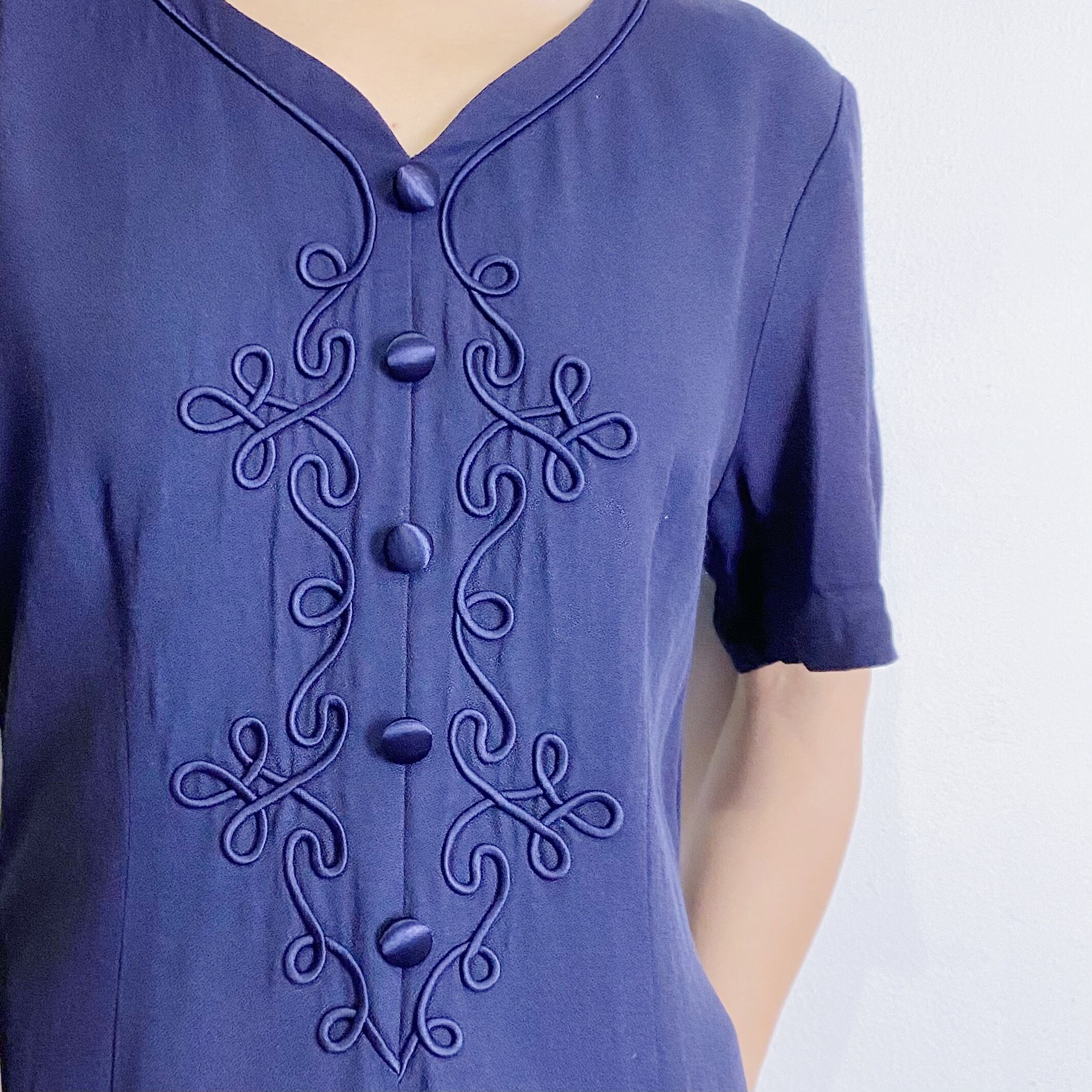 80s navy embroidery rayon dress