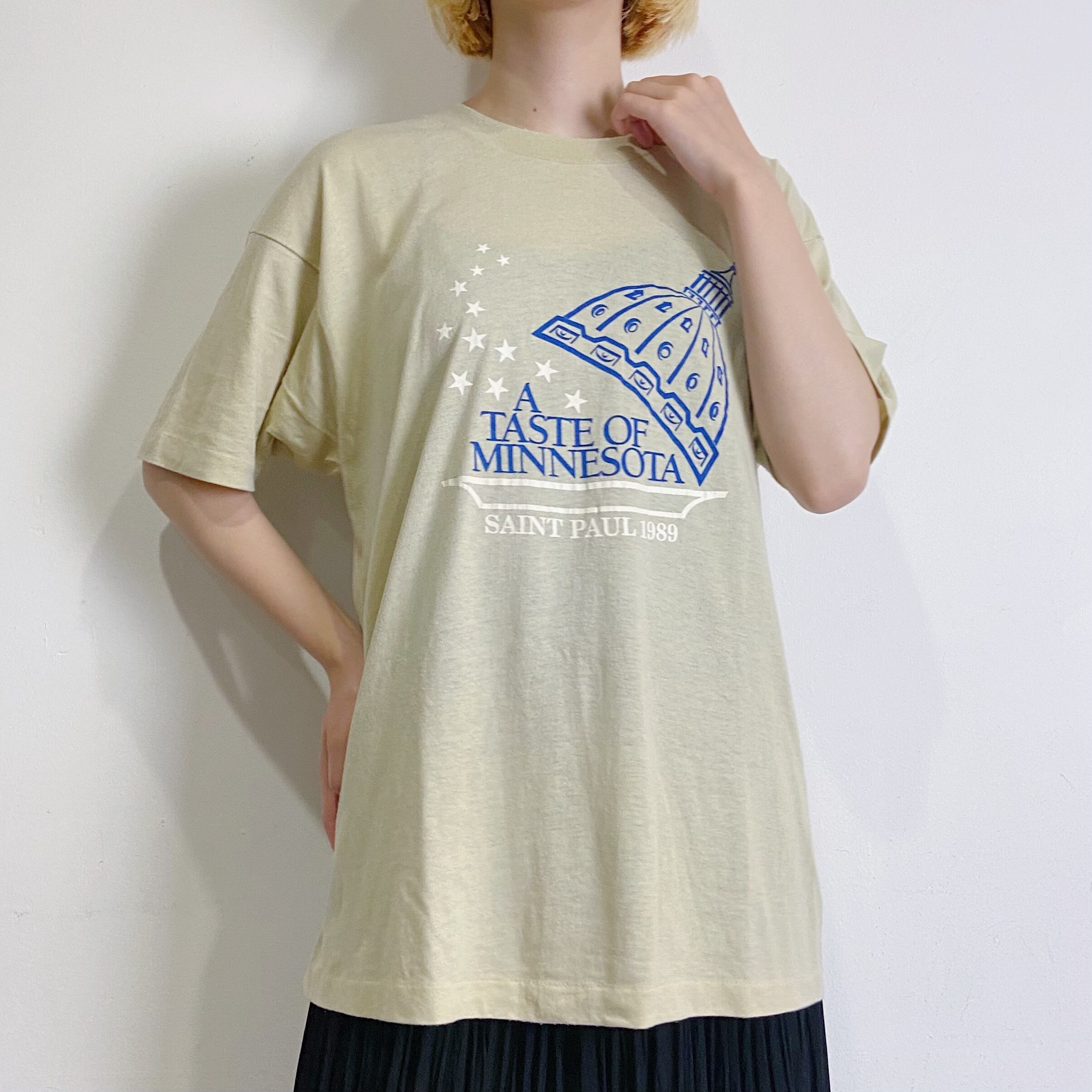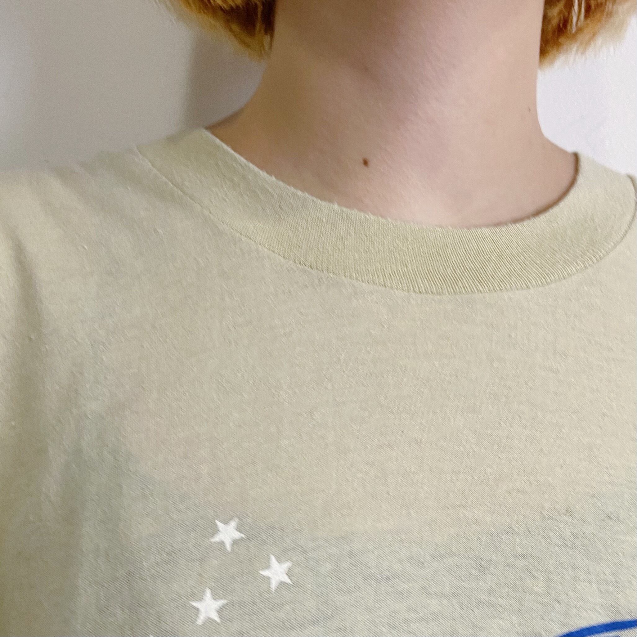ベージュカラーにブルーの色合いが可愛い、ヴィンテージTシャツです。