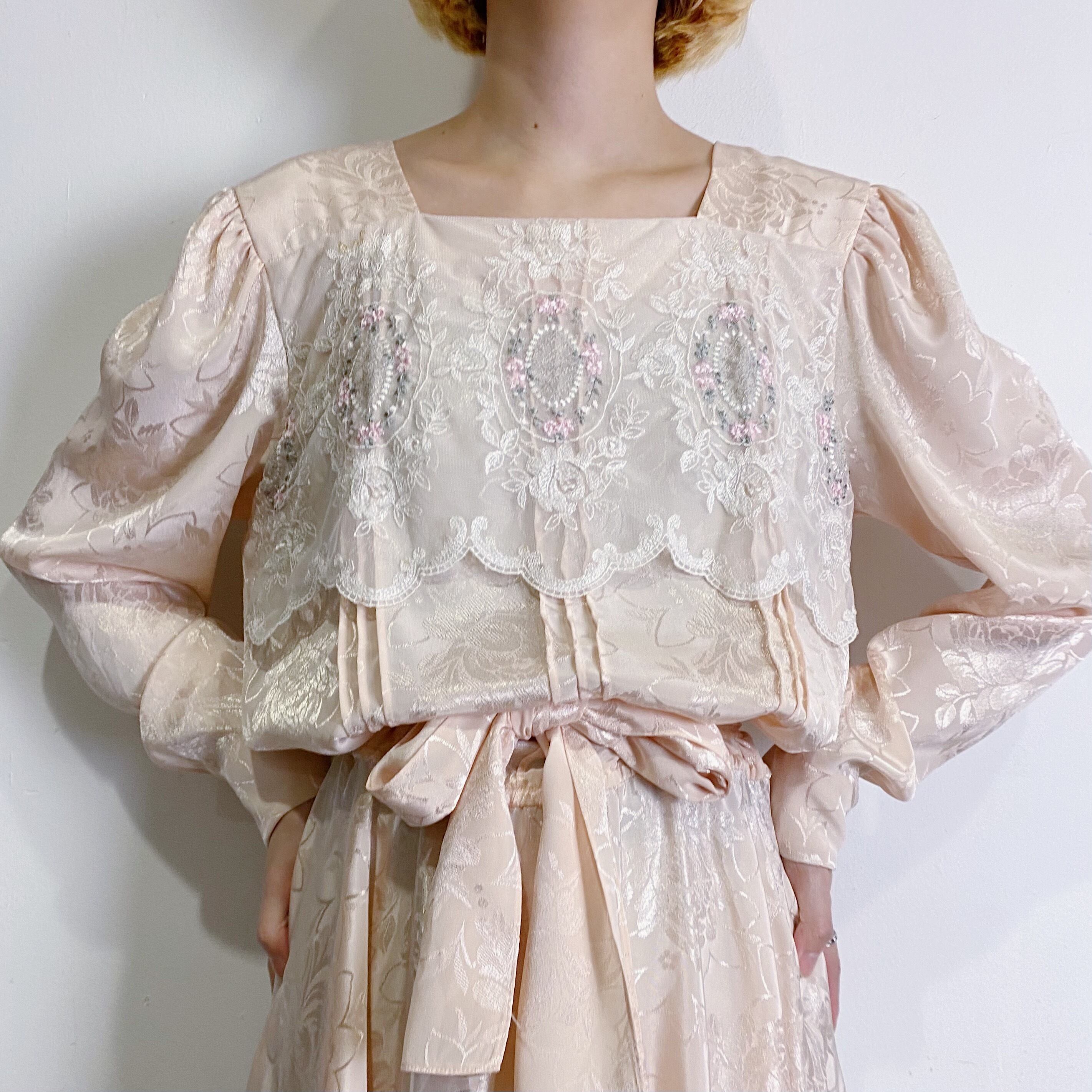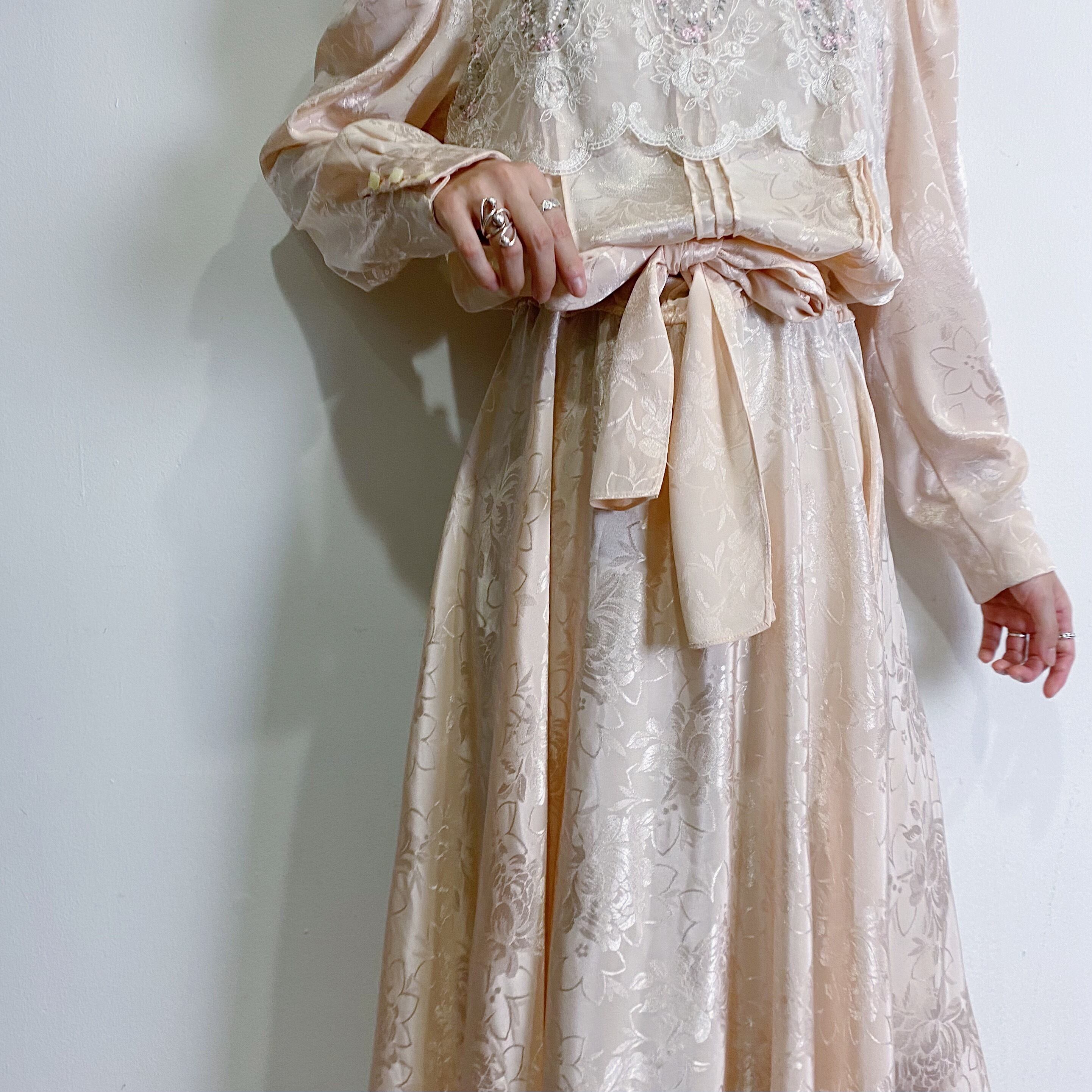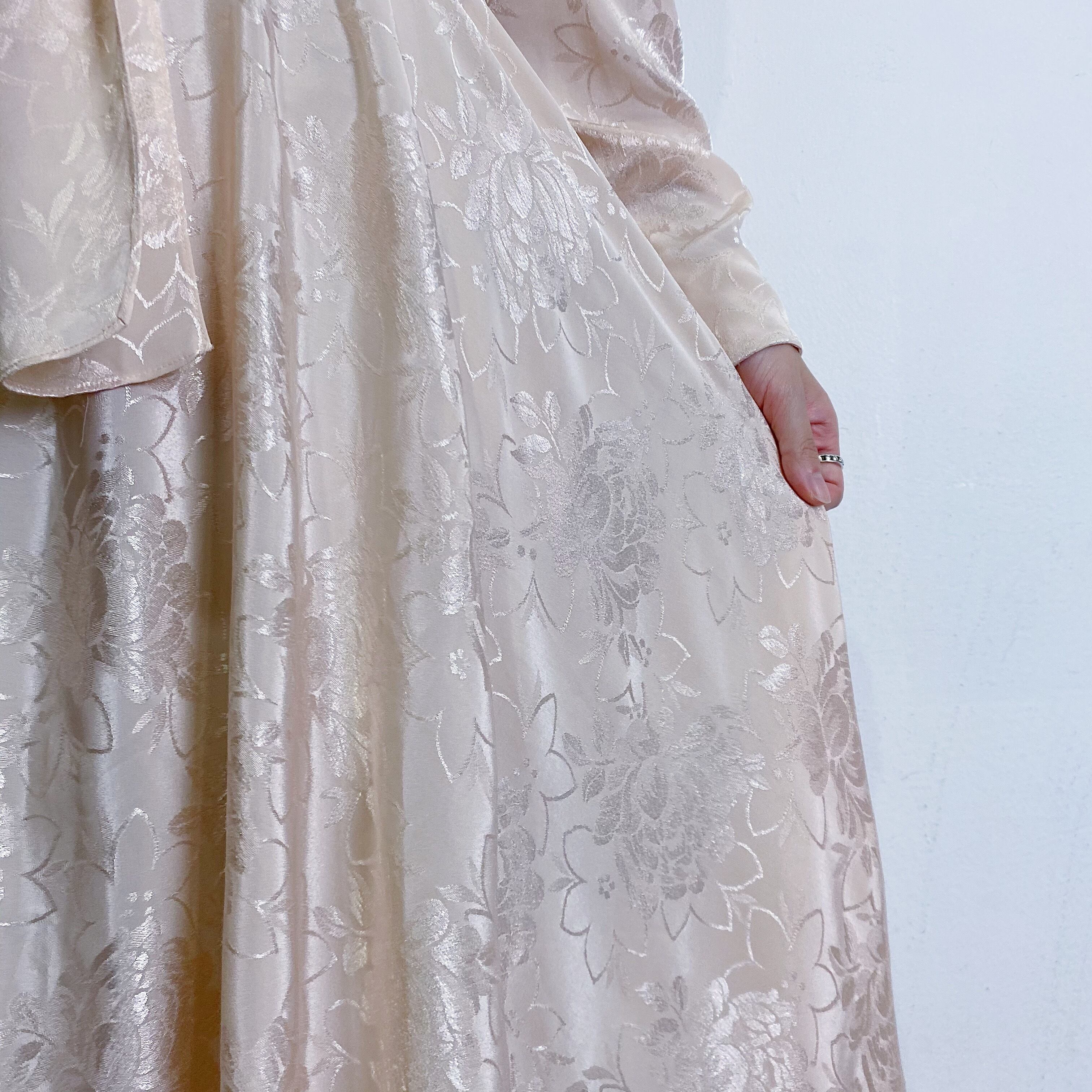 生地はサテンに模様が入っており、袖のベルトなどもどこを取っても可愛いデザイン。