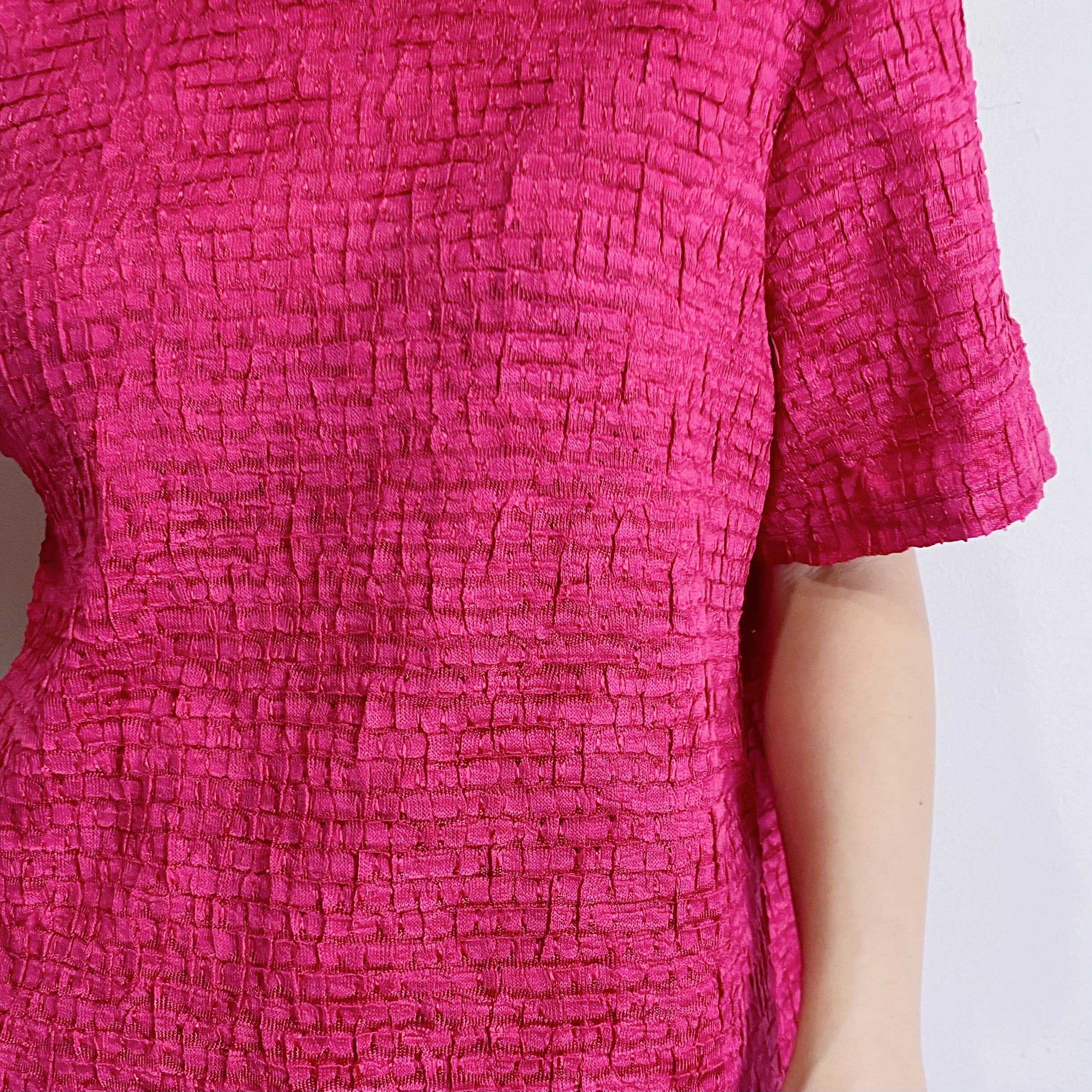 ぽこぽことした表面の立体感がユニークな一枚で、サイズ感もゆるやかで着こなしやすそうな一枚となっております。