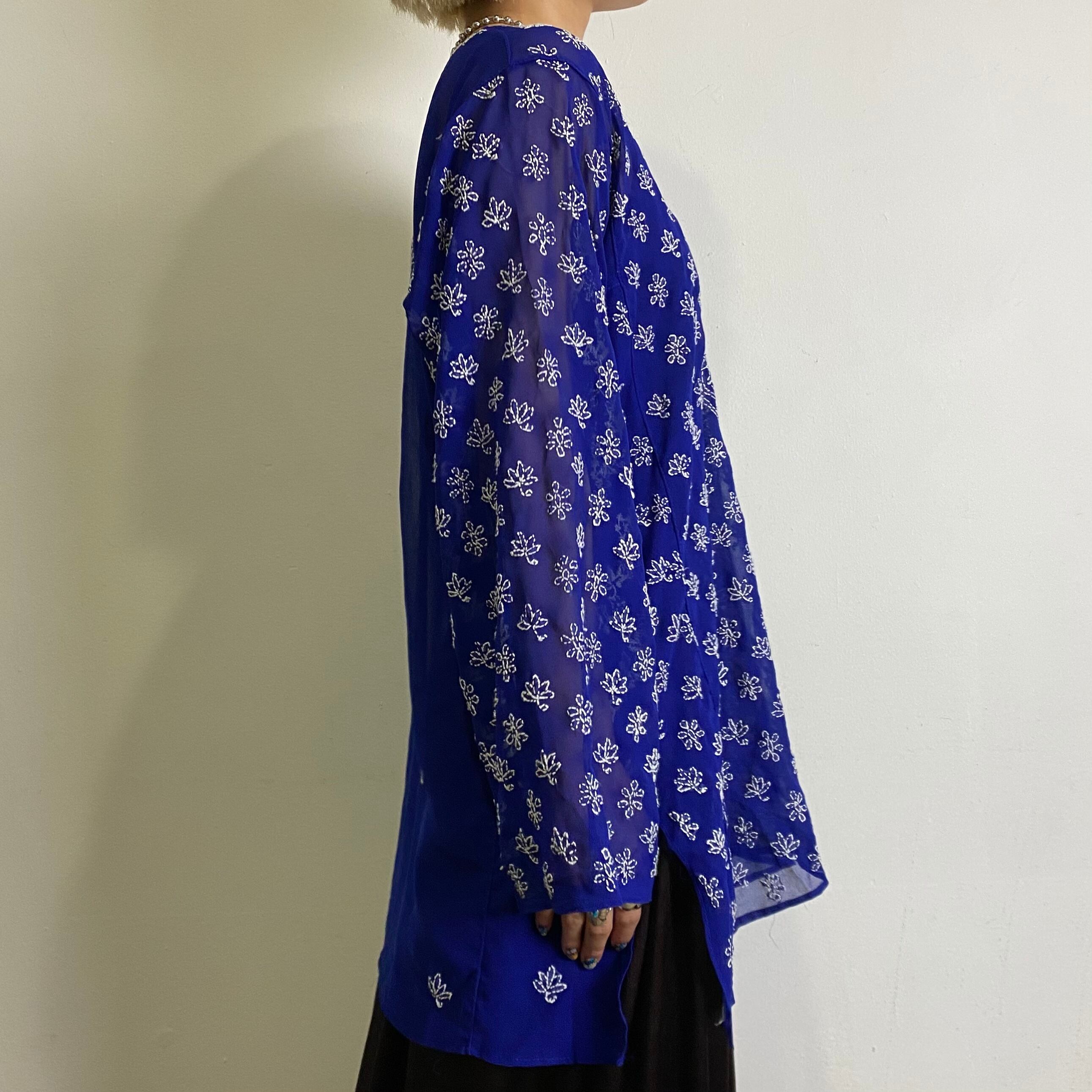 シースルー地に白い手刺繍がびっしりと縫い付けれた、チュニックトップです。