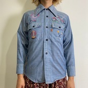 バックにもフロントにも豪華に刺繍が入った、70年代のシャンブレーシャツです。