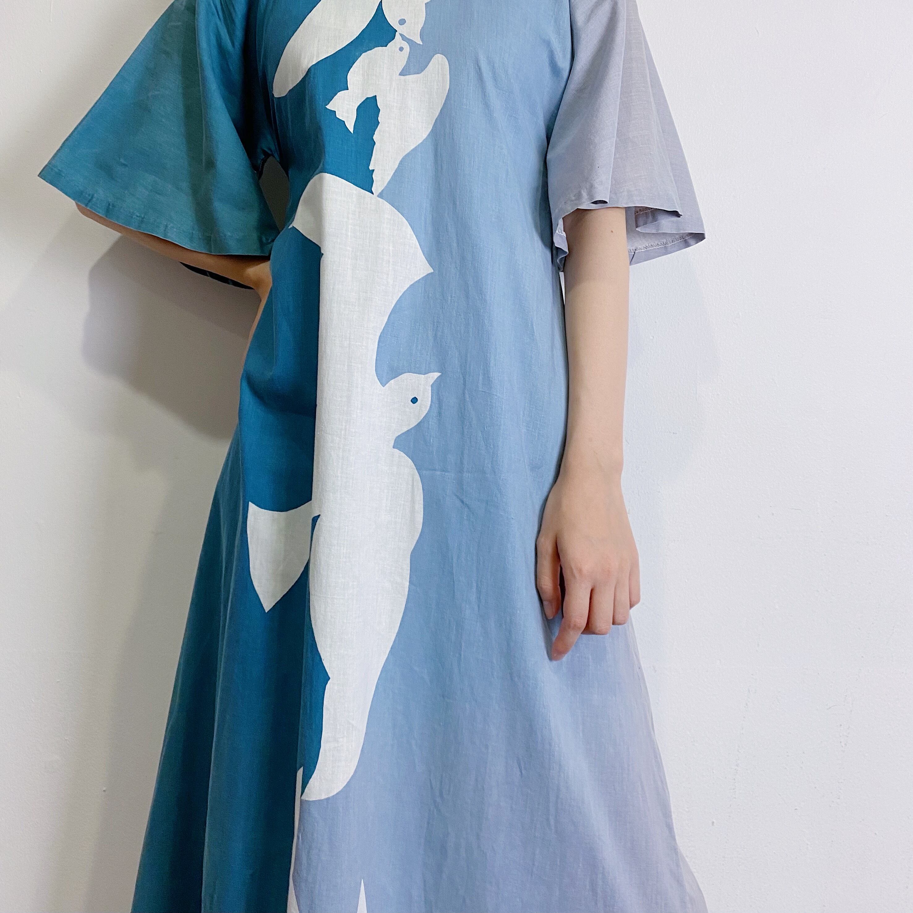 白い鳩のモチーフが可愛い、70年代のヒッピーワンピースです。