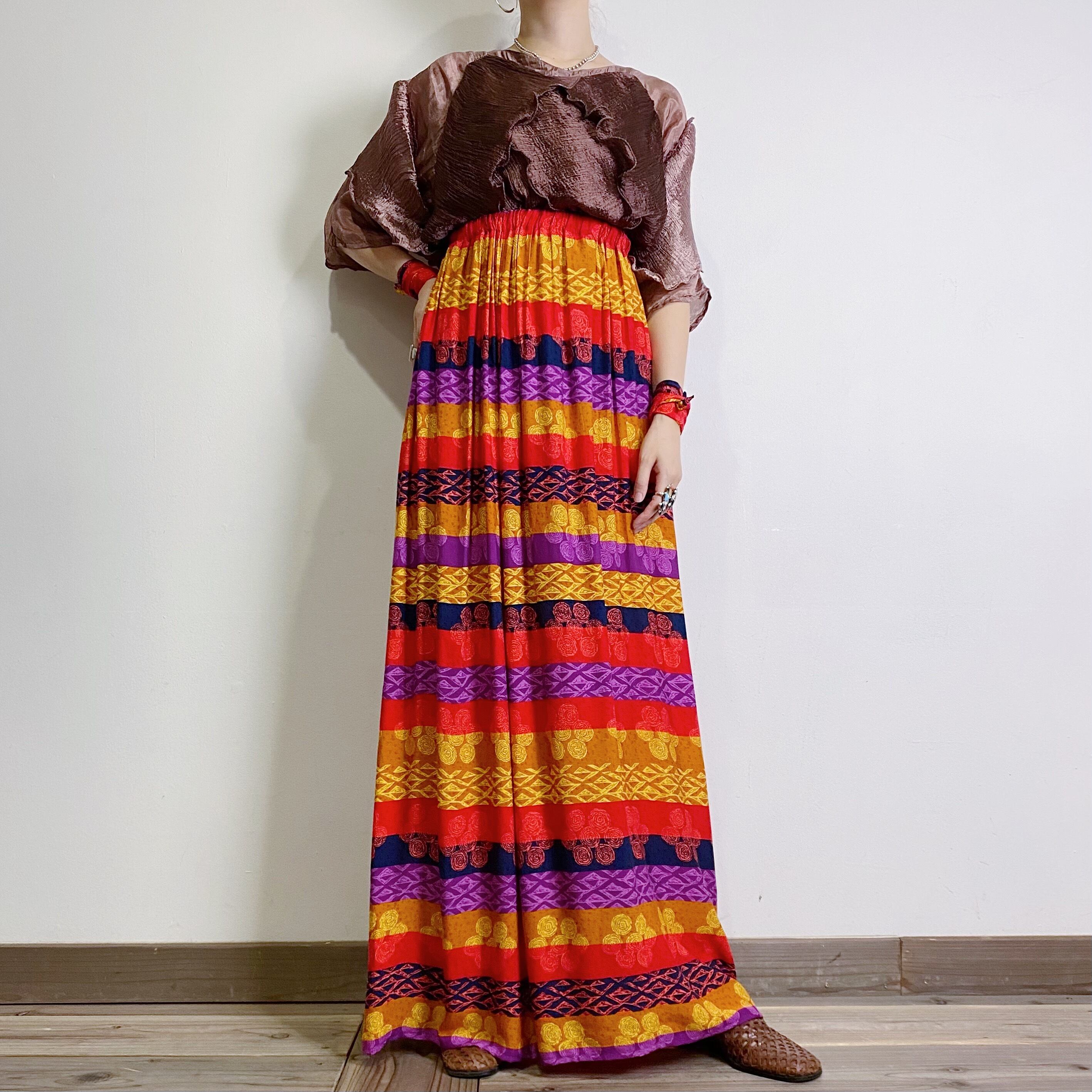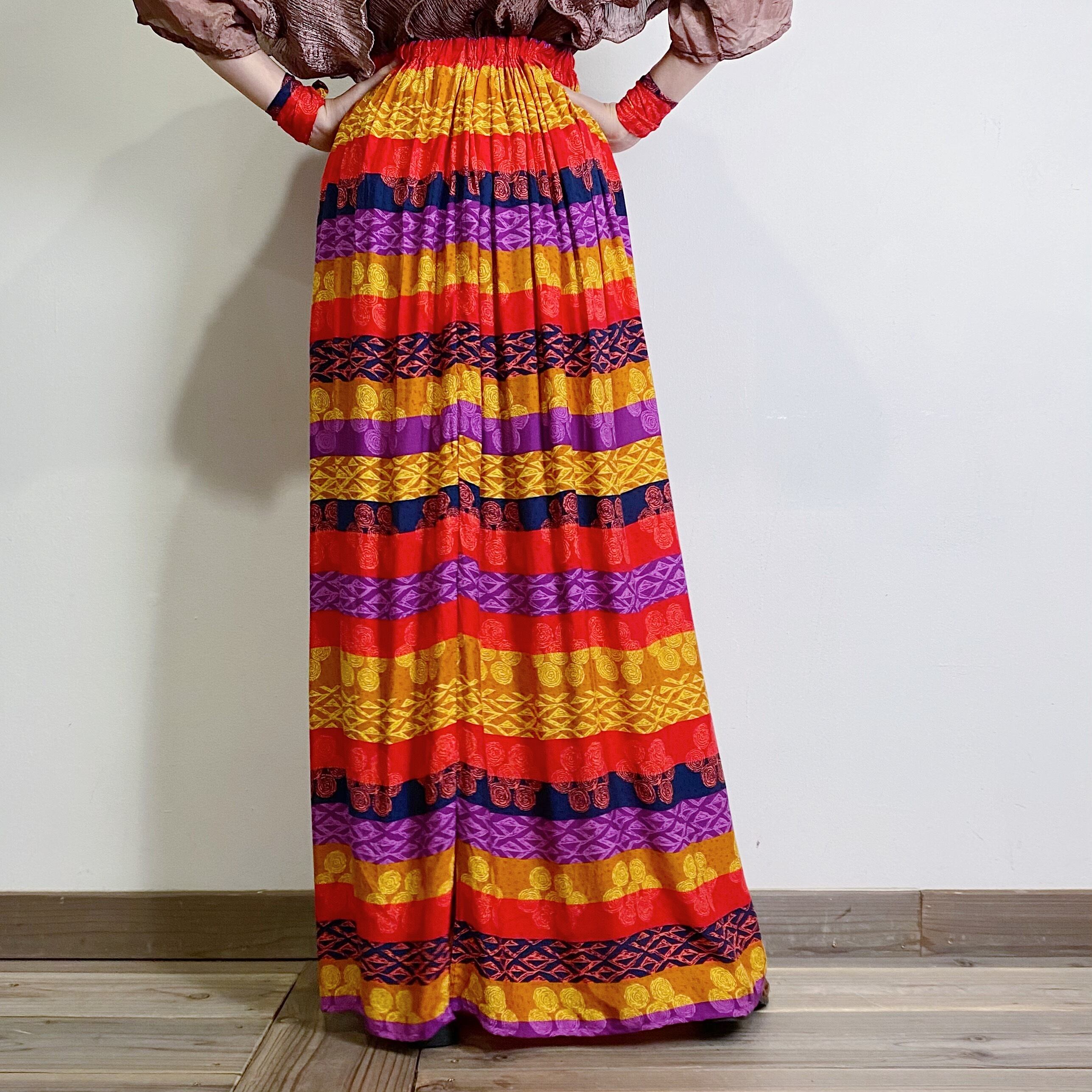 ユニークな柄が可愛い、80年代のレーヨンロングスカートです。