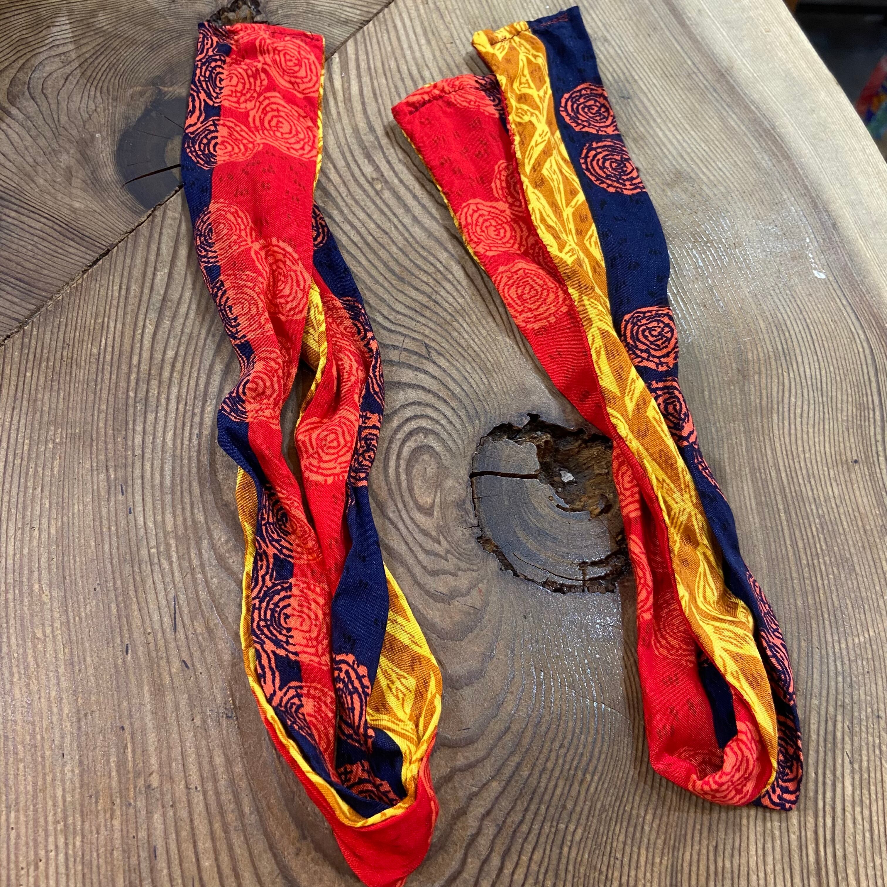 短い紐が2本ついており、手首に巻いたりヘアアレンジに使ったりと、面白い着こなしができそう。