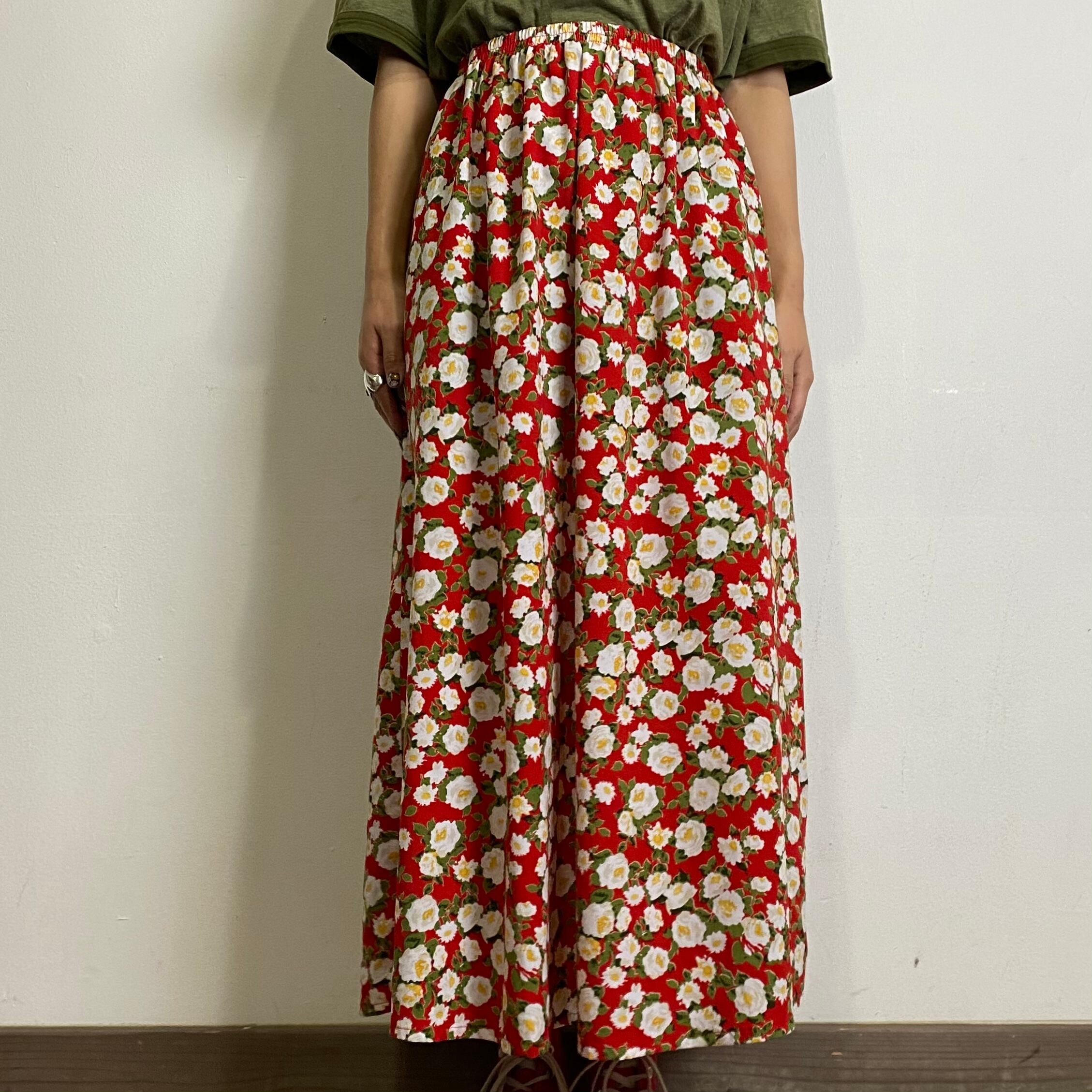 赤ベースに白いお花が可愛い、ロングスカートです。