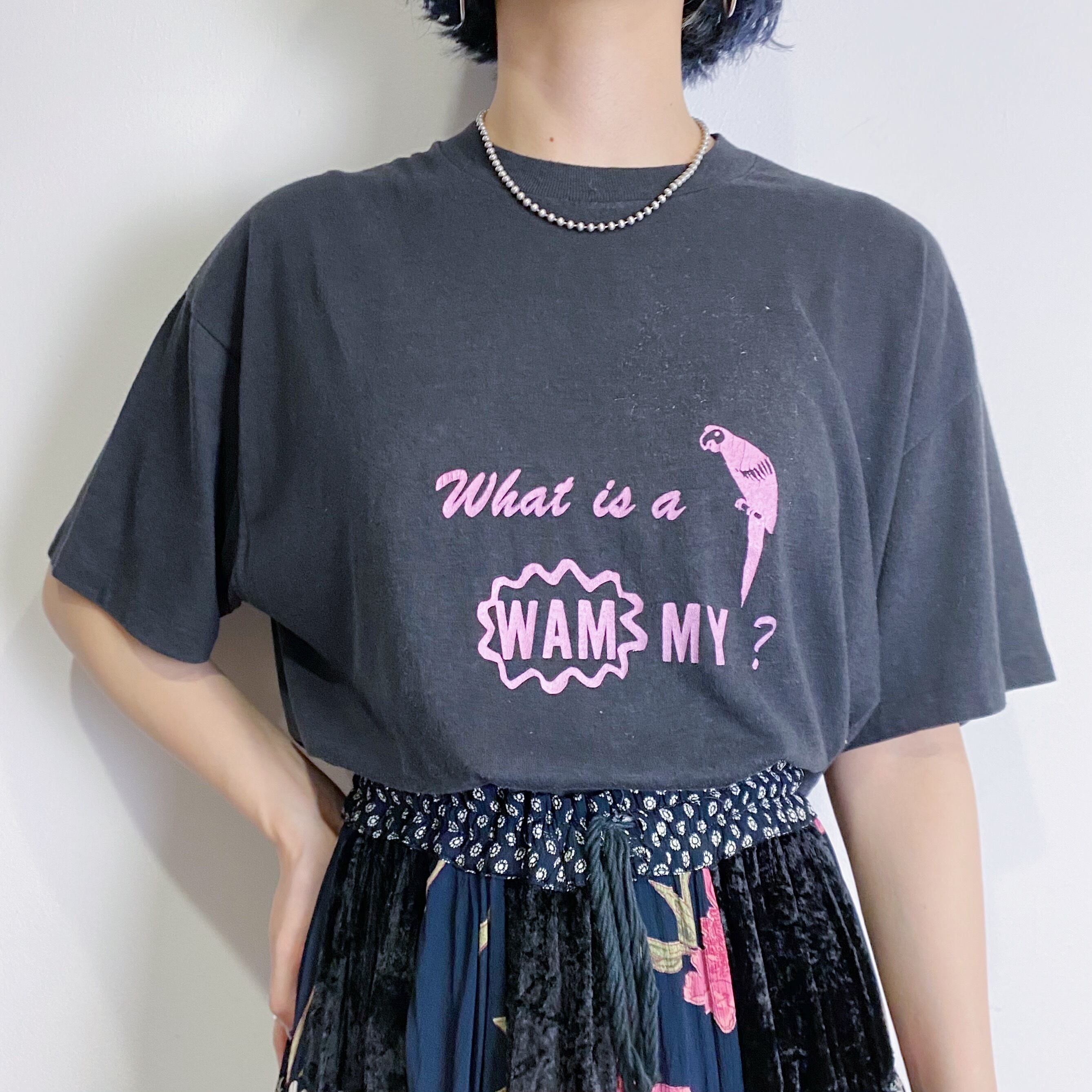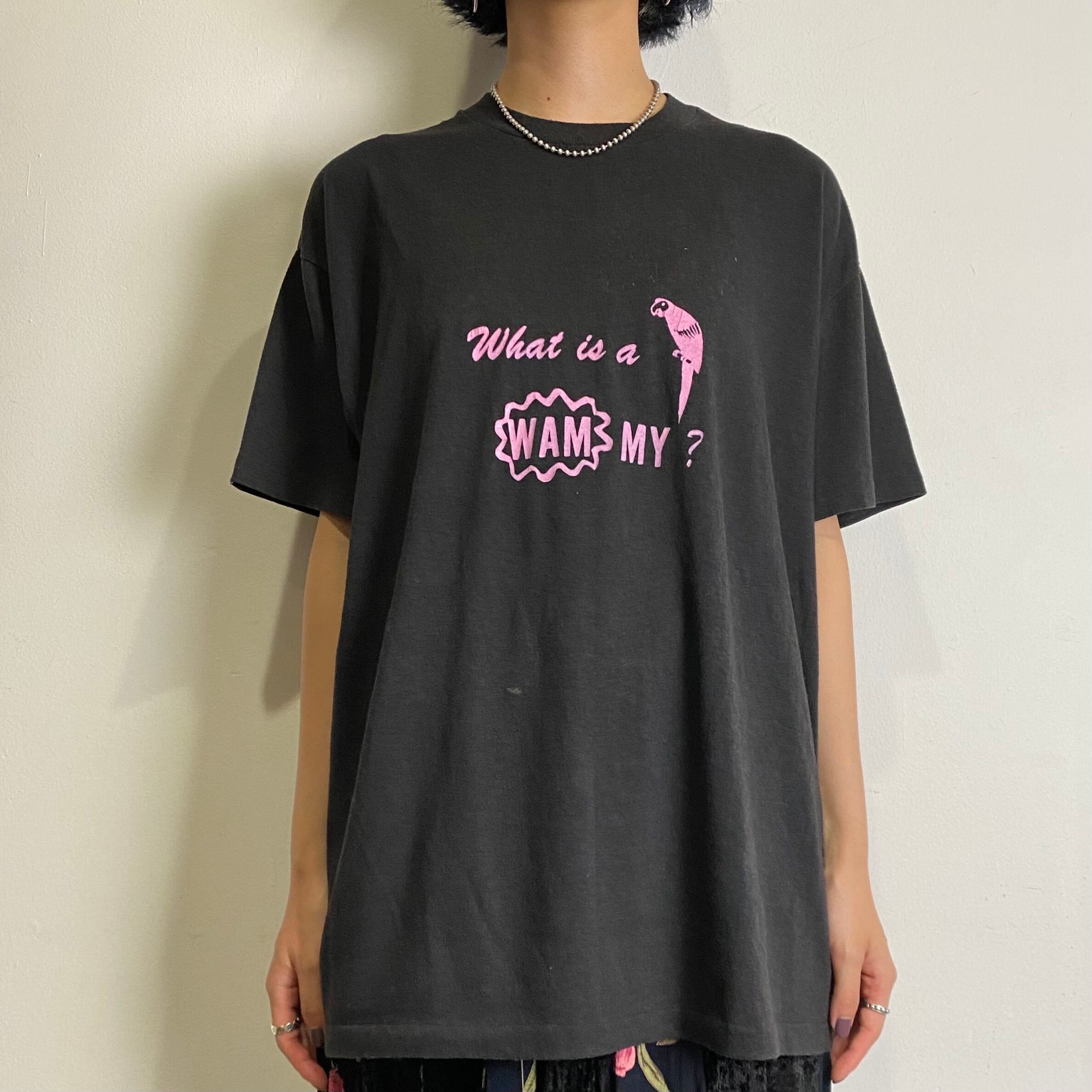 黒地にピンクの鳥のプリントが可愛い、80年代のTシャツです。