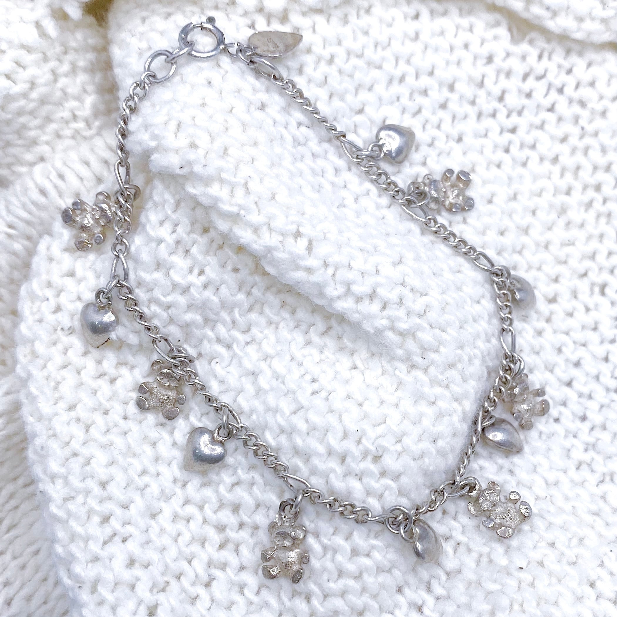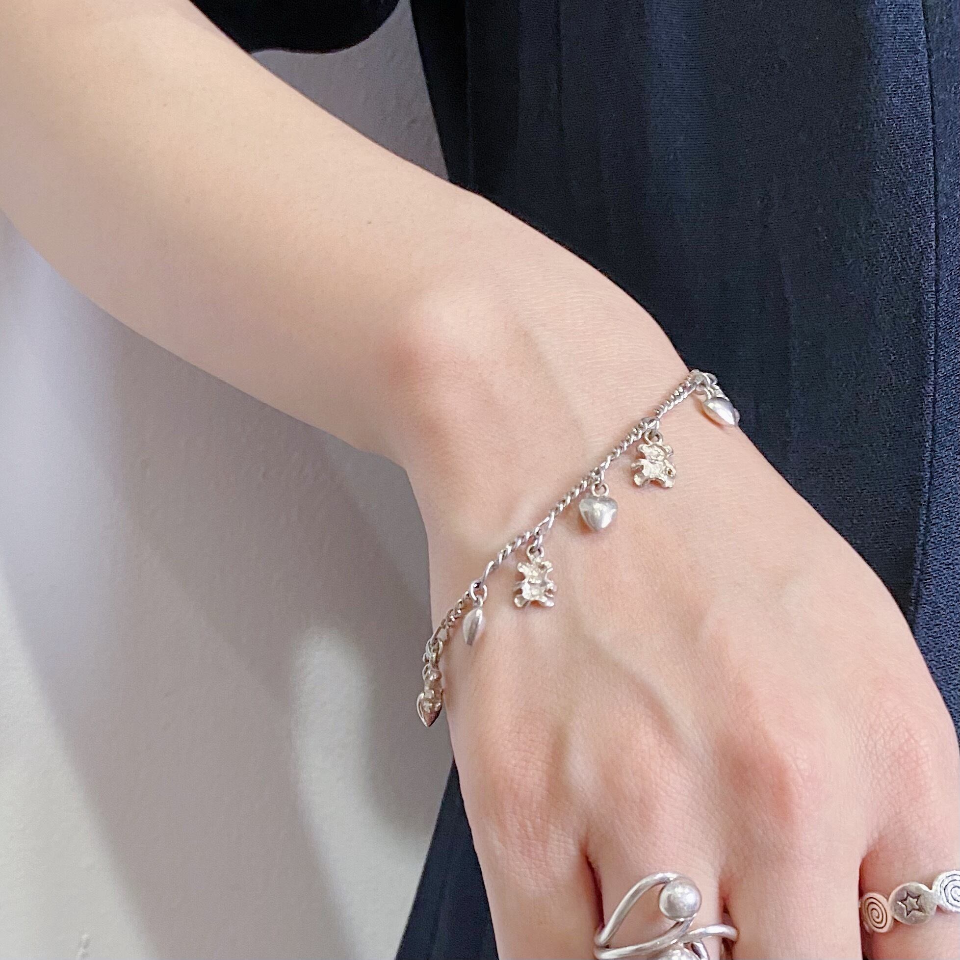 熊とハートのチャームが可愛い、925シルバーのブレスレットです。