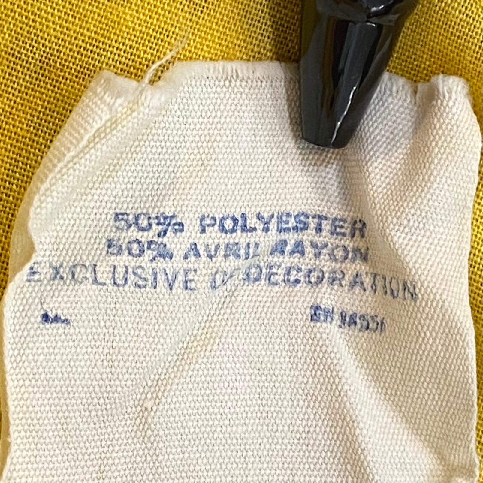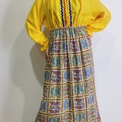 黄色い上半身ボディに、ウエスト下から広がる70sらしいテキスタイルが魅力的。