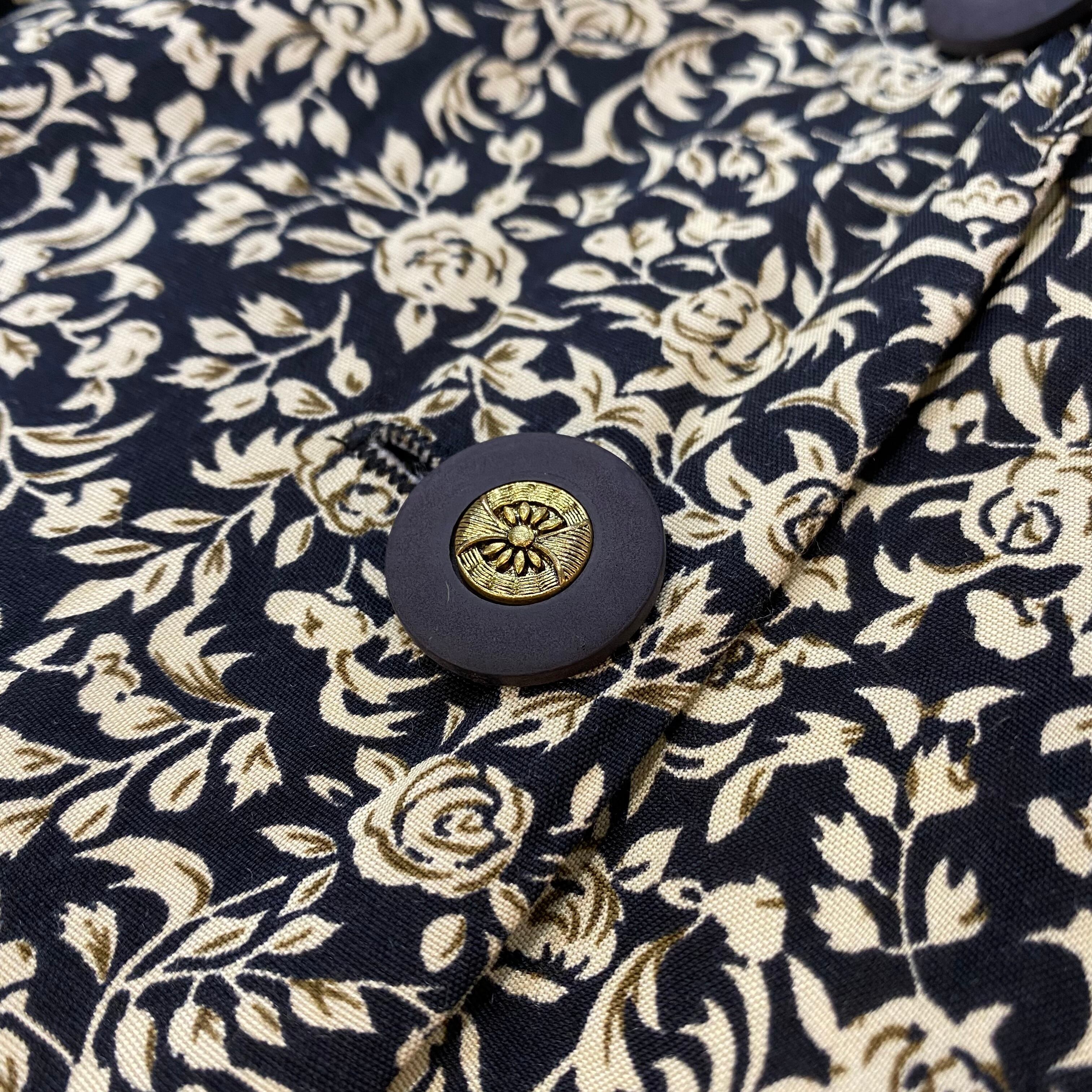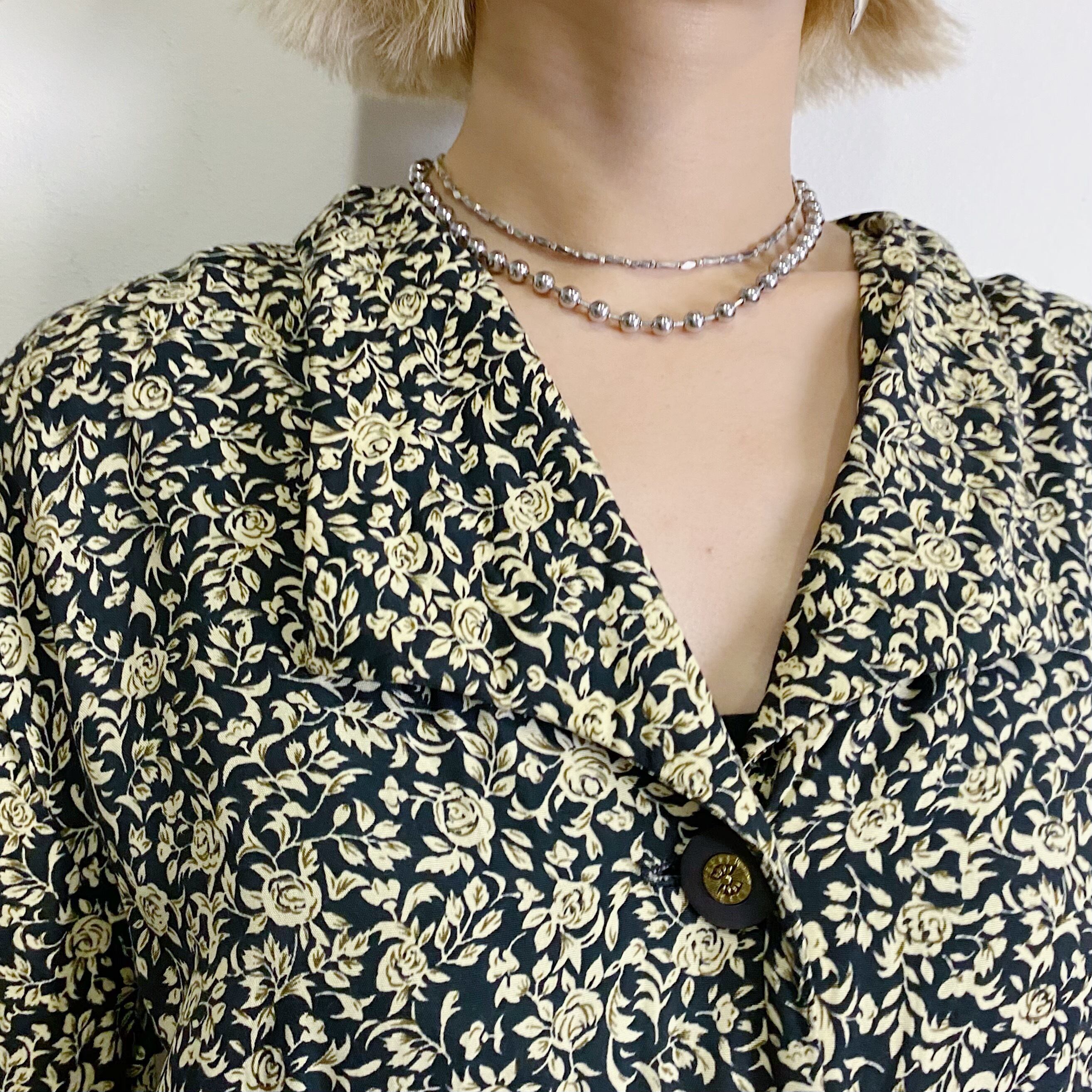 黒地にベージュの薔薇柄が可愛い、シャツ型レーヨンワンピースです。