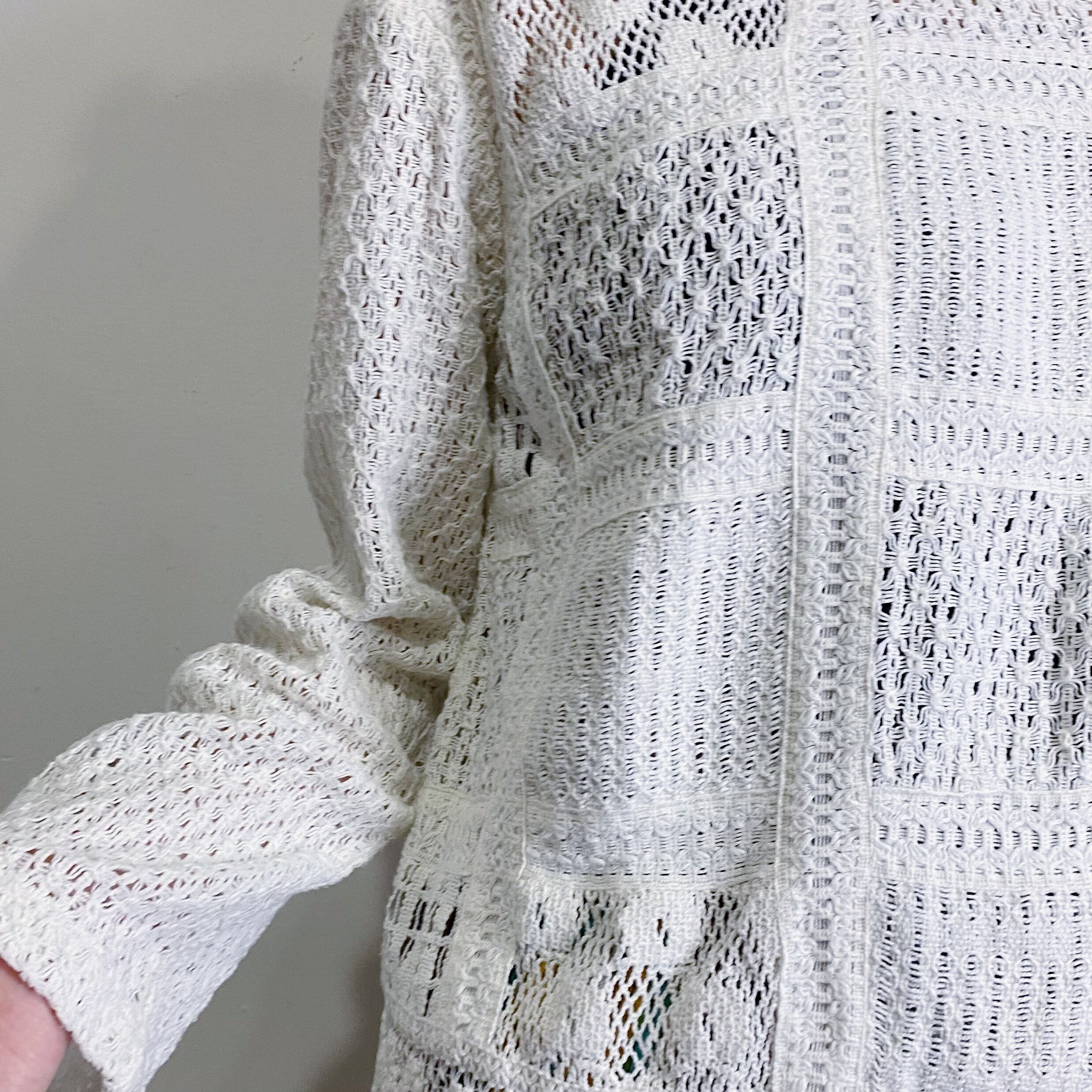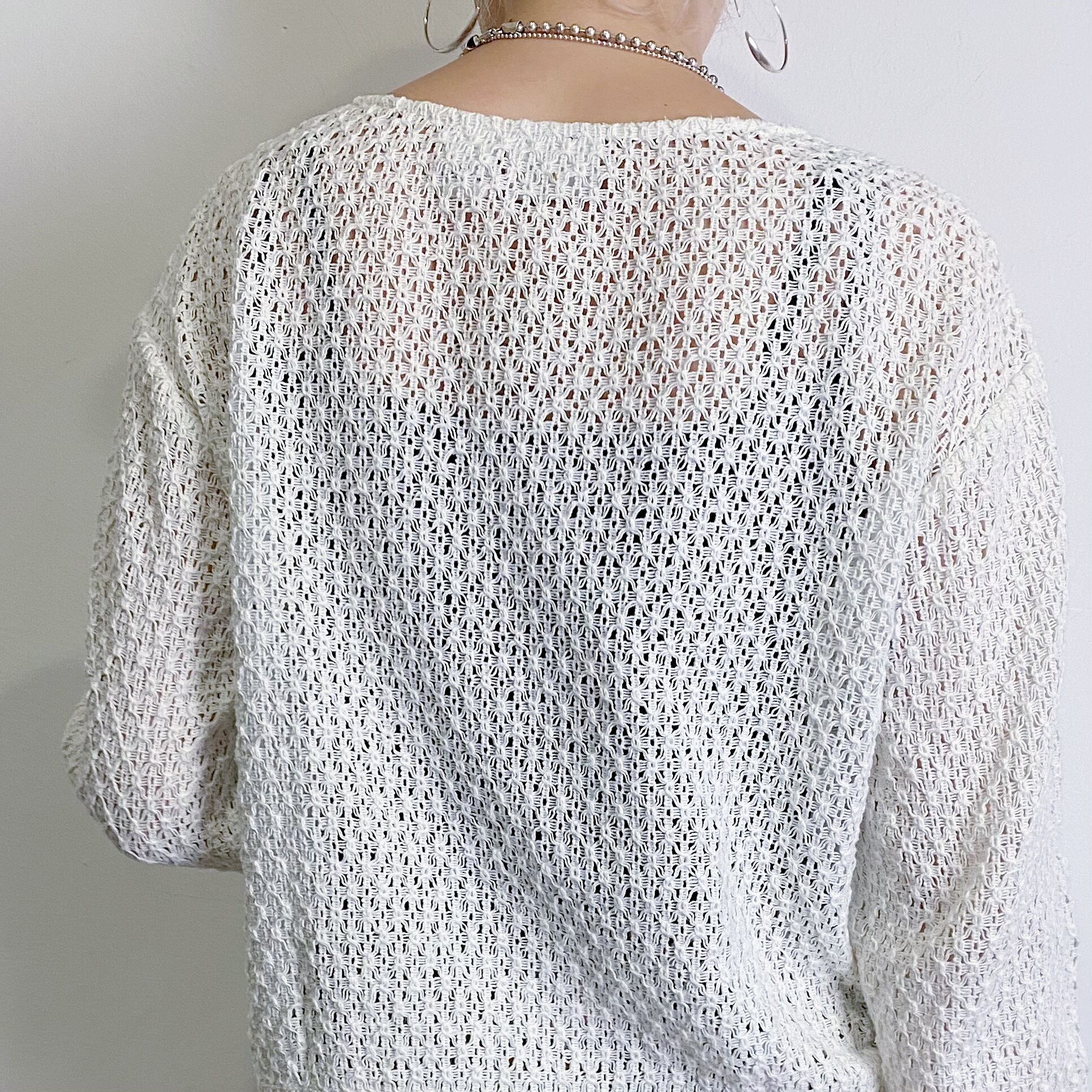 白いクロシェ編みが可愛い、長袖トップスです。