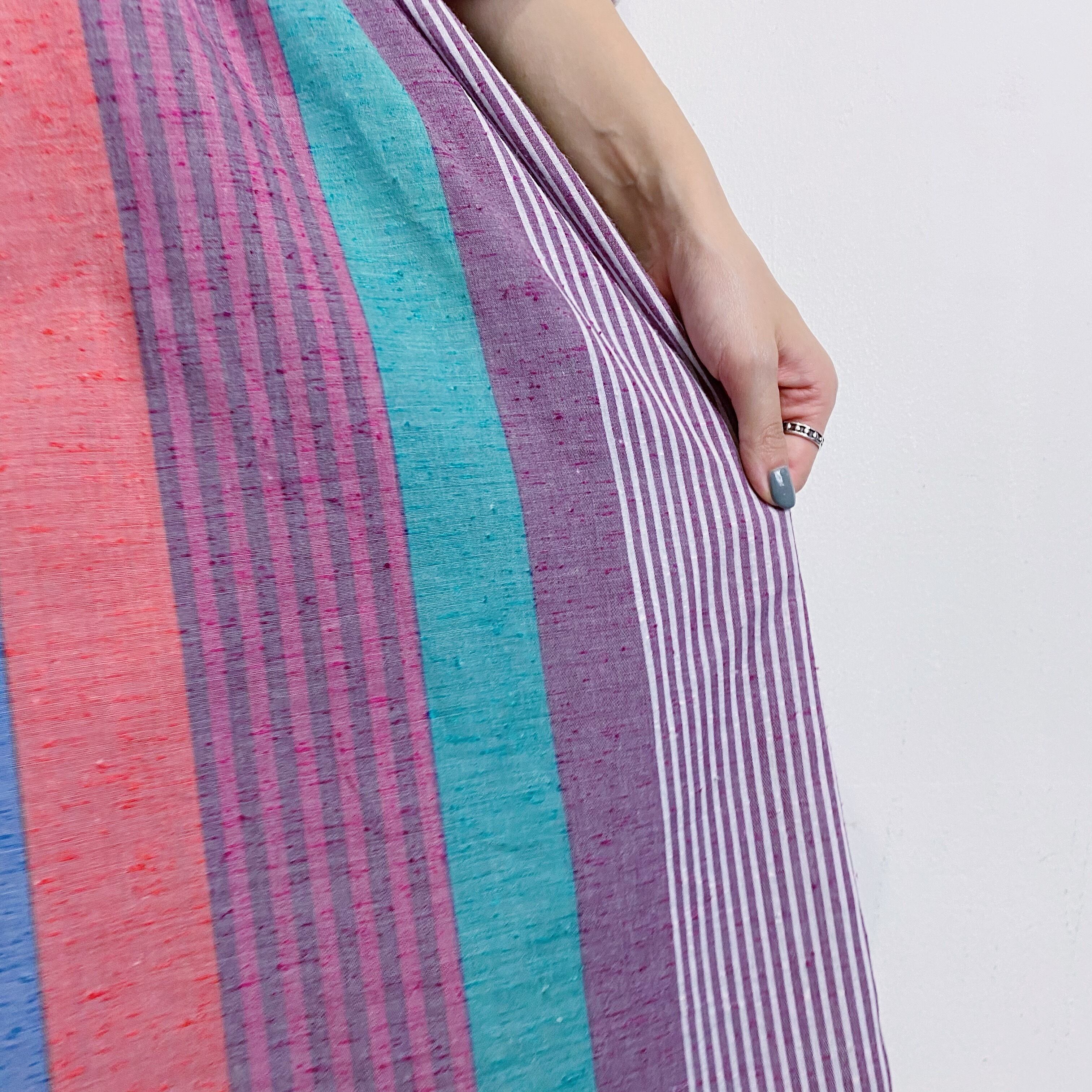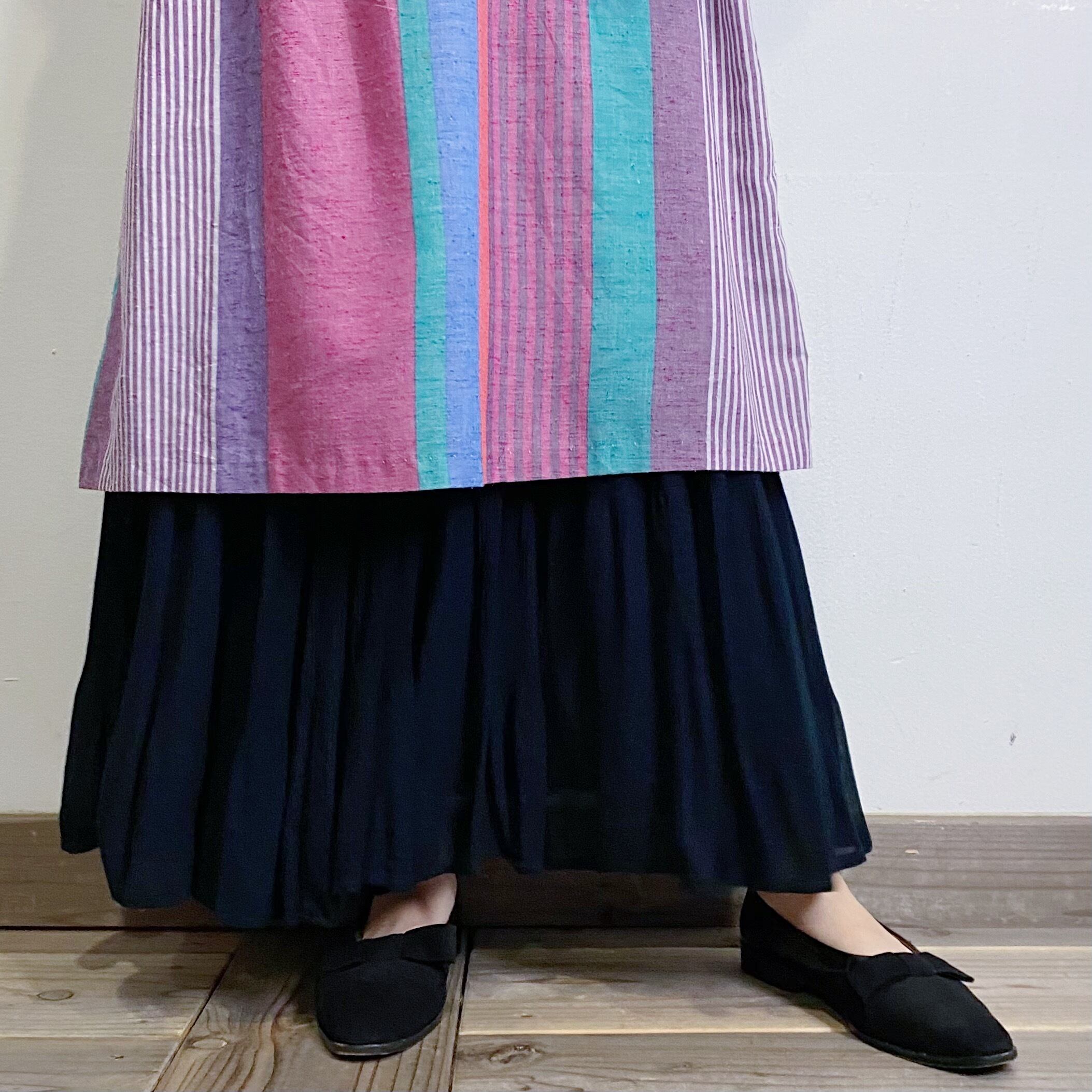 紫ベースのストライプに大きな襟が可愛い、80年代ワンピースです。