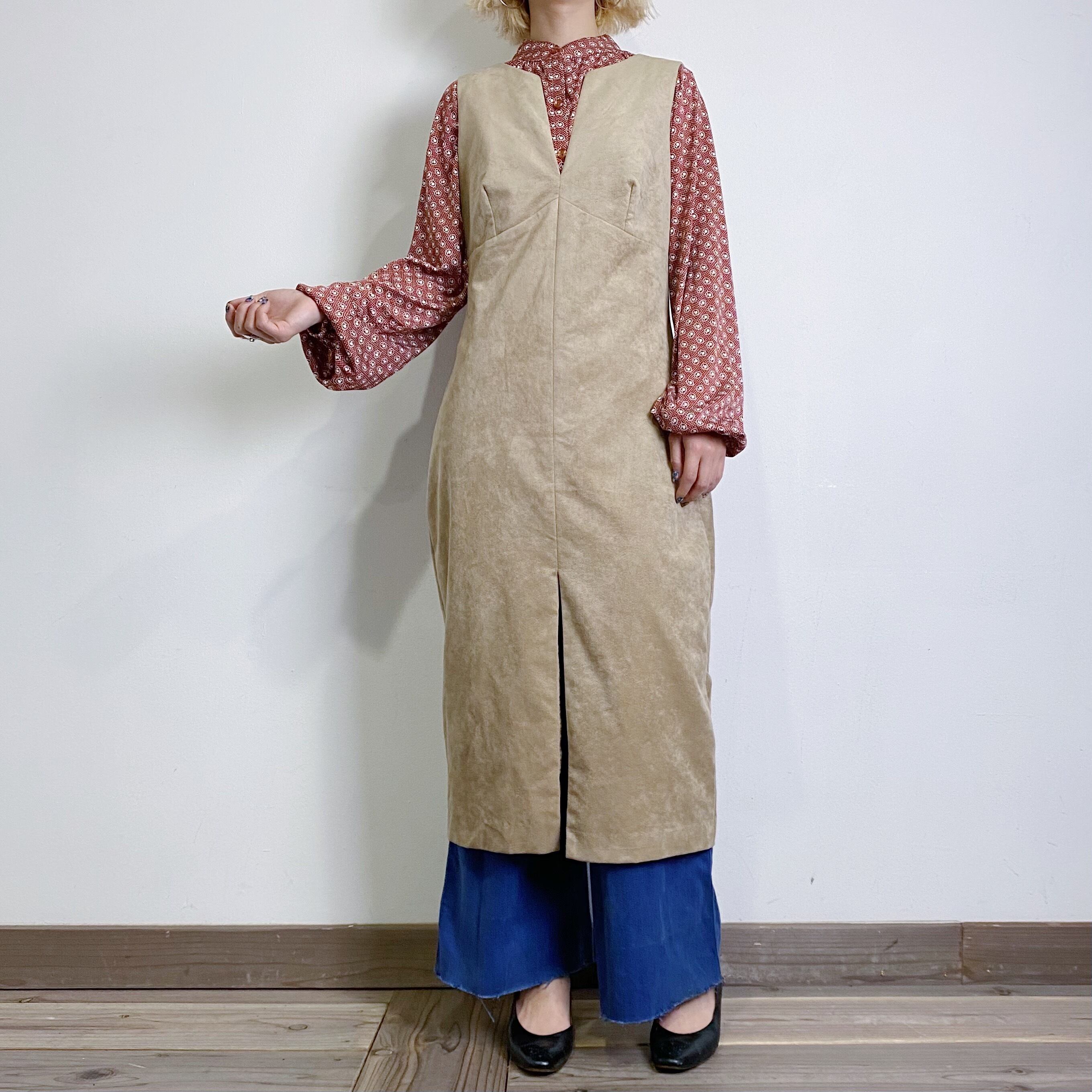 優しい色合いのベージュが可愛い、スエードワンピースです。