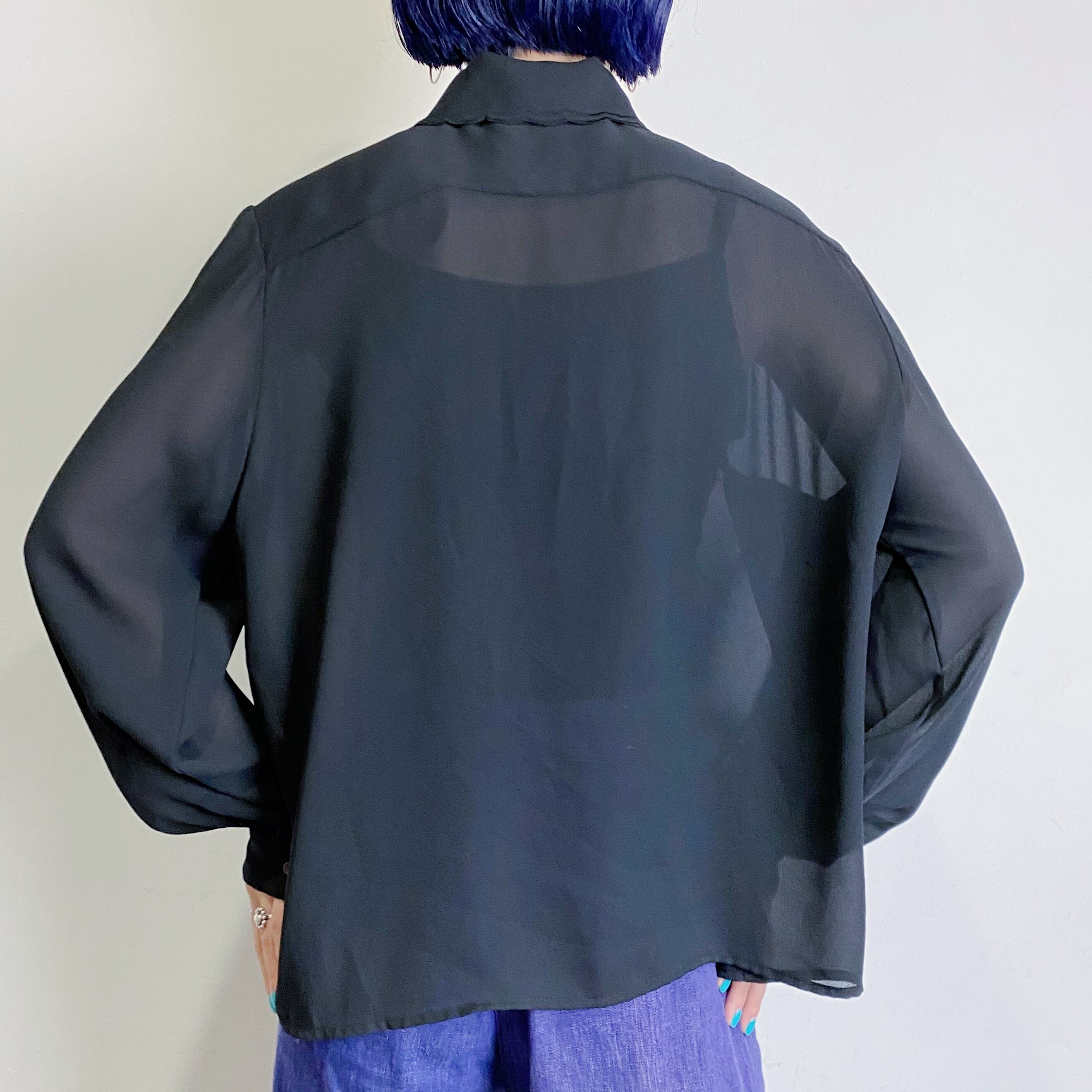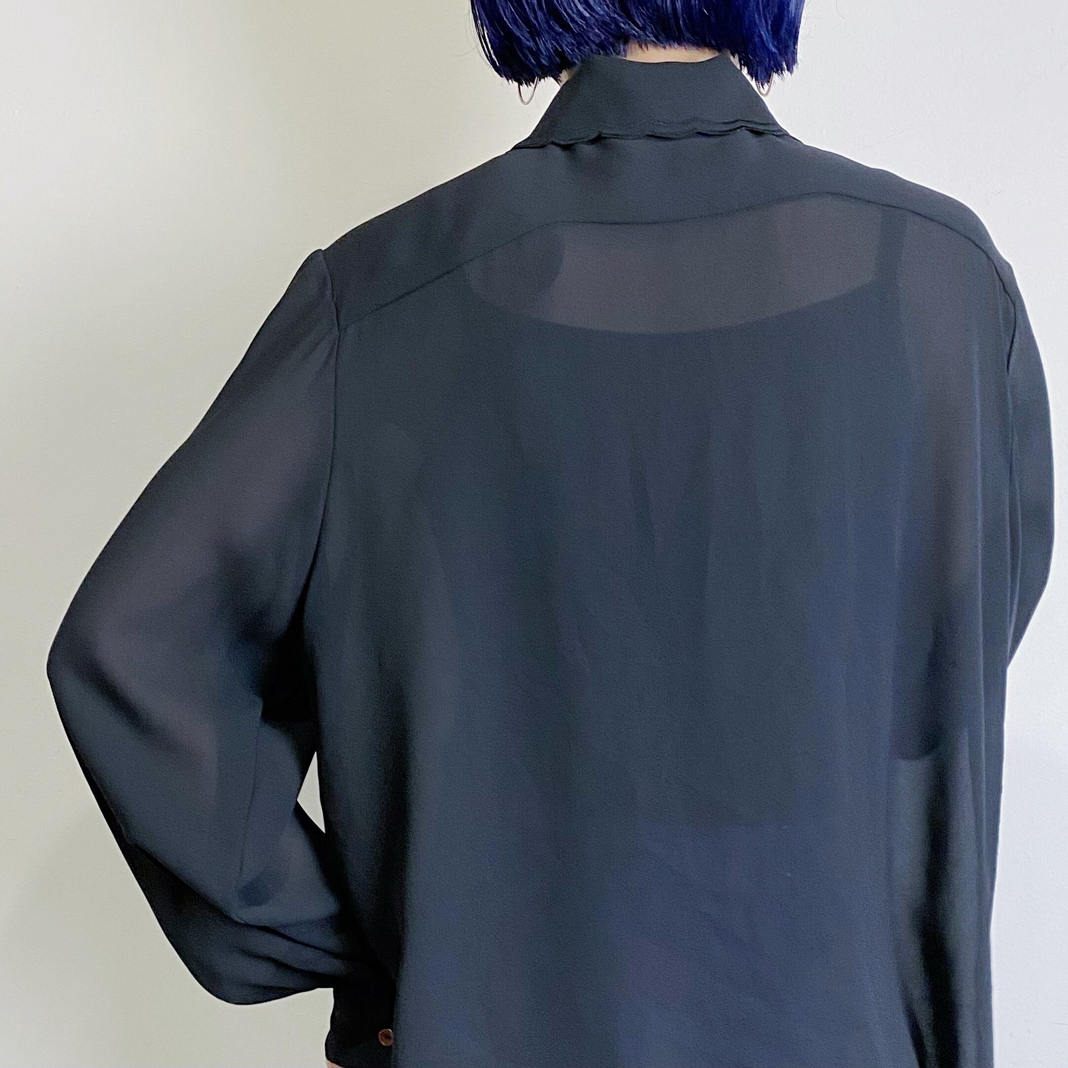 とろんとした質感にボリュームあるお袖のデザインが可愛い、ブラックカラーのブラウスです。