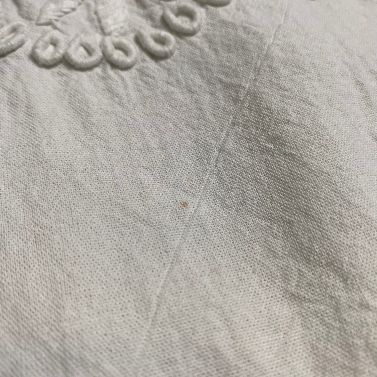 ぷっくりとした手刺繍がキュートな一枚で、洗いざらいのようなコットン素材が素敵。