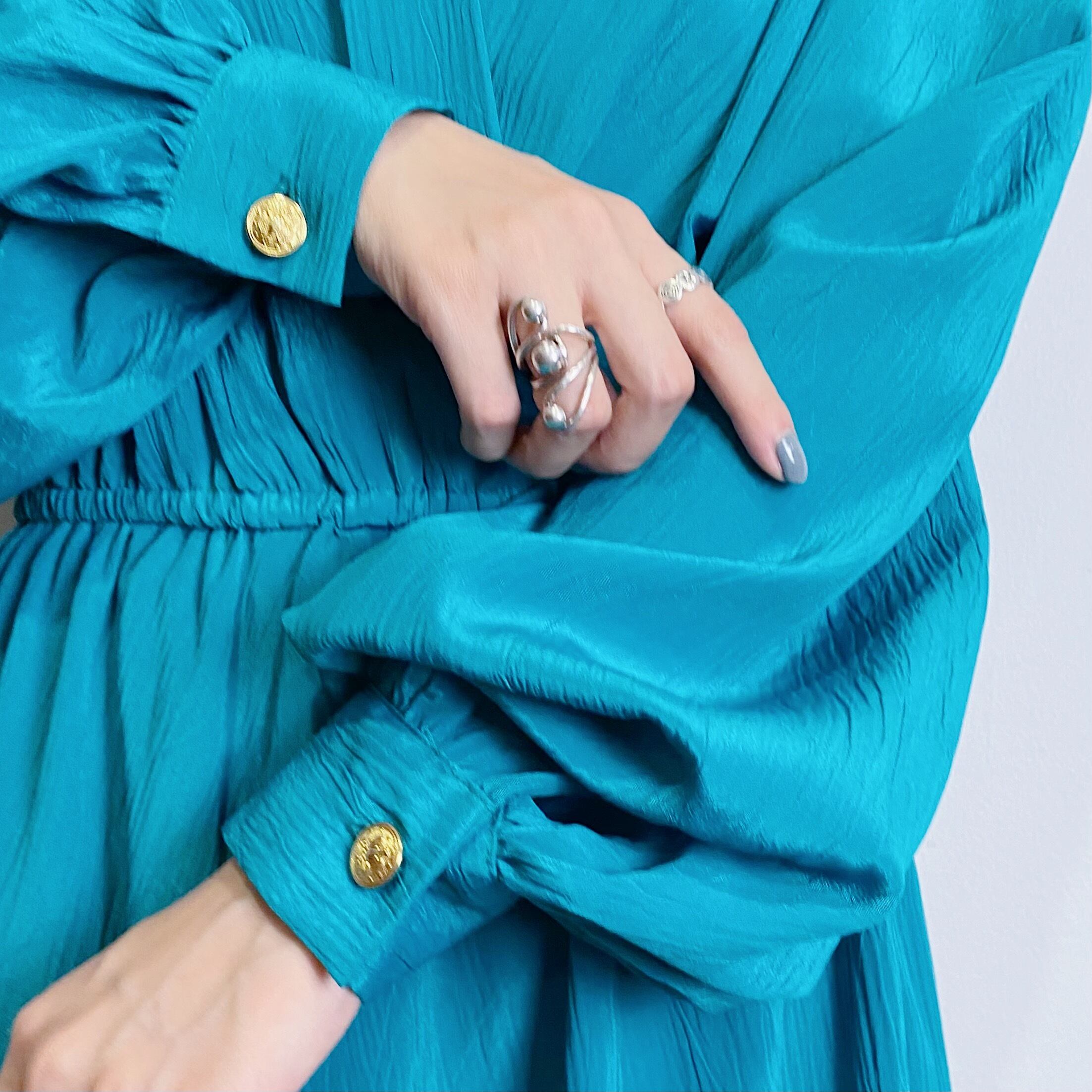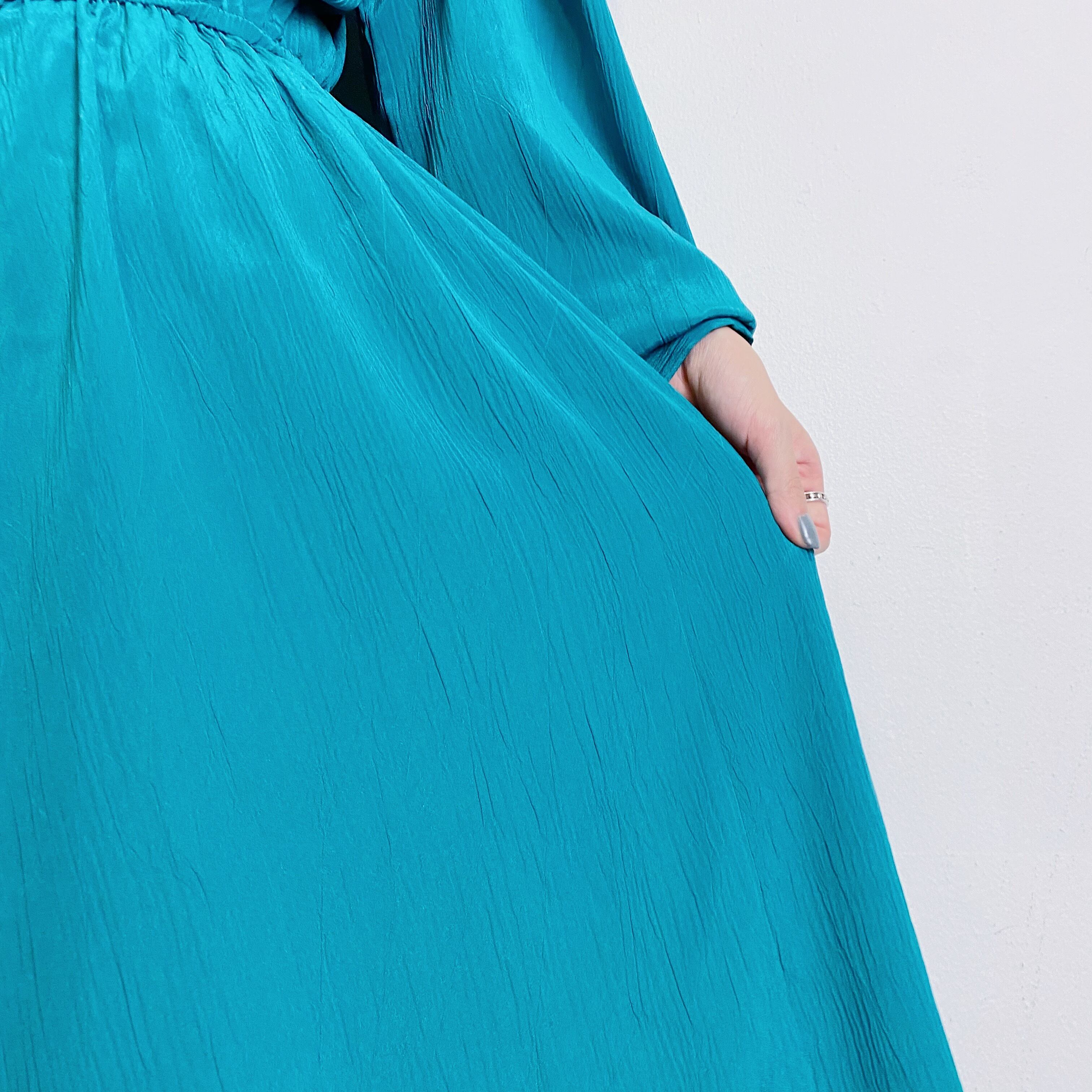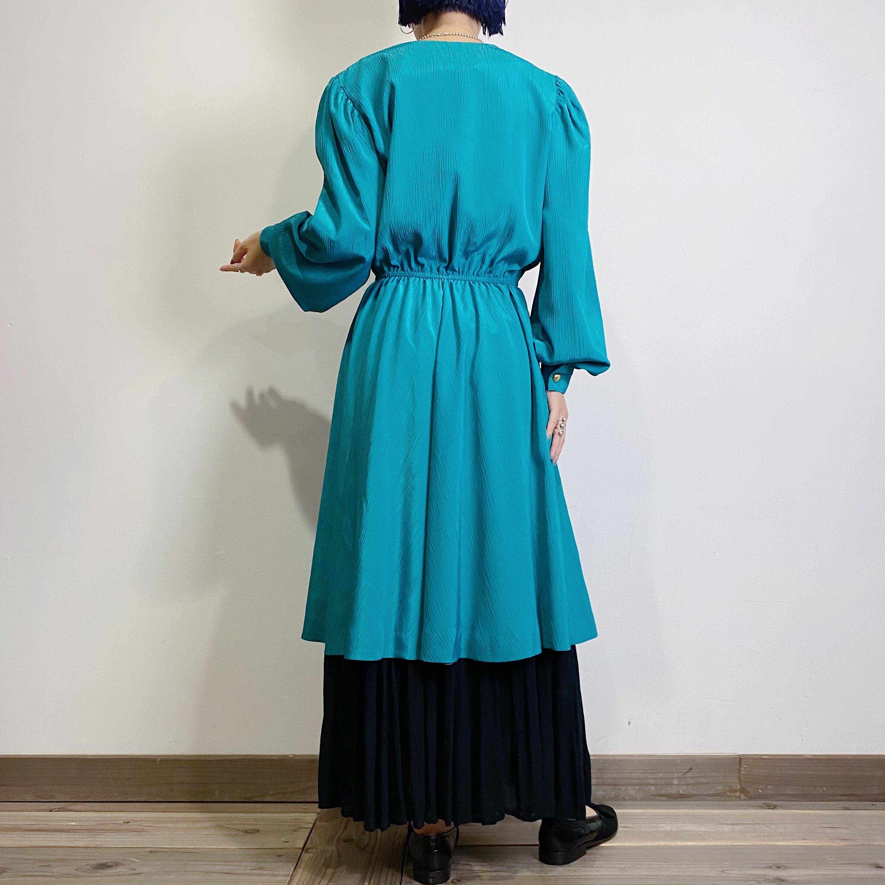 エメラルドグリーンのような絶妙な色合いが可愛いワンピースです。