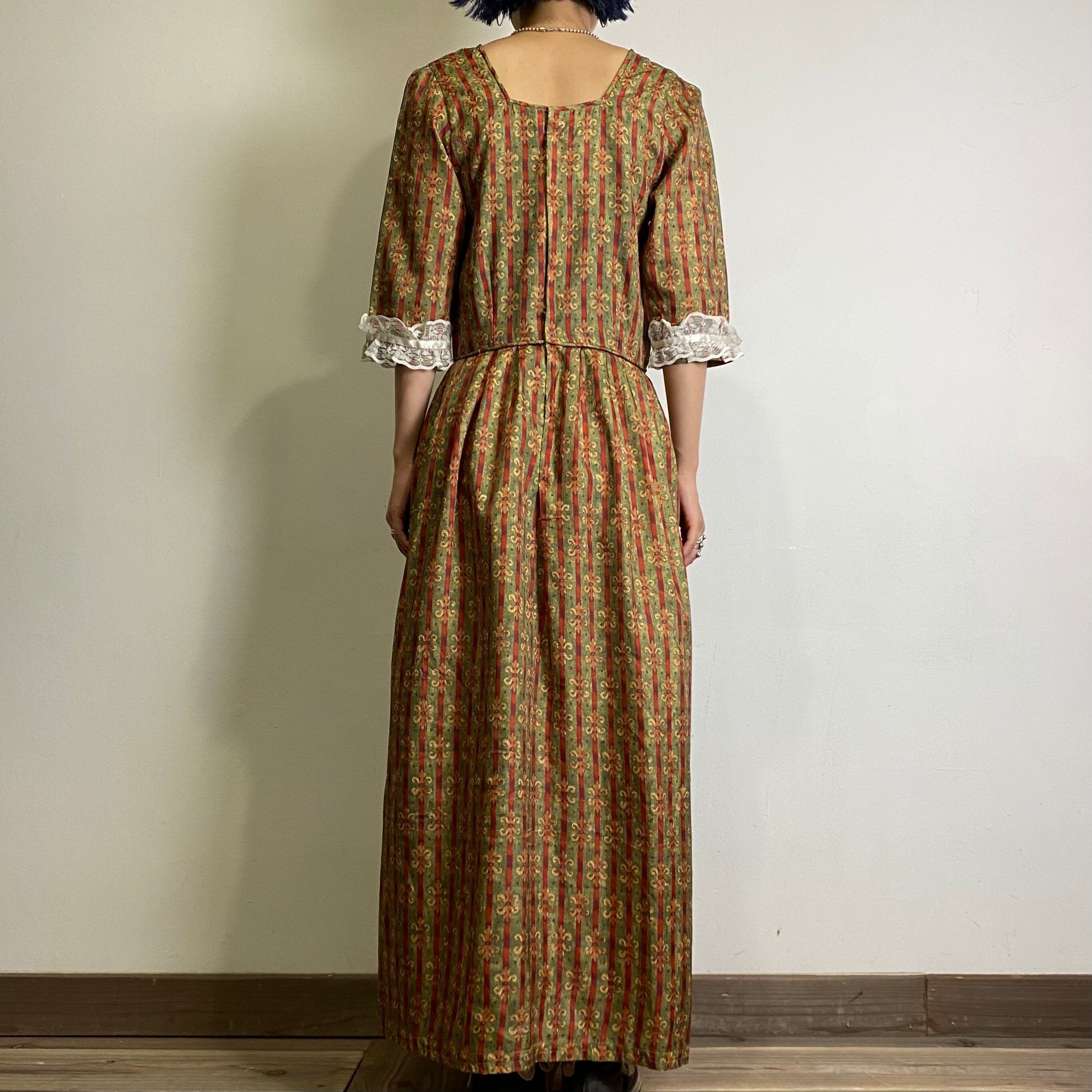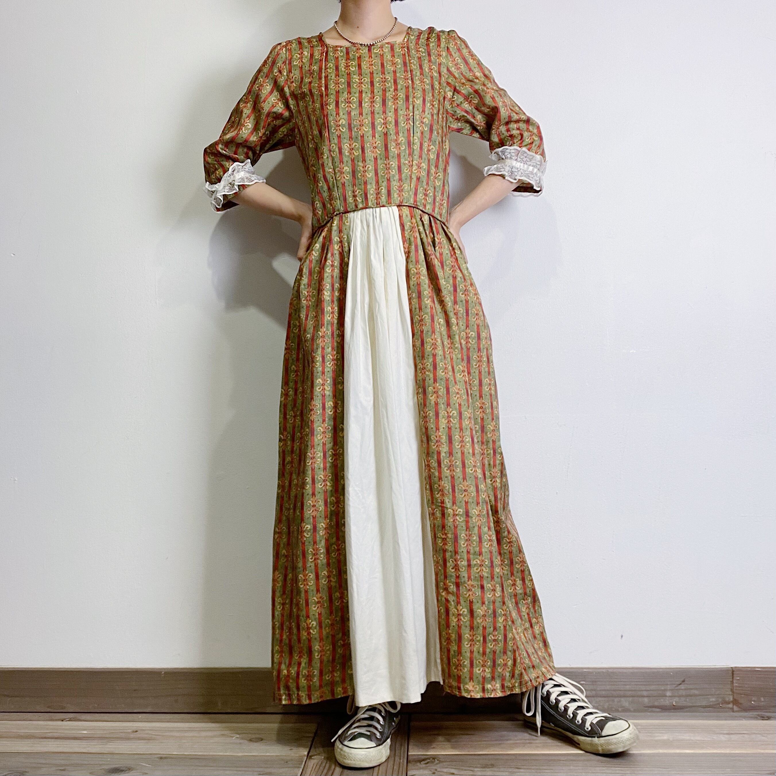 ハンドメイドと思われる、色味が可愛いロングワンピースです。