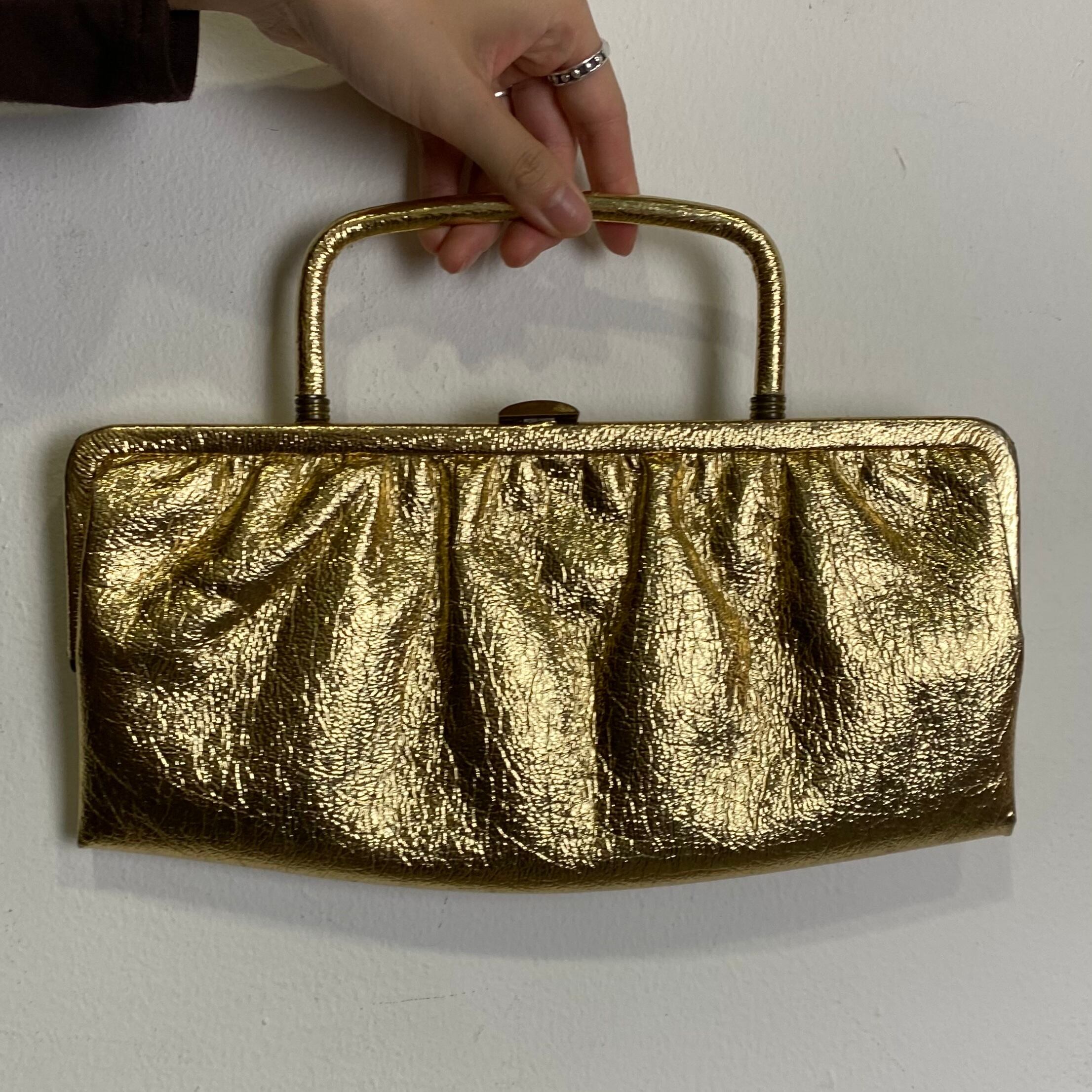 ゴールドの生地が可愛い、ミニハンドバッグです。