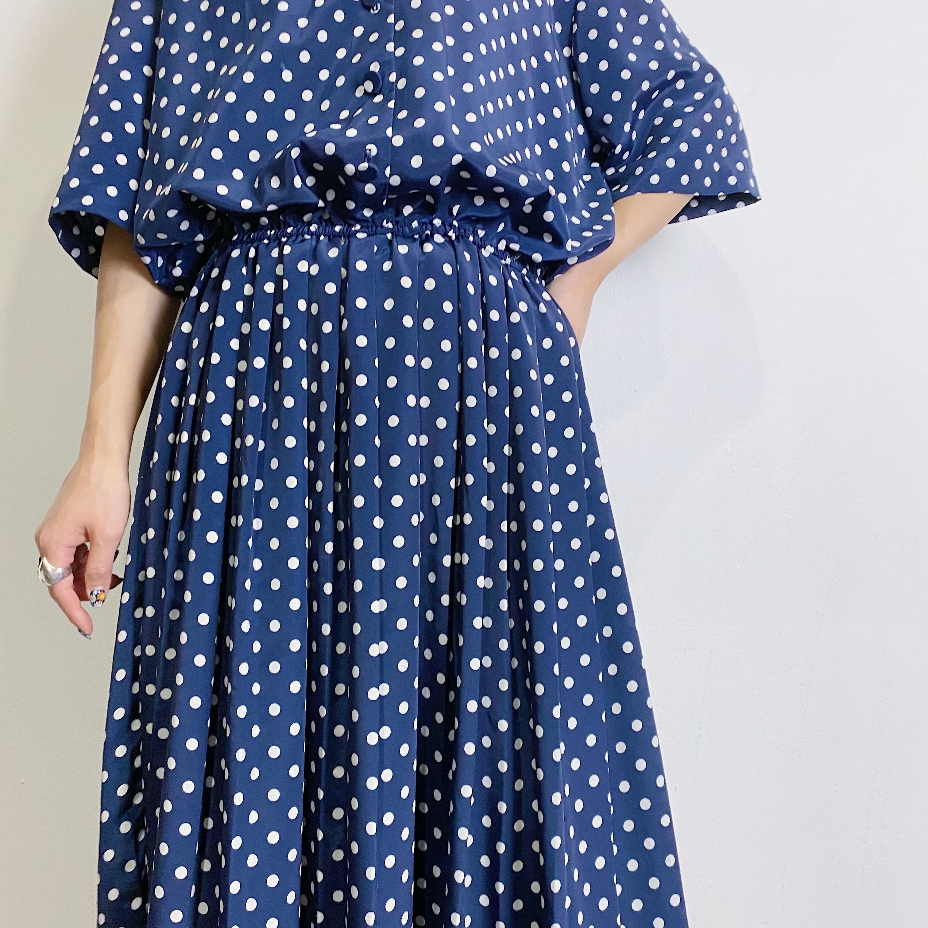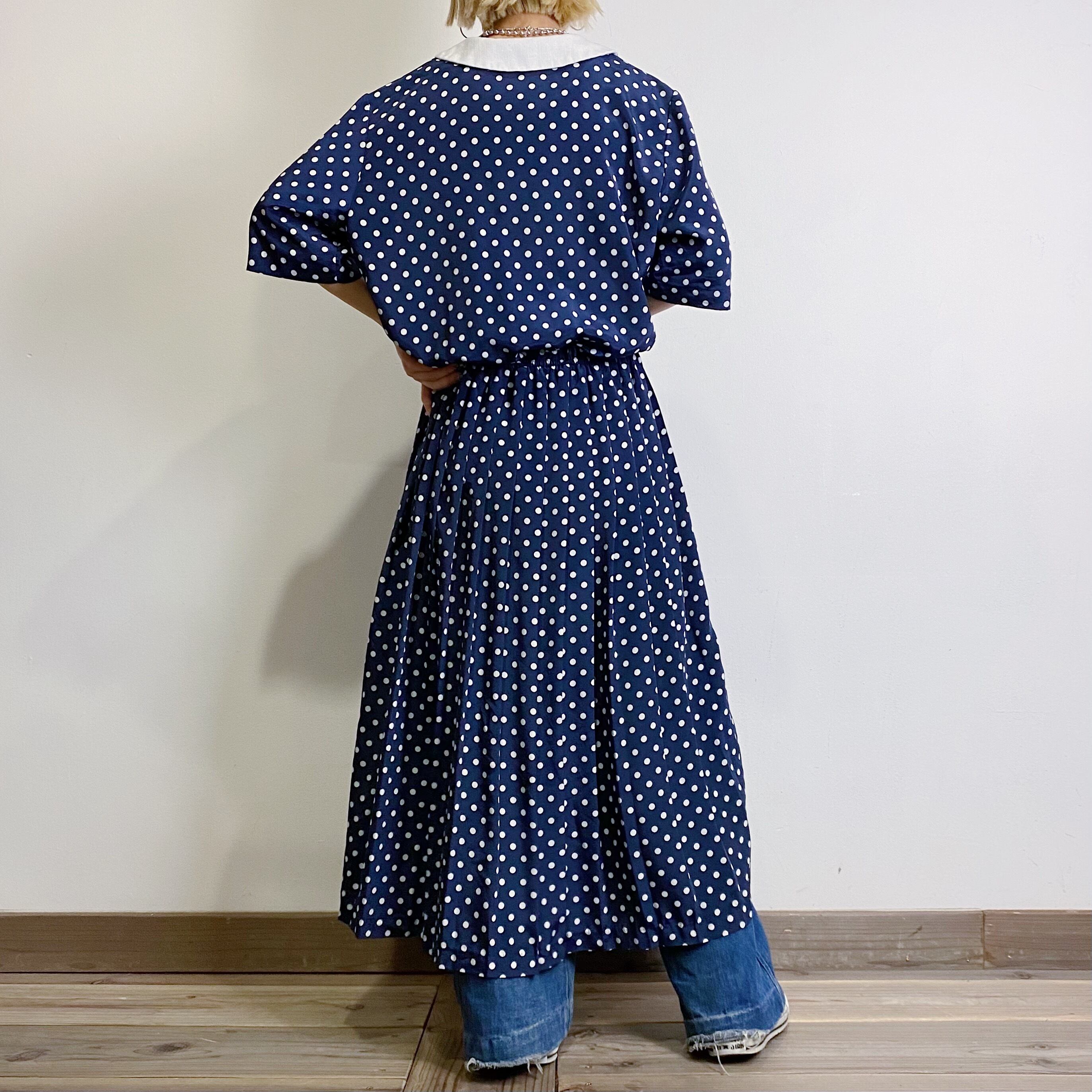 大きな白い襟にドットが可愛い、80年代のワンピースです。