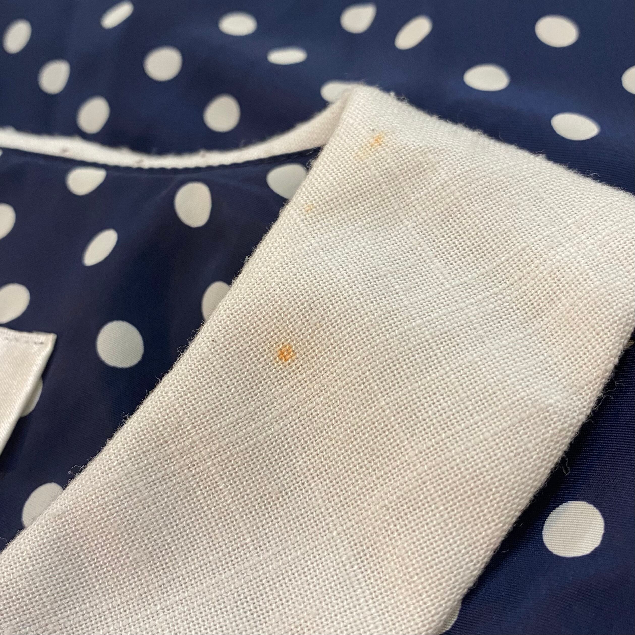 襟に点ほどのオレンジの色移りがありますが、ほぼ気にならない程度かと思われます。