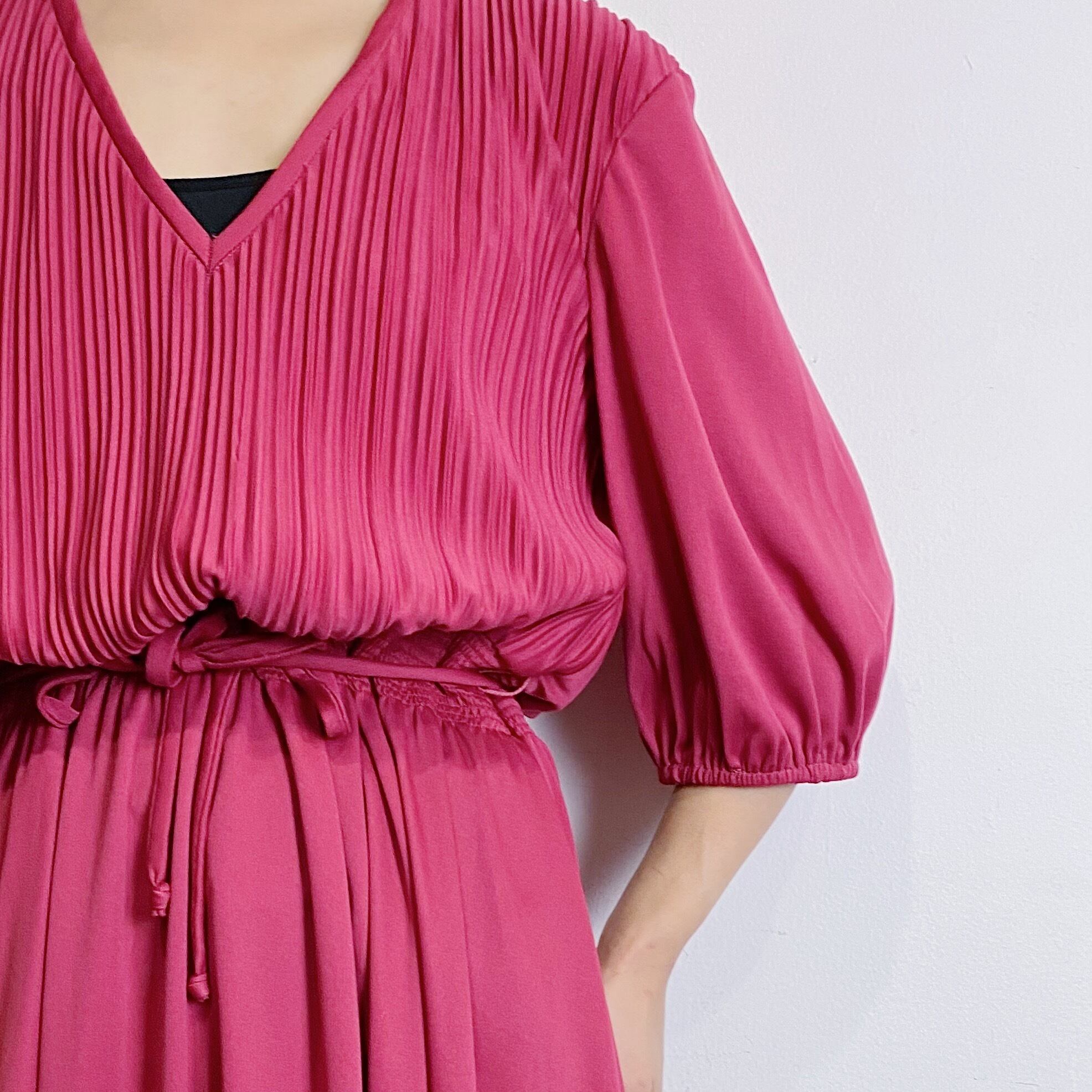 シルエットが綺麗な、くすみレッドカラーが可愛い80年代ワンピースです。