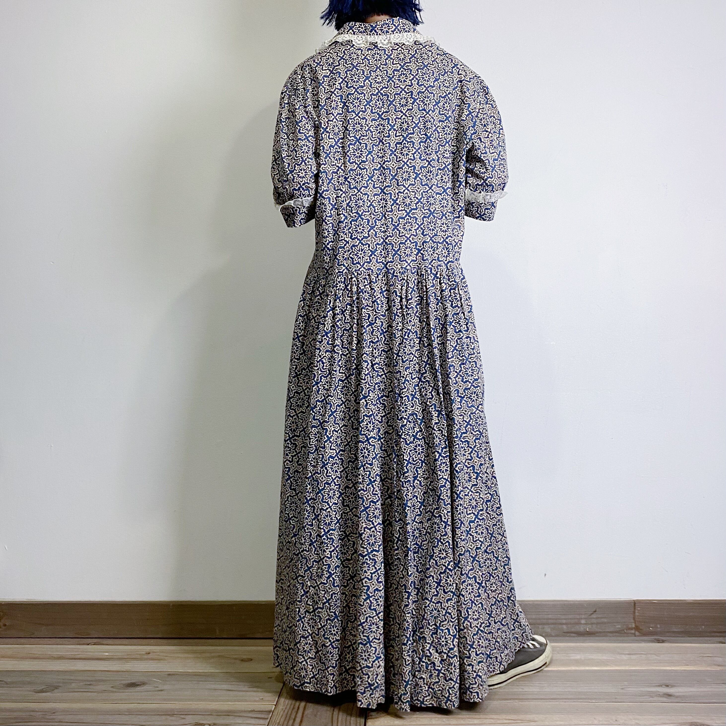 ブルーとベージュの落ち着いた色合いが大人可愛い70〜80年代のワンピースです。