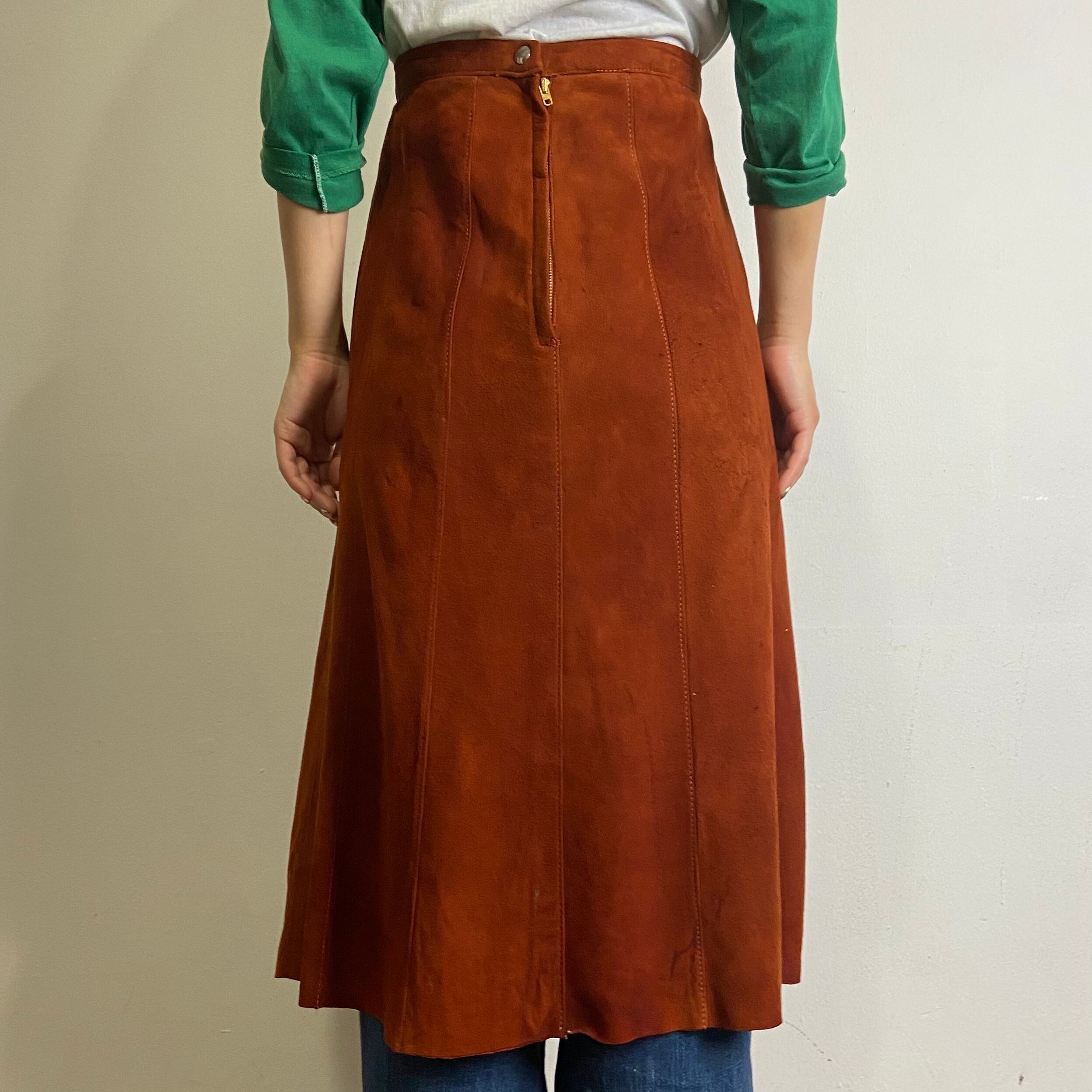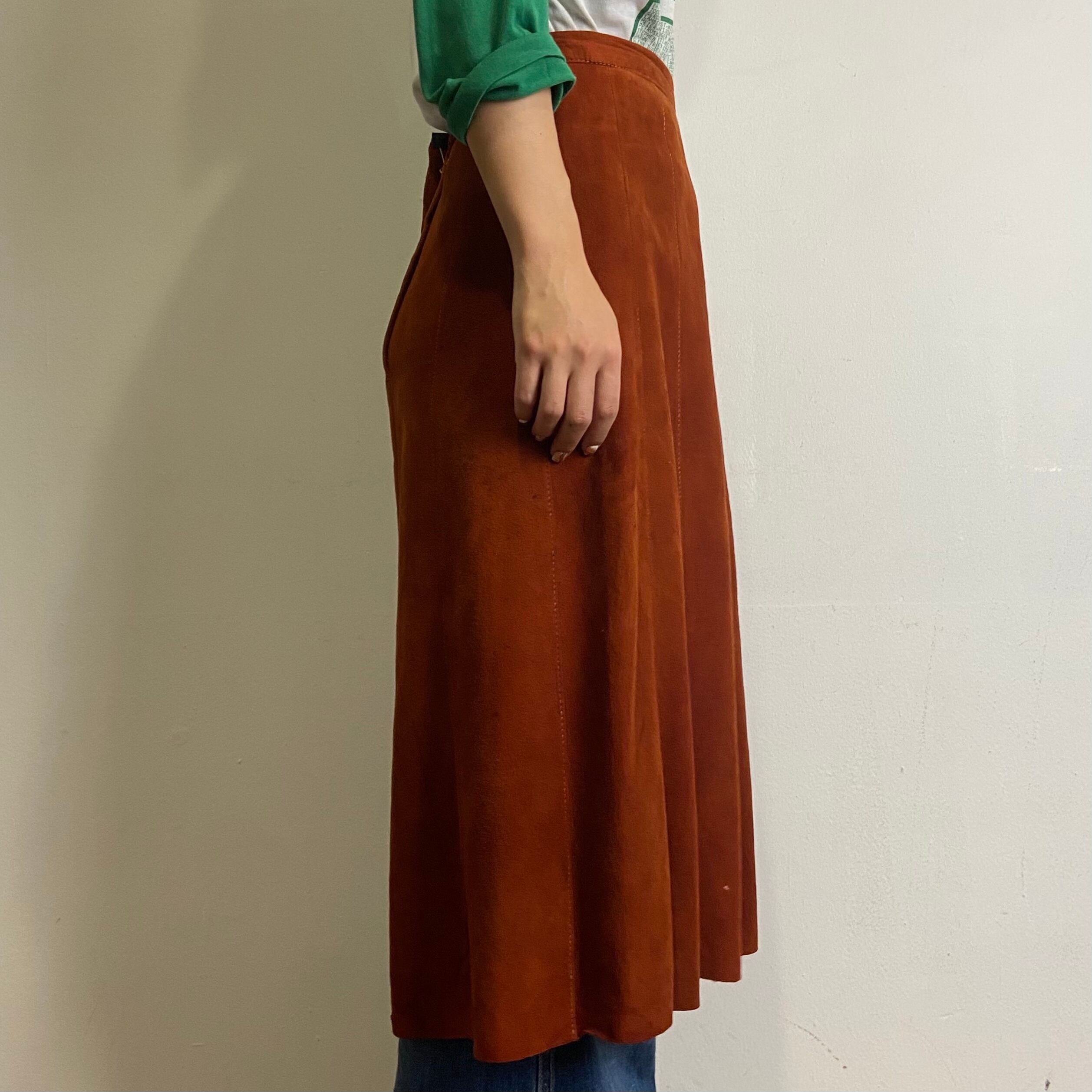 こっくりとしたオレンジの色合いが可愛い70年代のスエードスカートです。