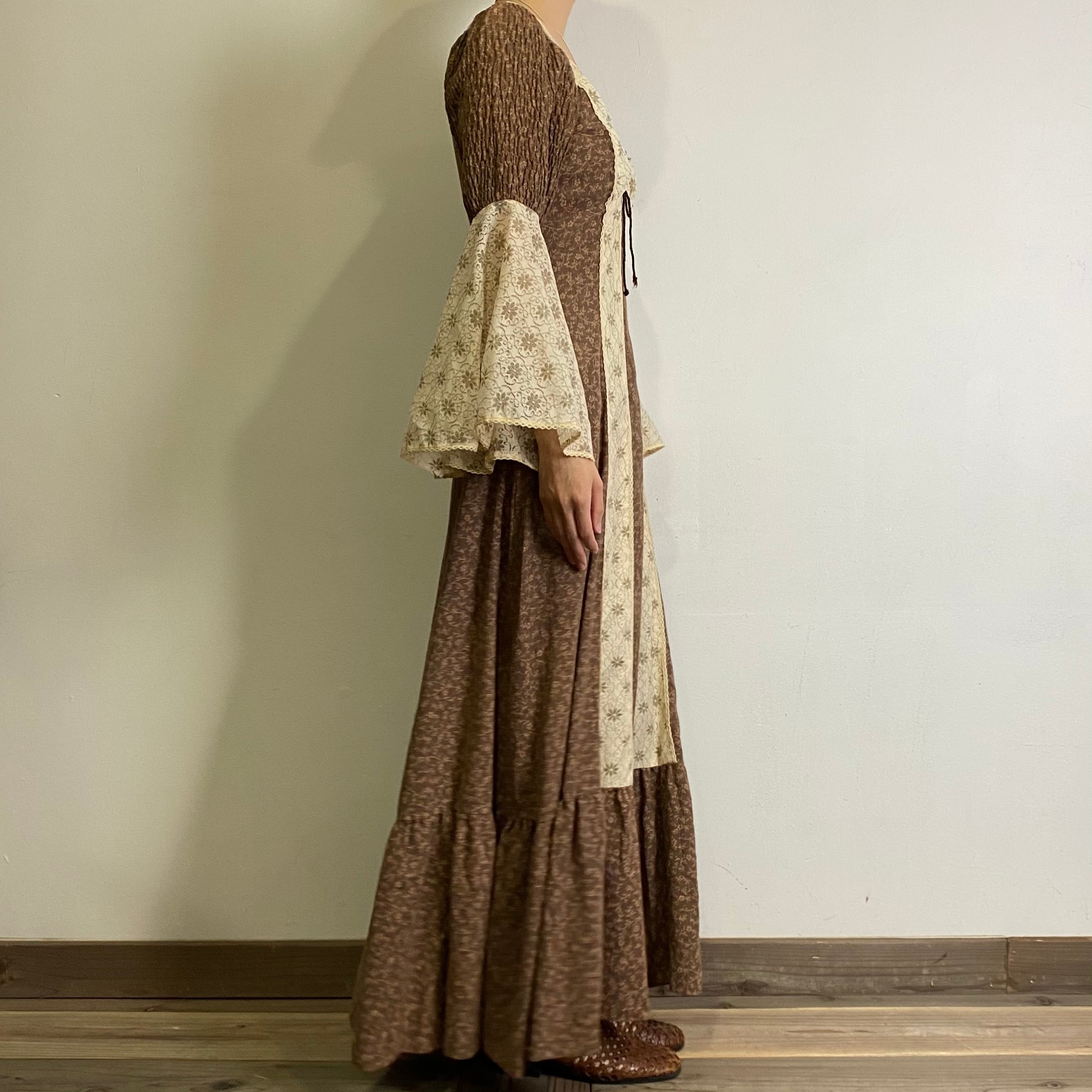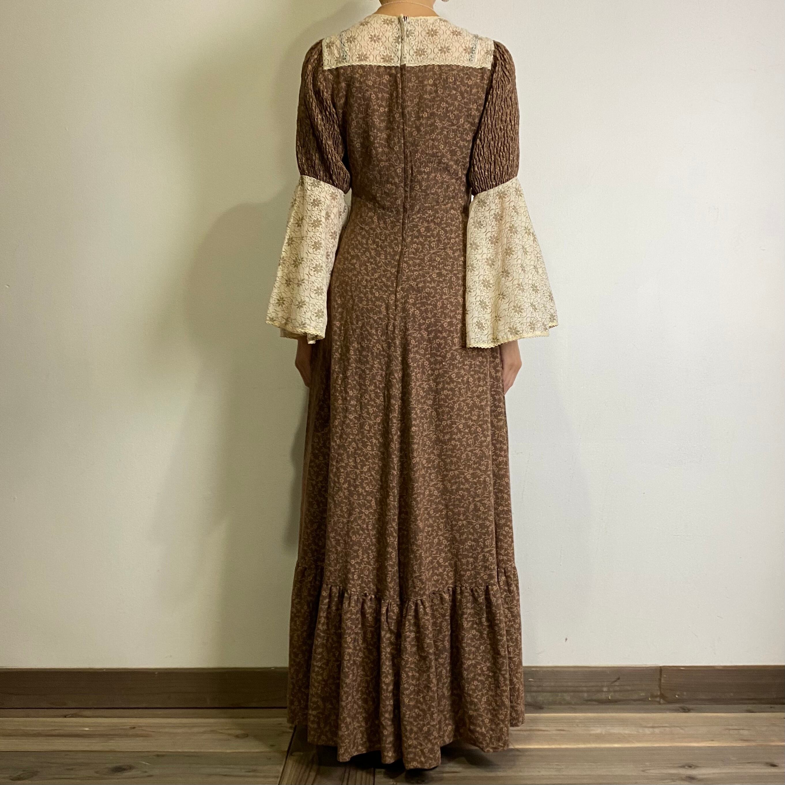 70s brown and lace bell sleeves dress