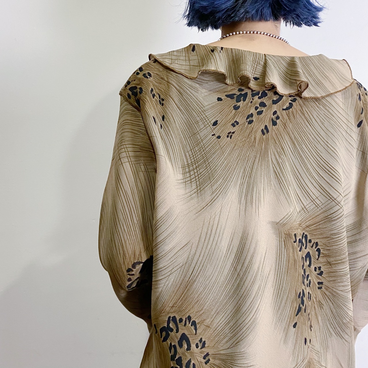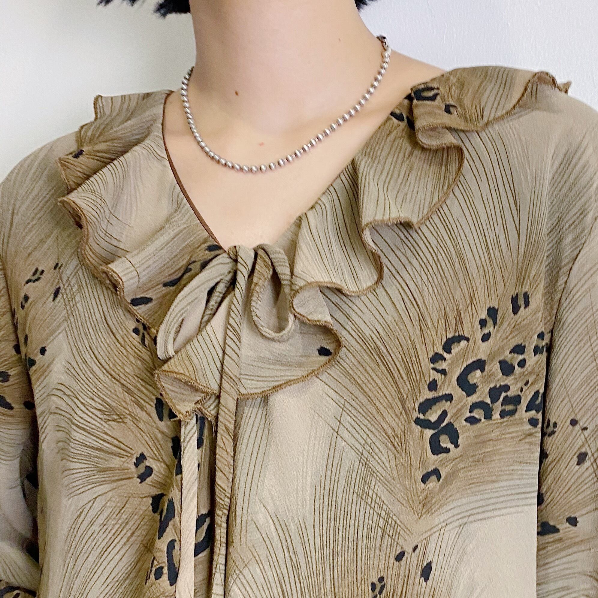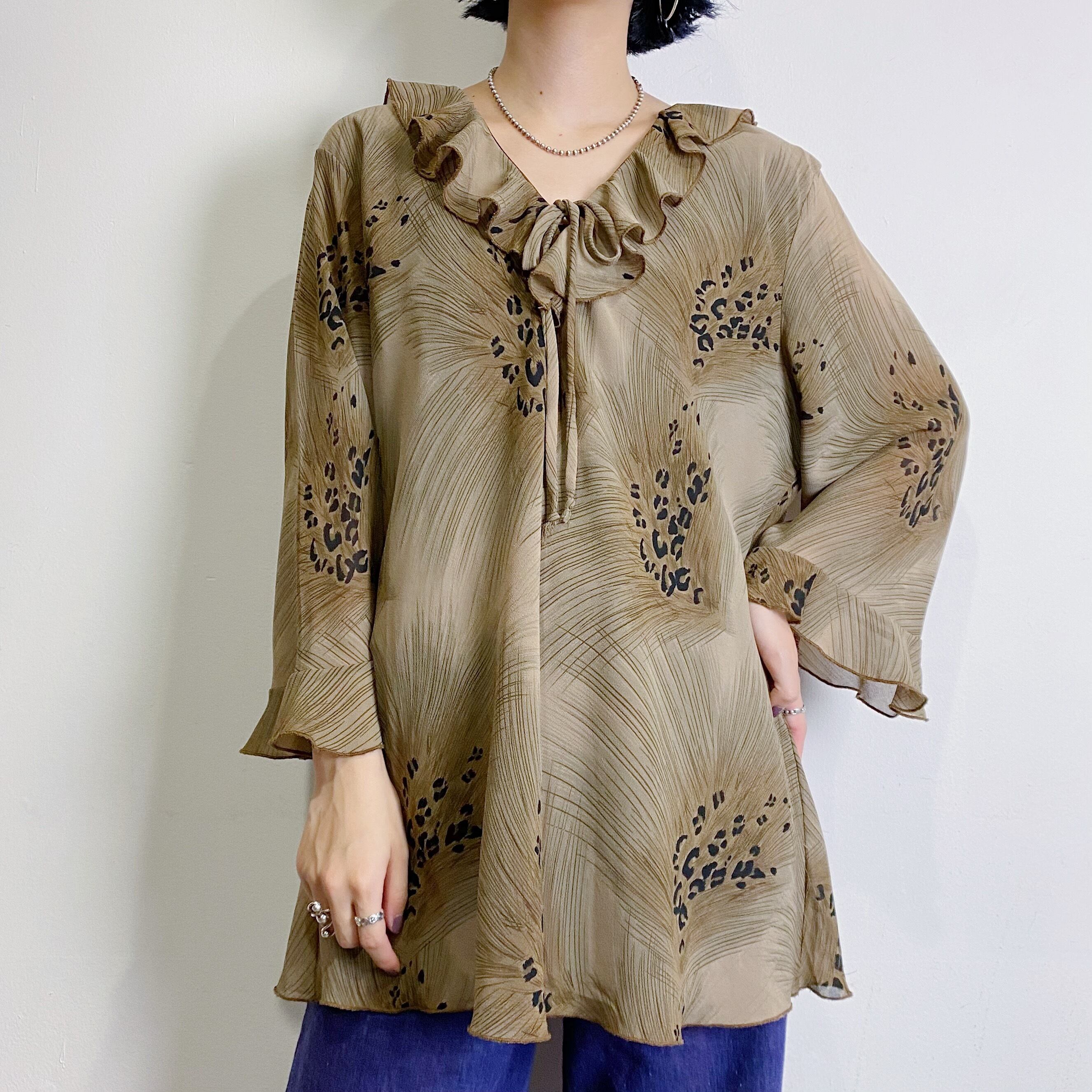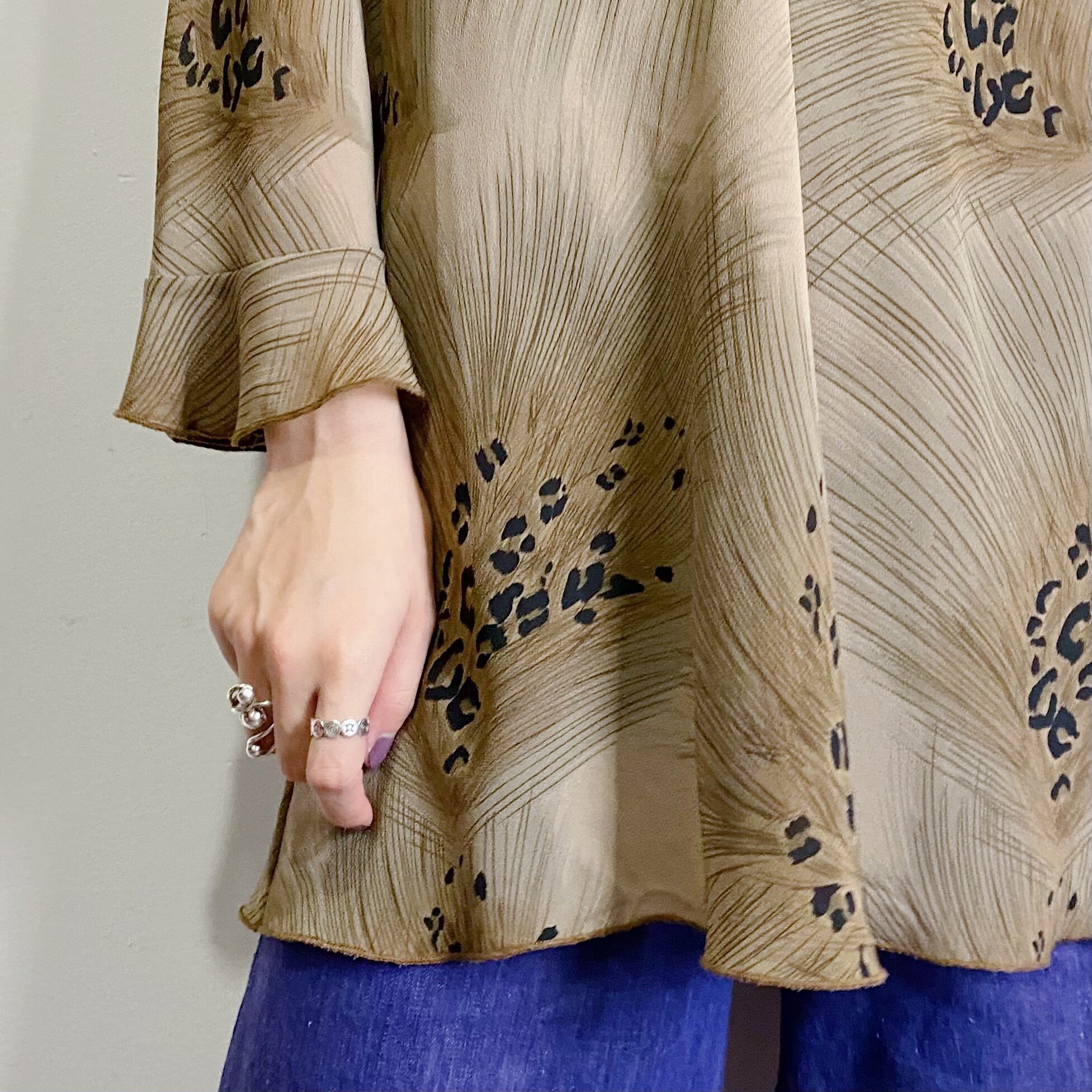 一見レオパードのようなフェザープリントが可愛いトップスです。