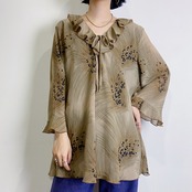brown feather printed frill shirt