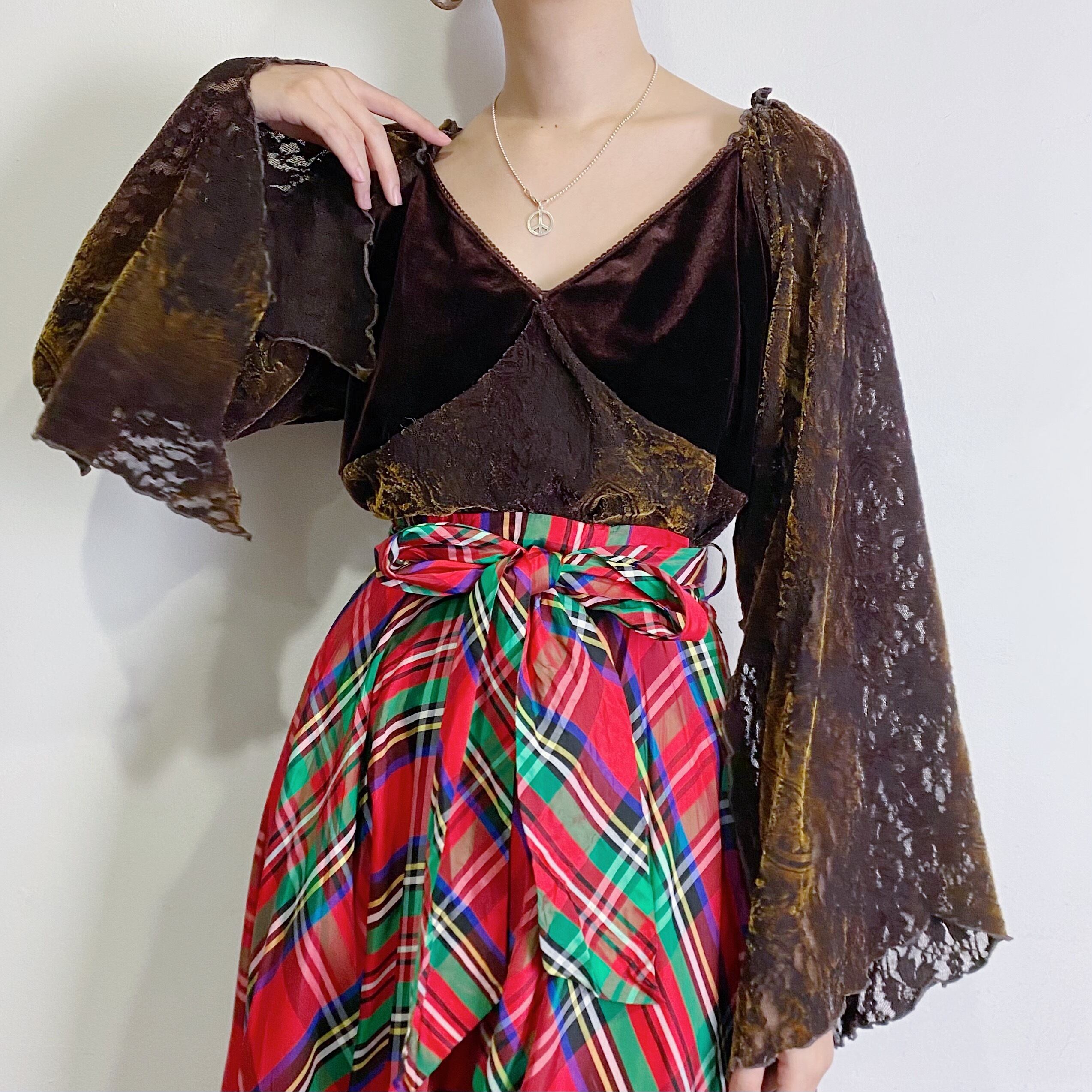 ブラウンベースにベロアとレースの切り替えが可愛いトップスです。