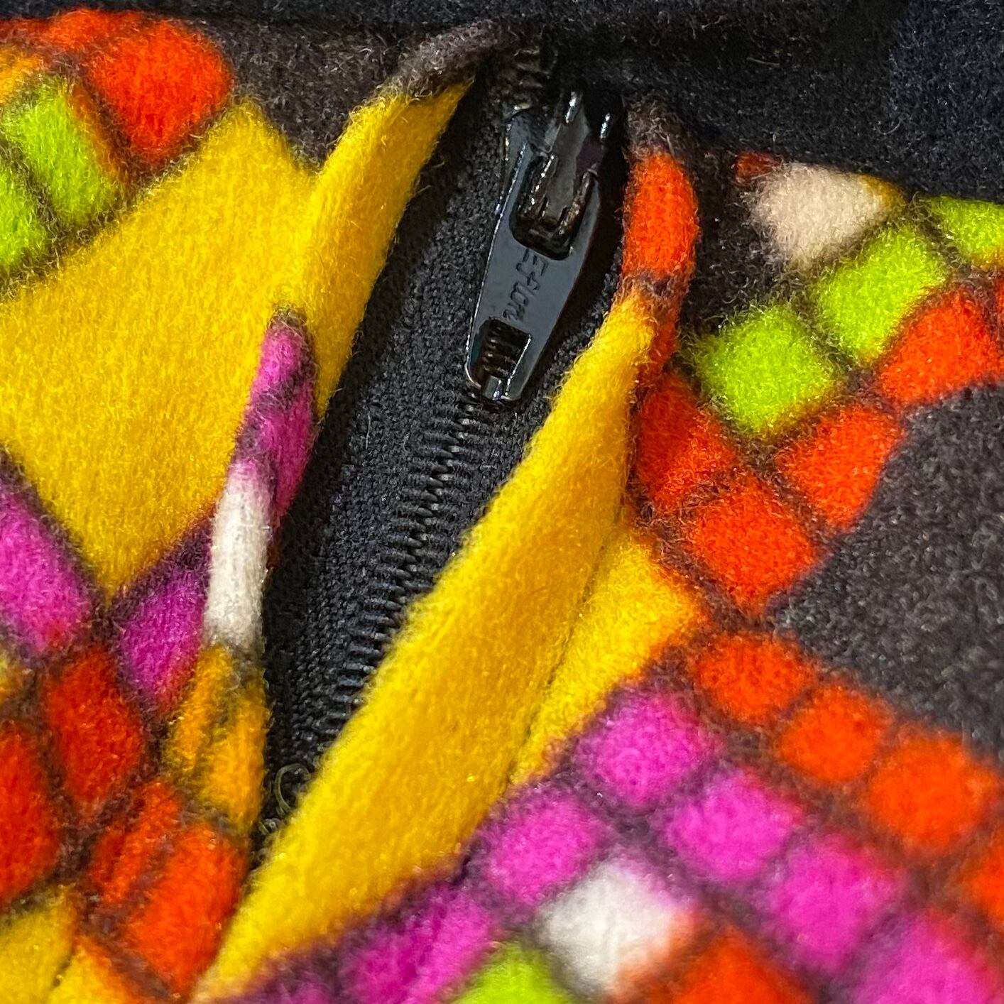 ベロア風の素材にハッピーなサイケ柄が可愛い60~70年代のワンピースです。