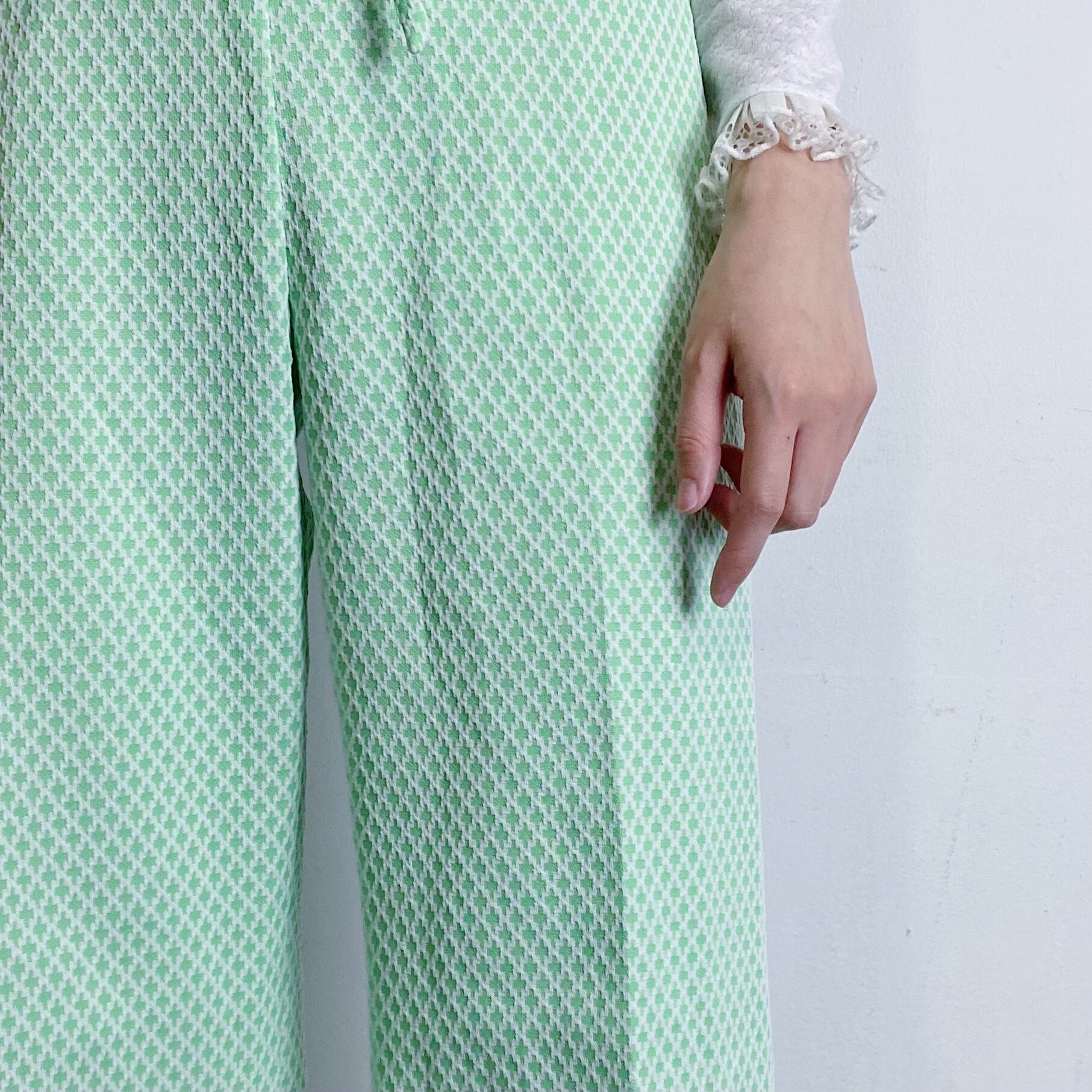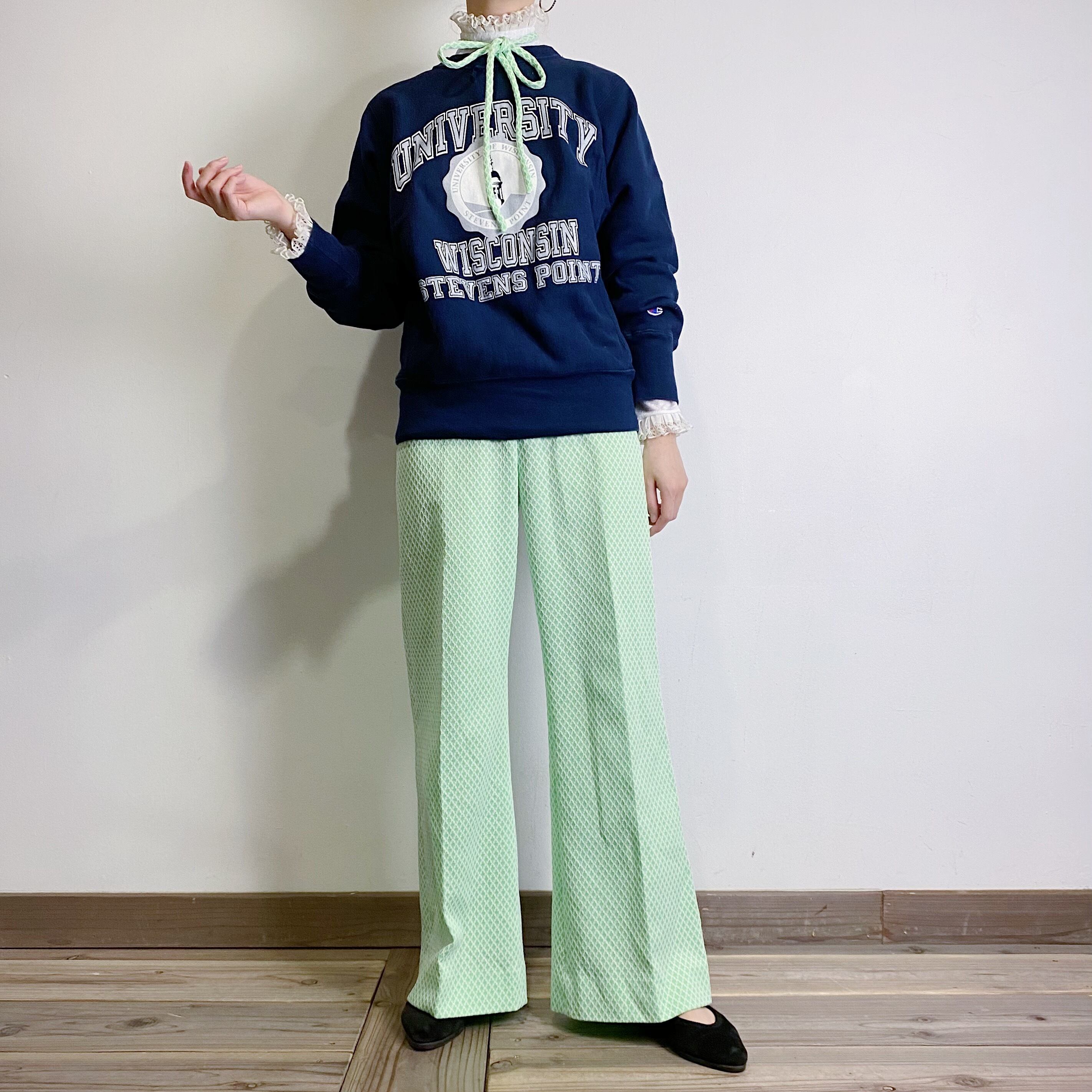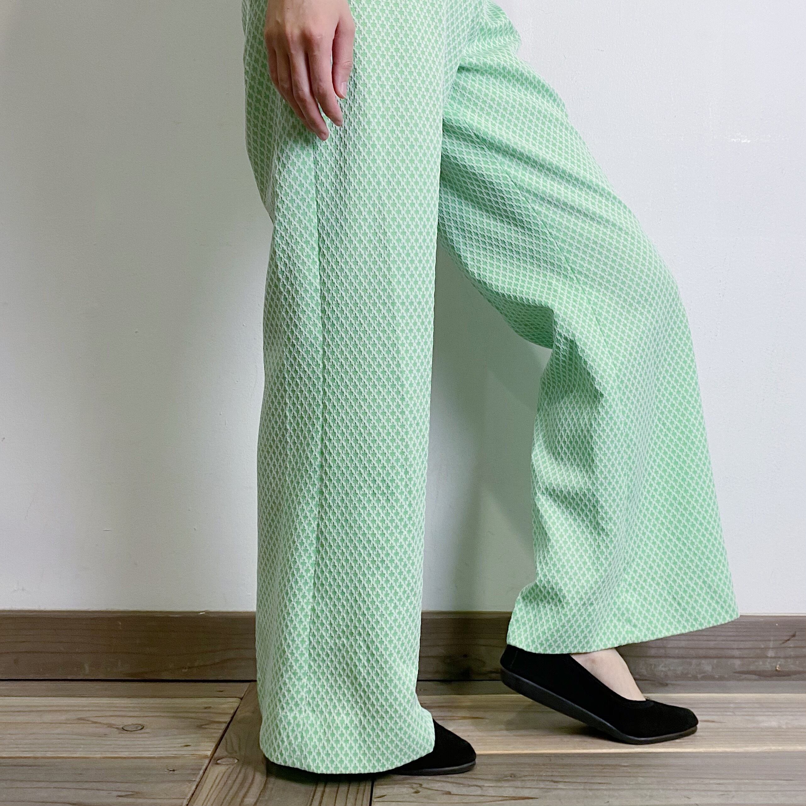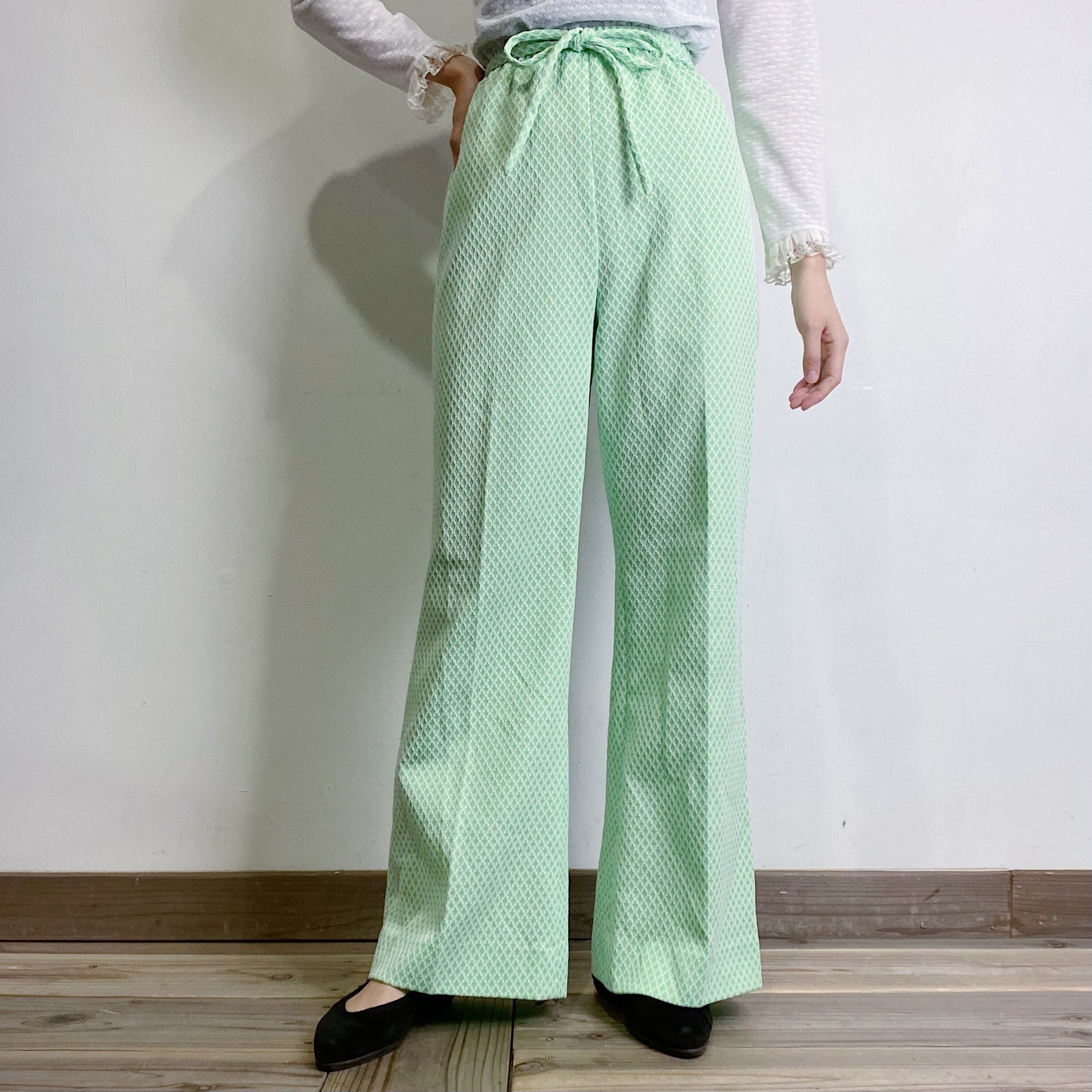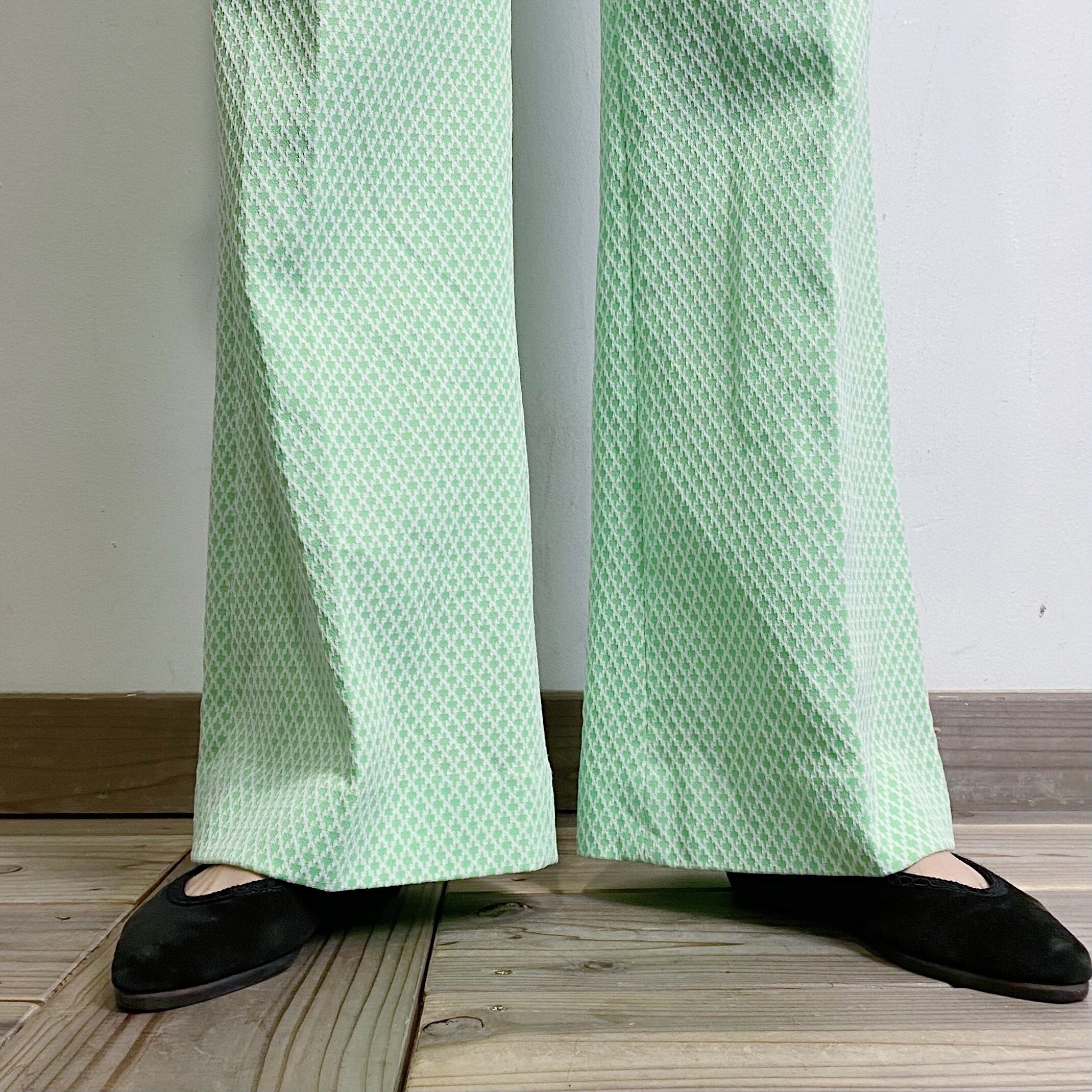 ライトグリーンの色合いが可愛い70年代のフレアパンツです。