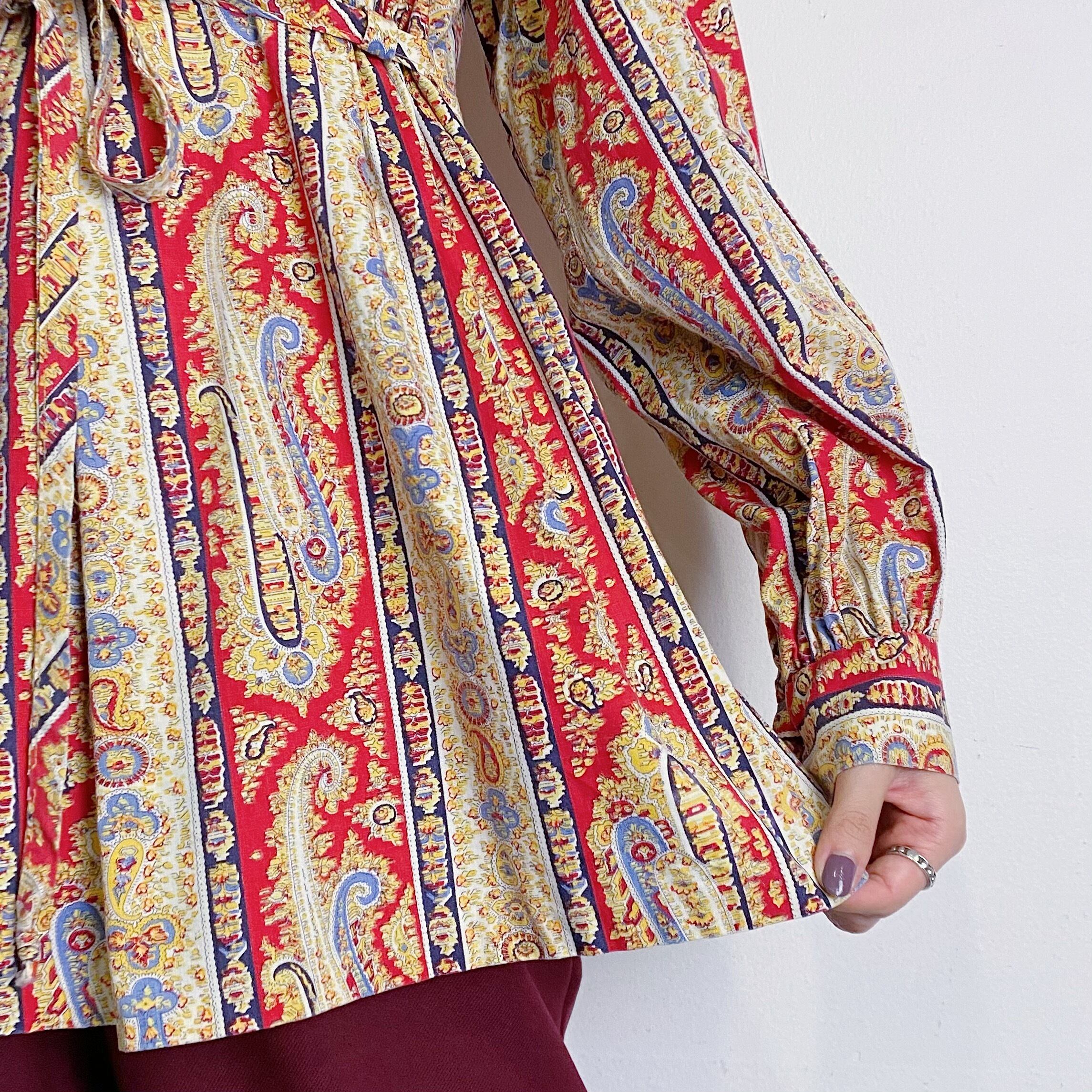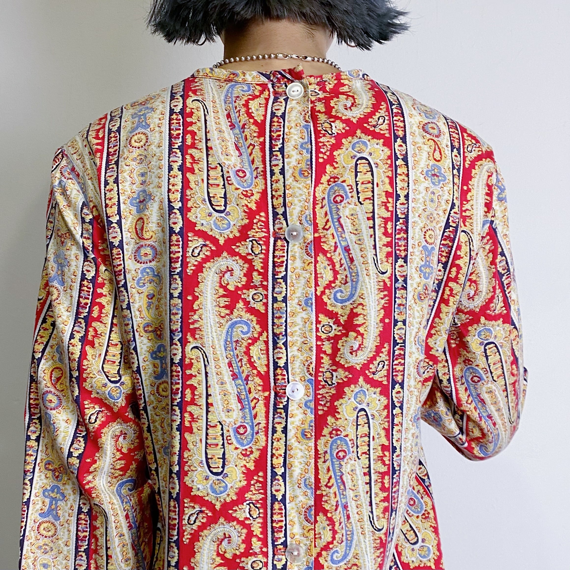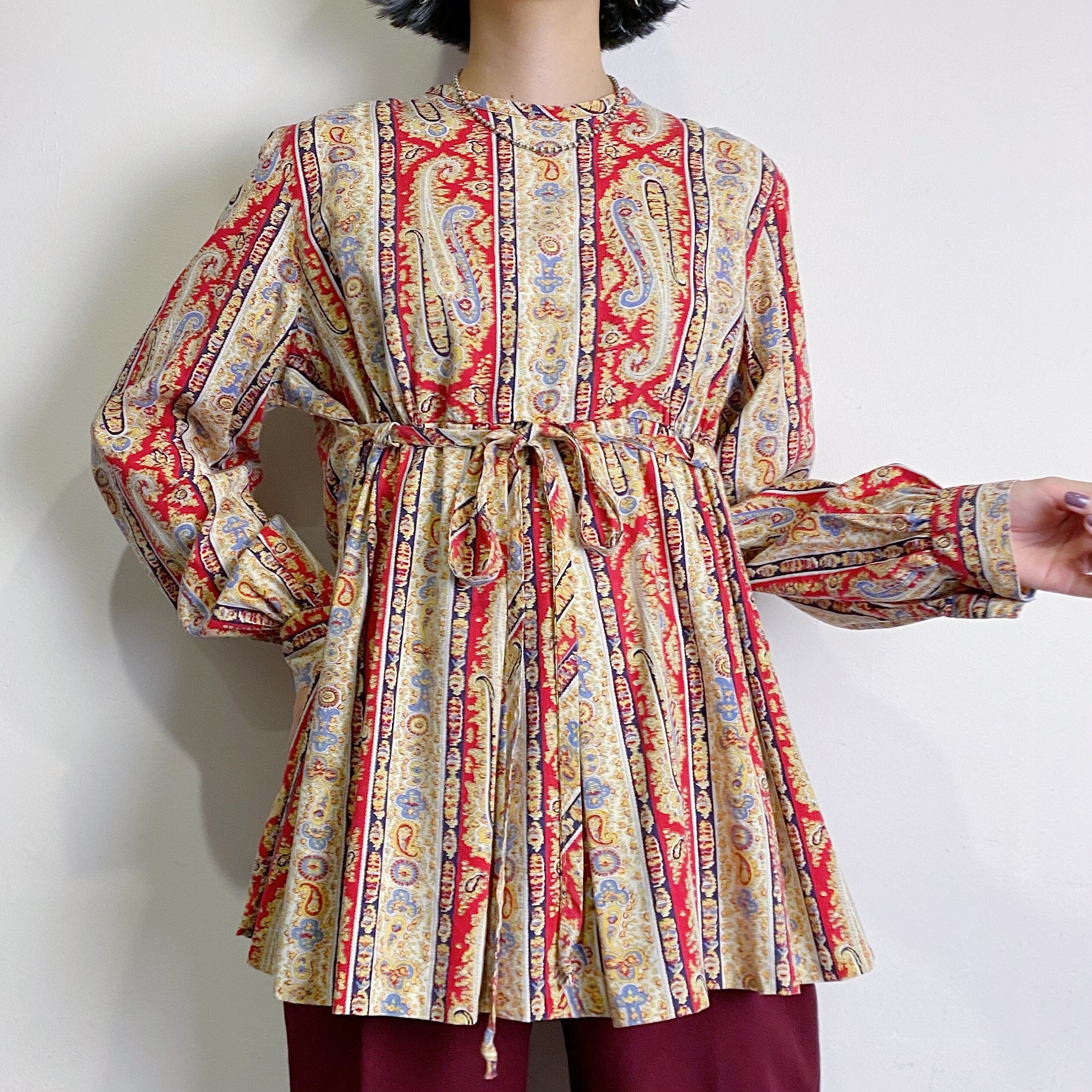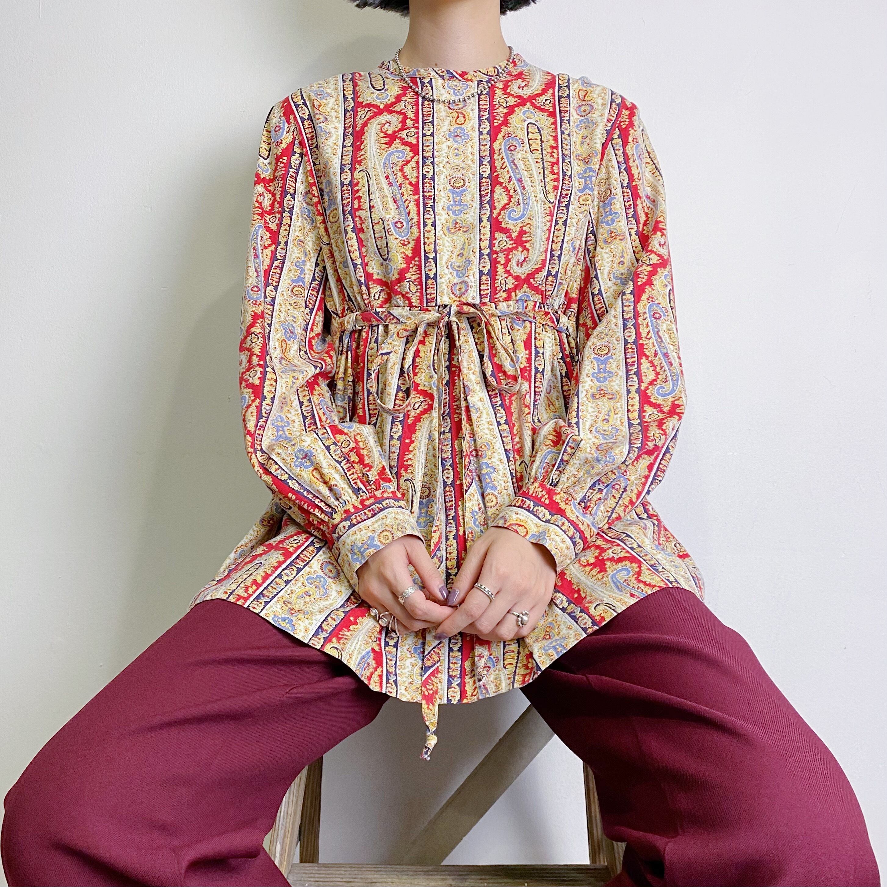 赤とベージュの組み合わせにペイズリー柄が大人可愛い70年代のチュニックトップです。