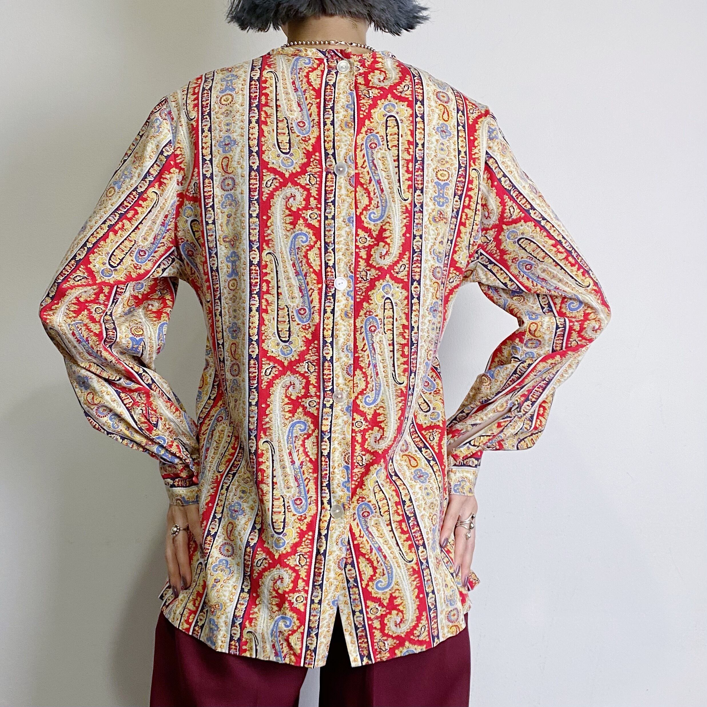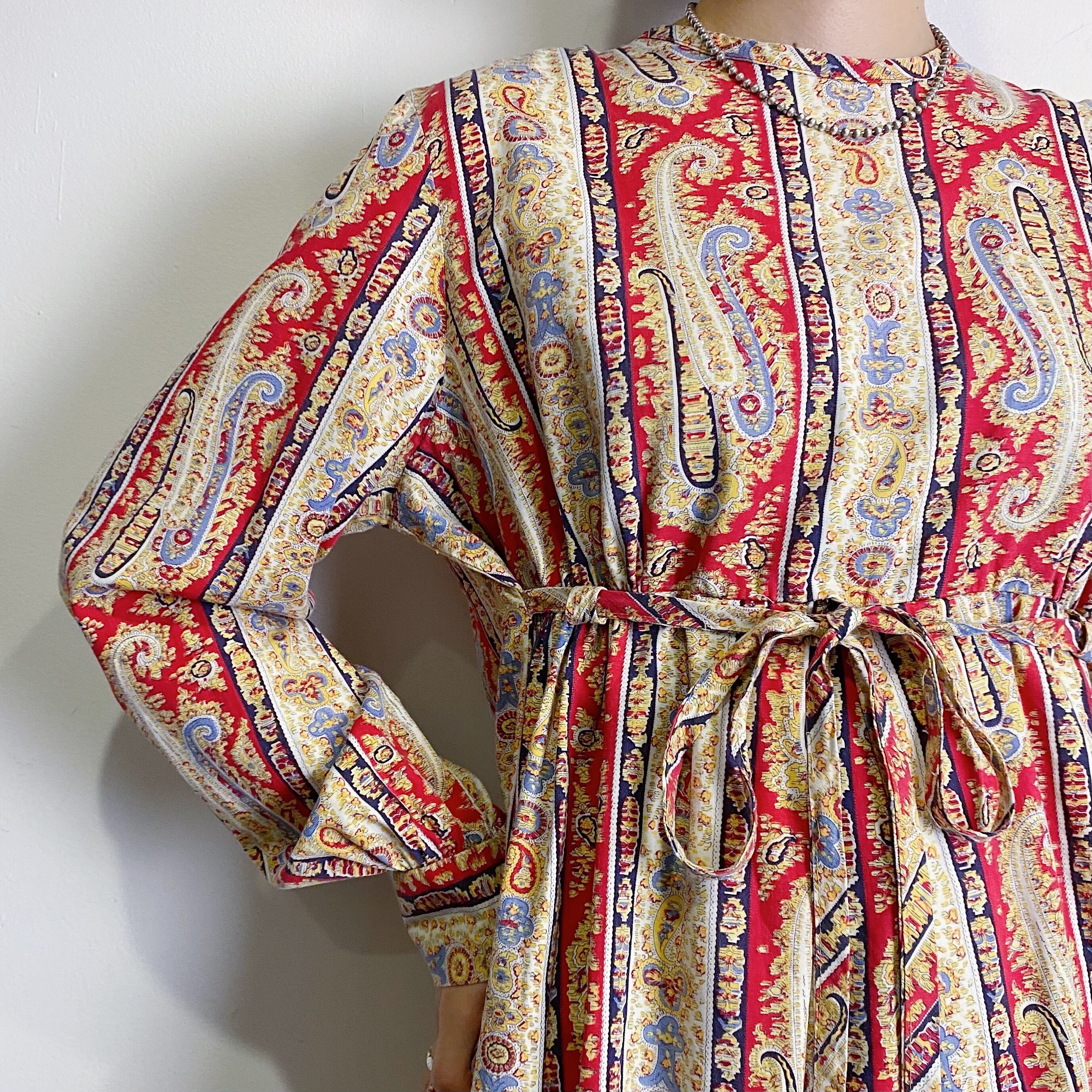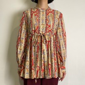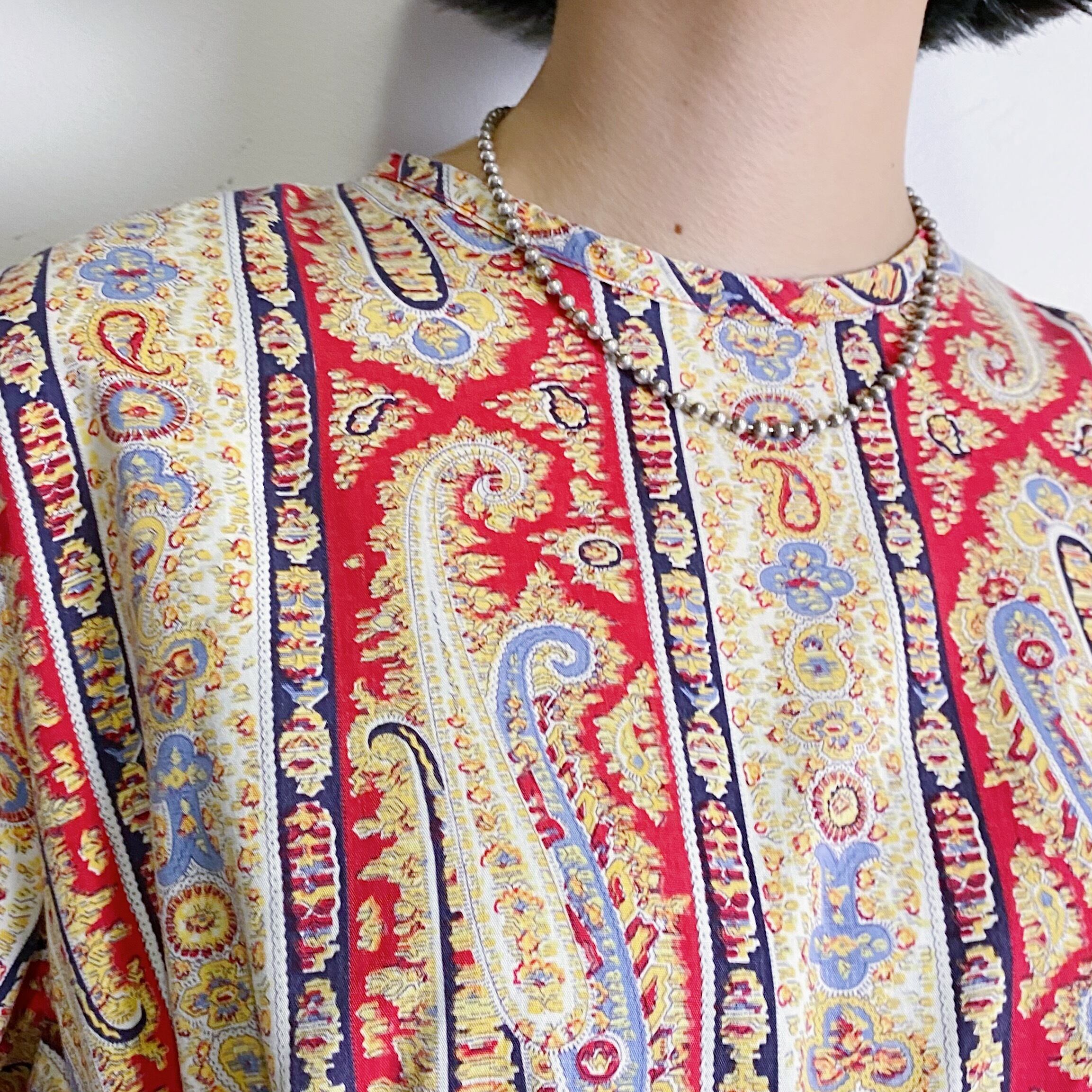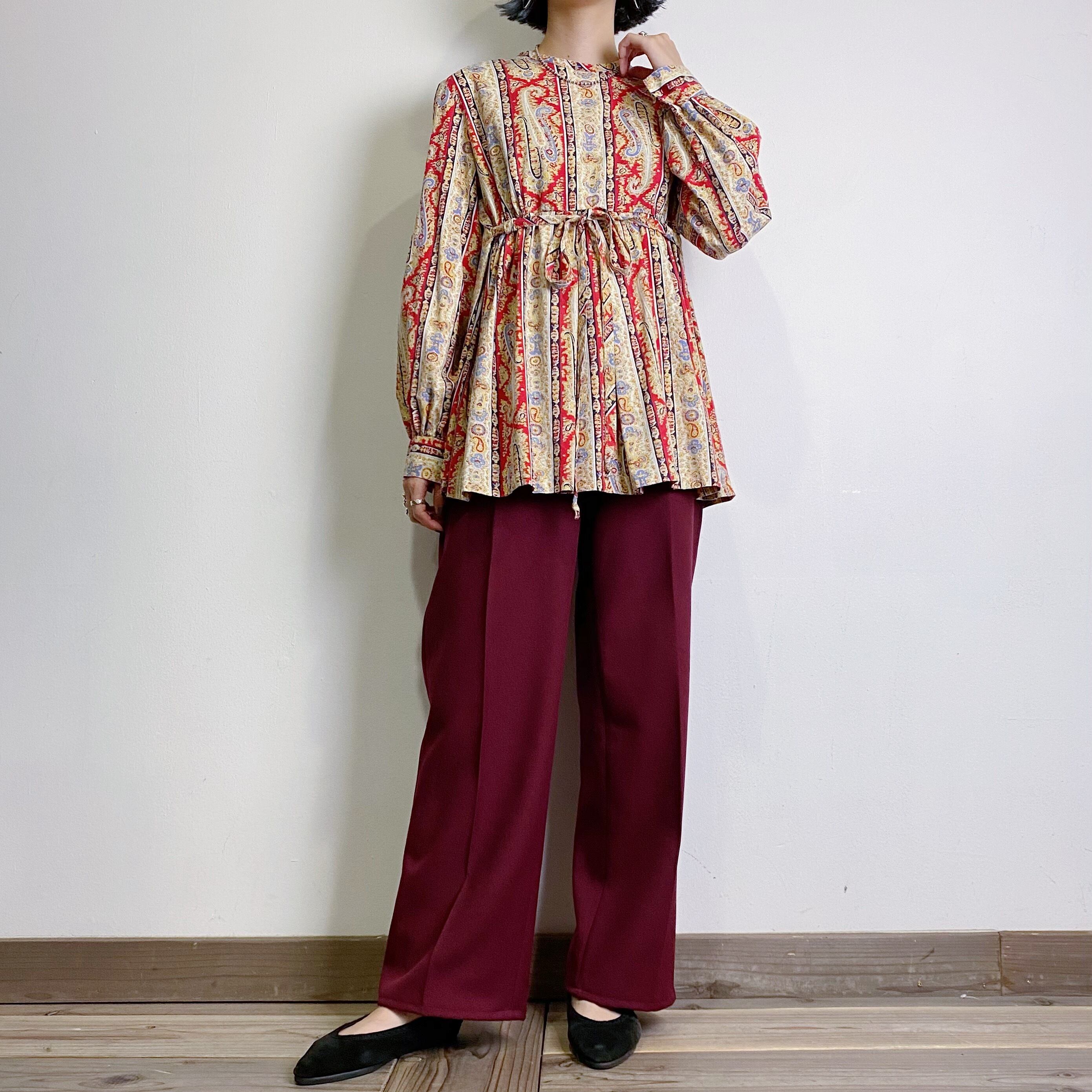 赤とベージュの組み合わせにペイズリー柄が大人可愛い70年代のチュニックトップです。