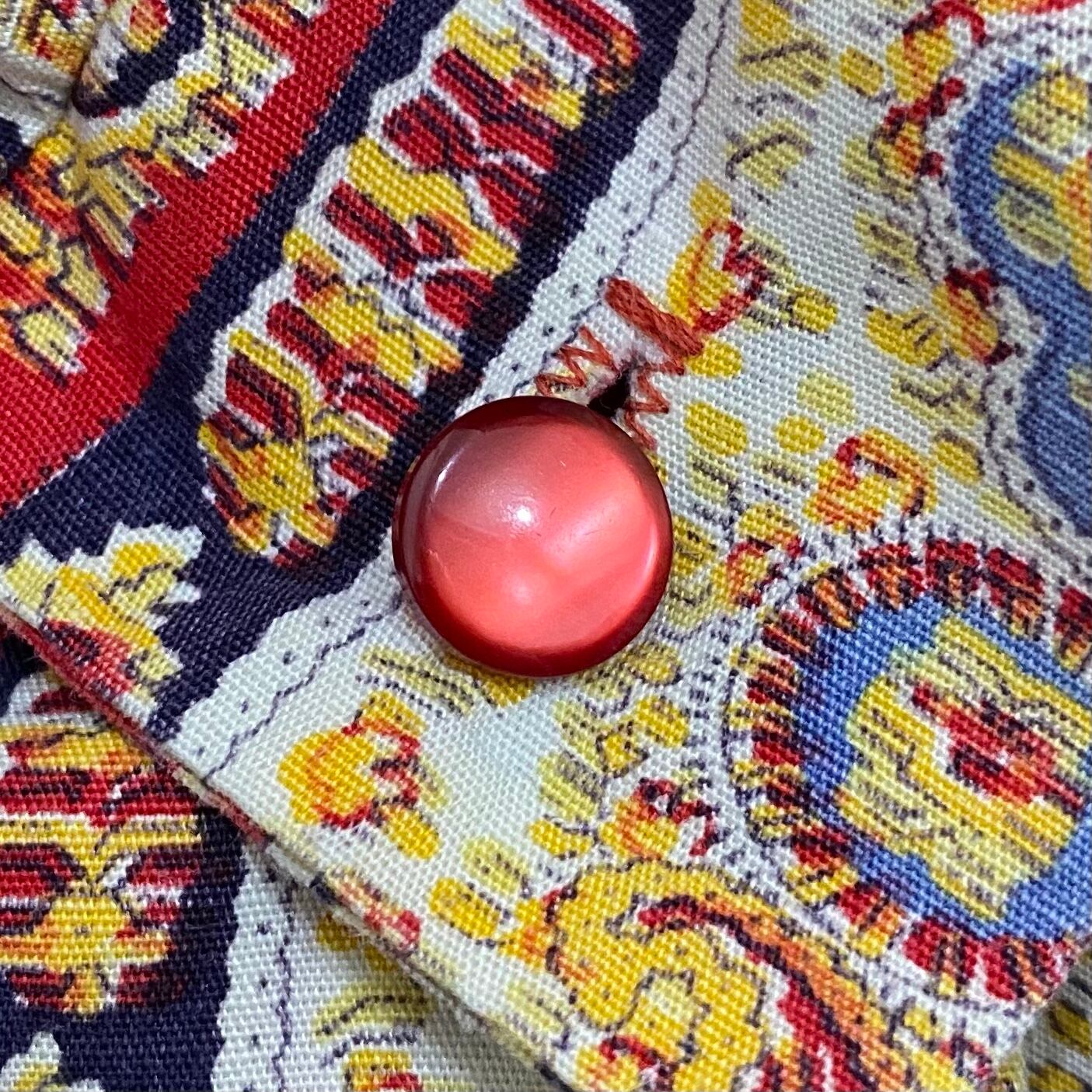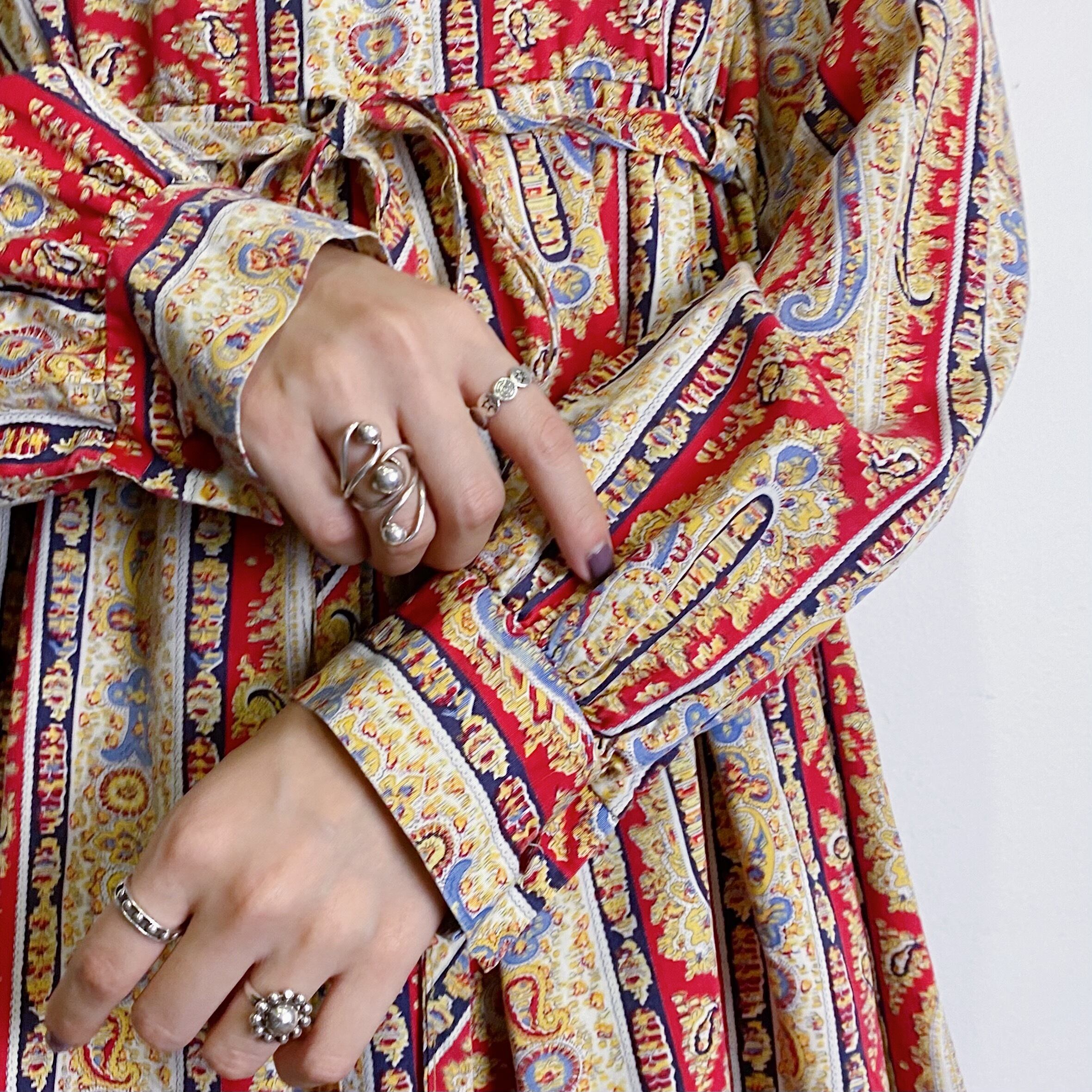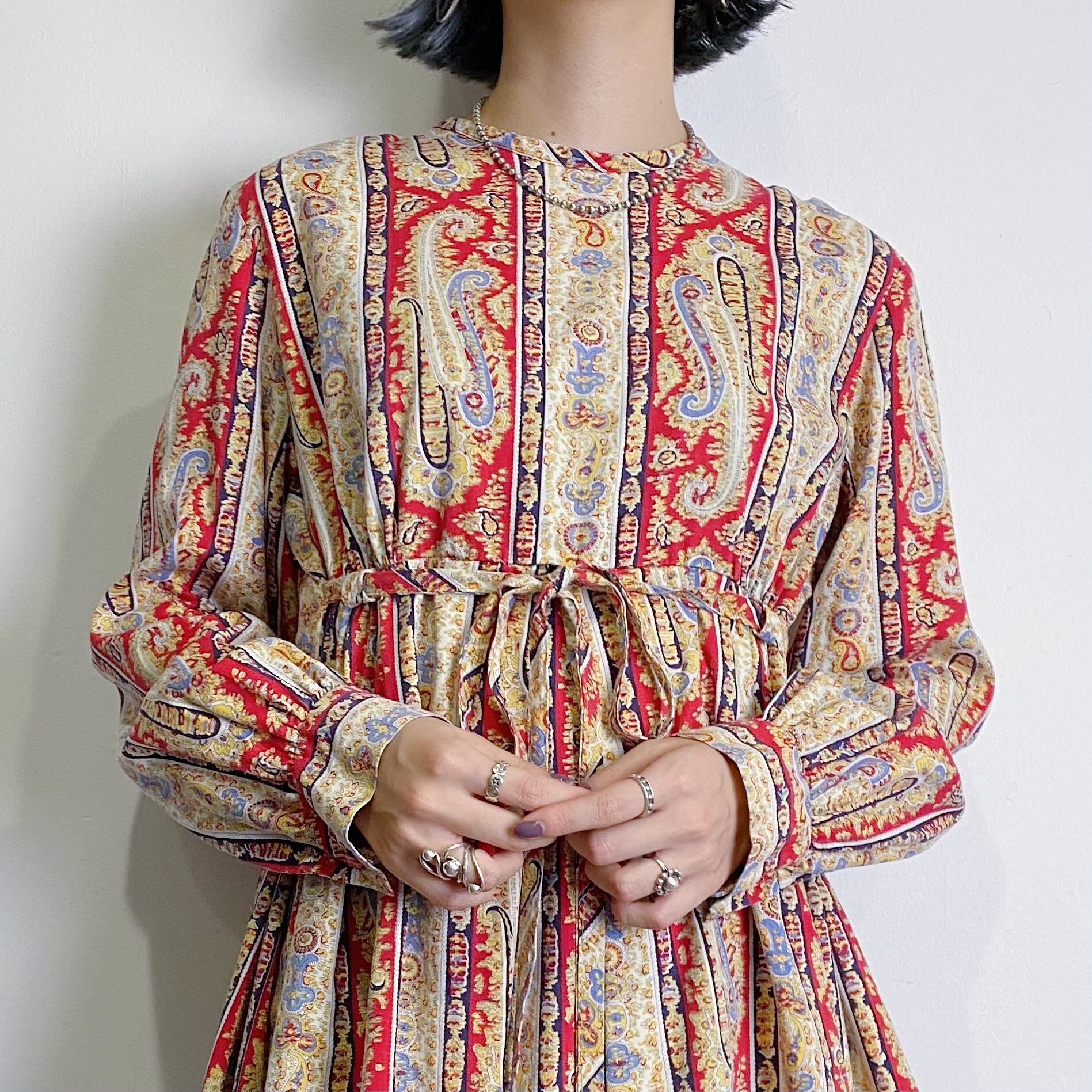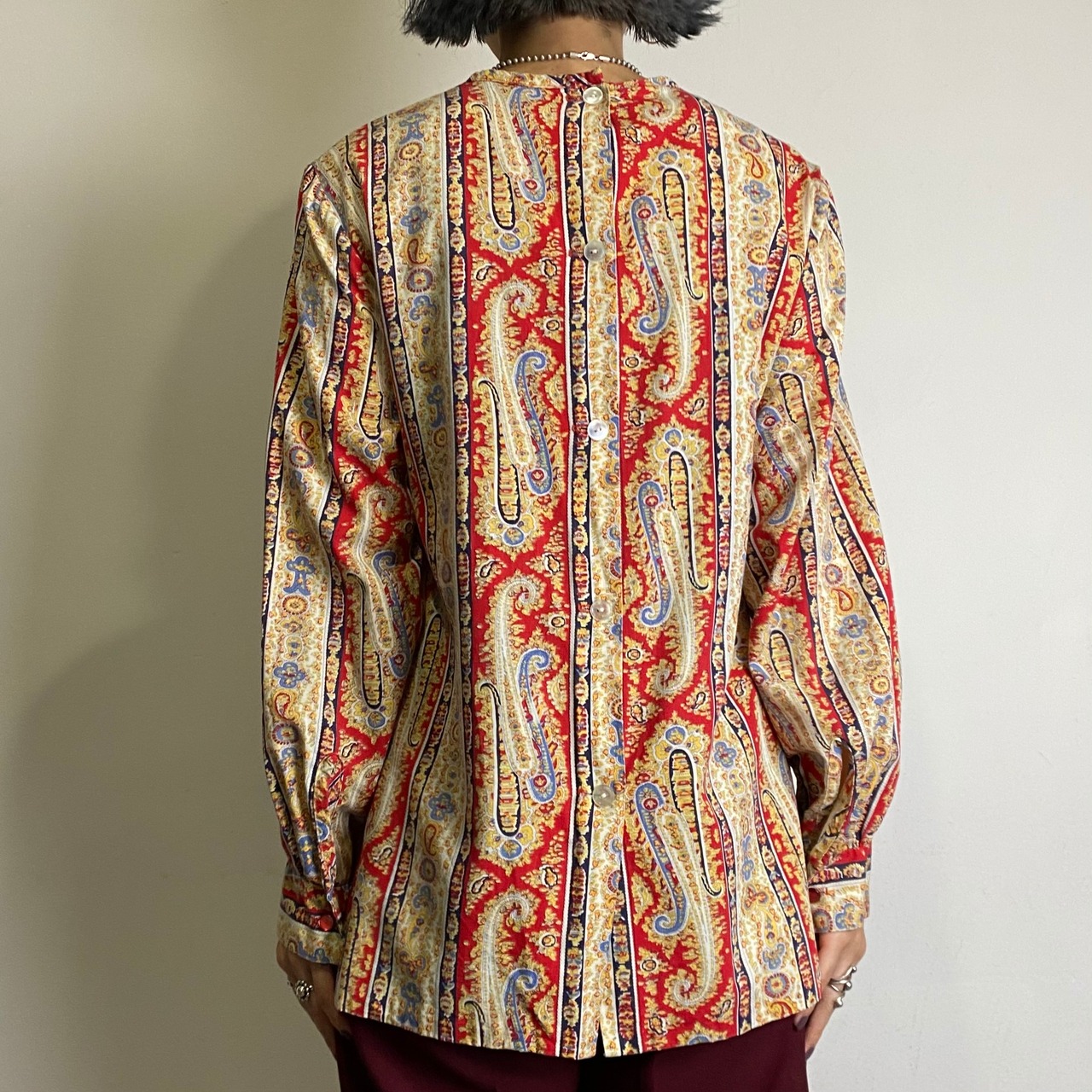 赤とベージュの組み合わせにペイズリー柄が大人可愛い70年代のチュニックトップです。