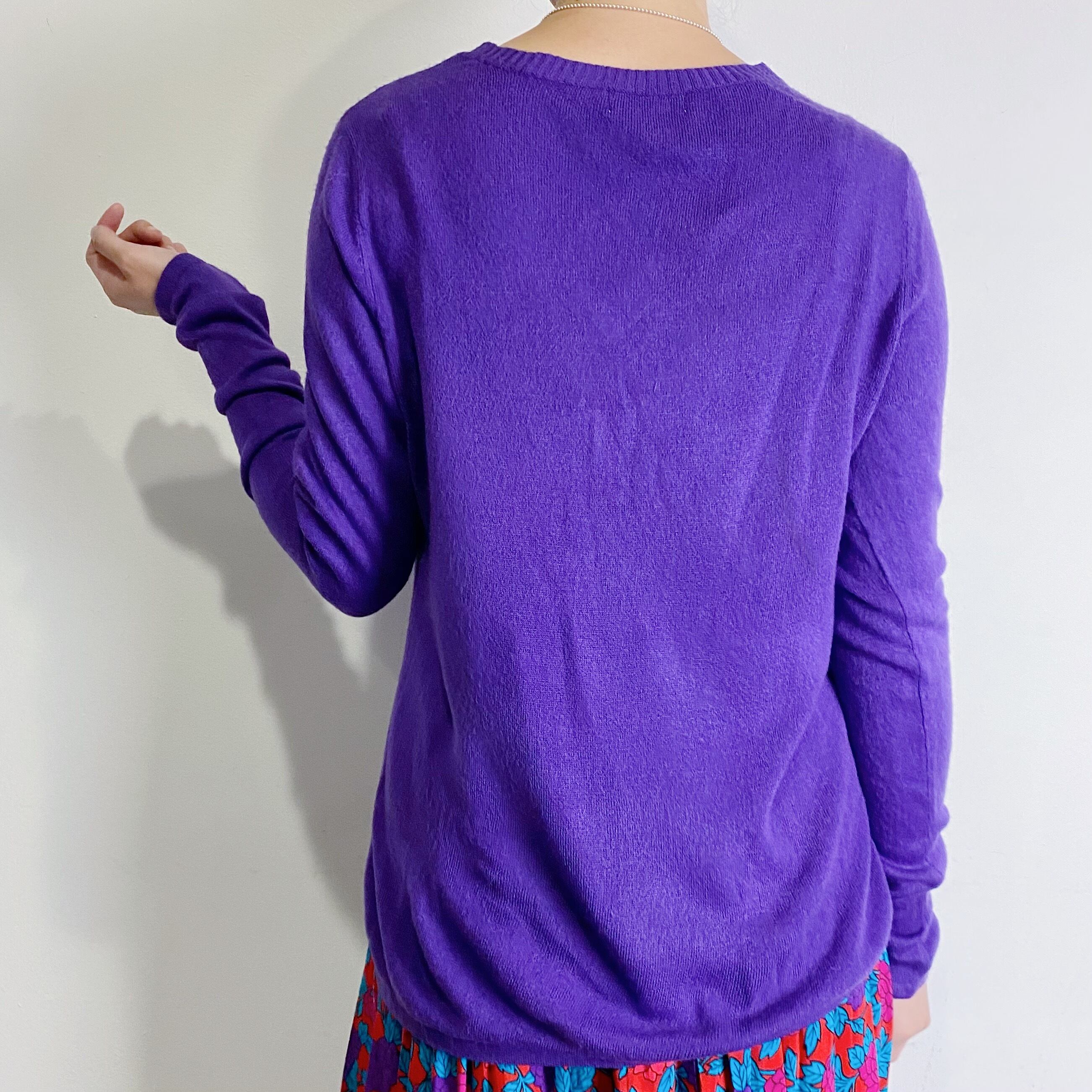 こっくり紫がかわいい使い勝手のよさそうな薄手セーターです。