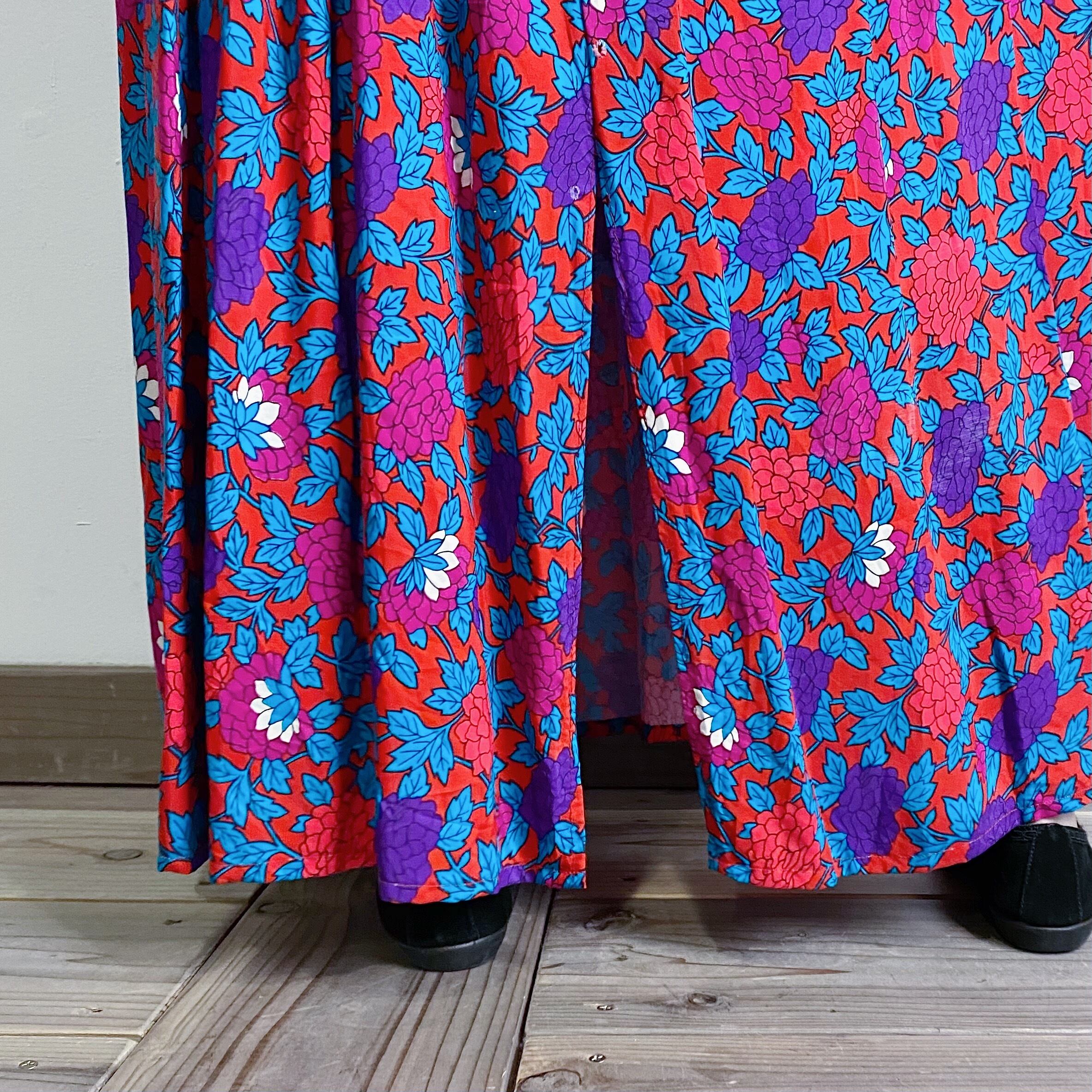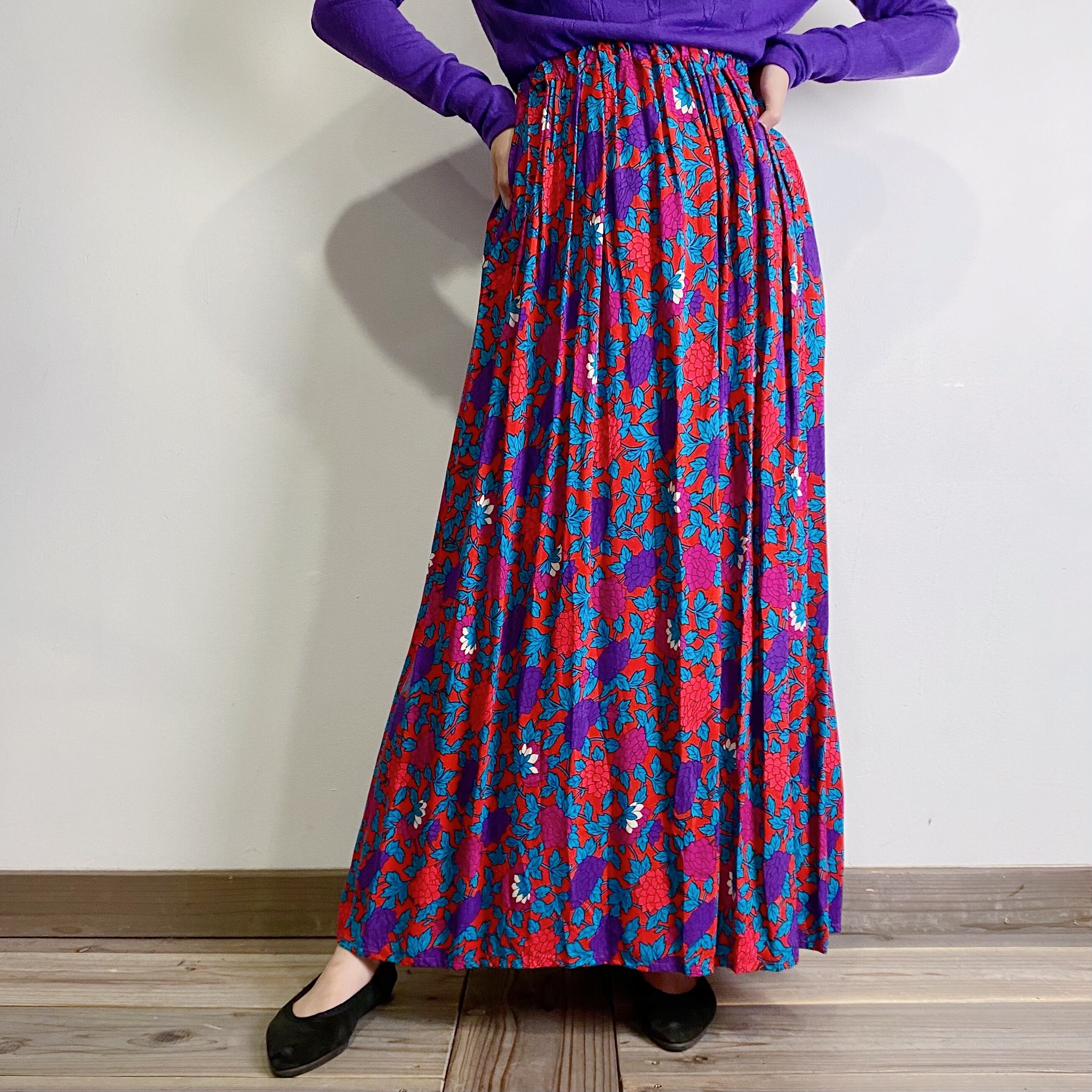 80s flower long rayon skirt