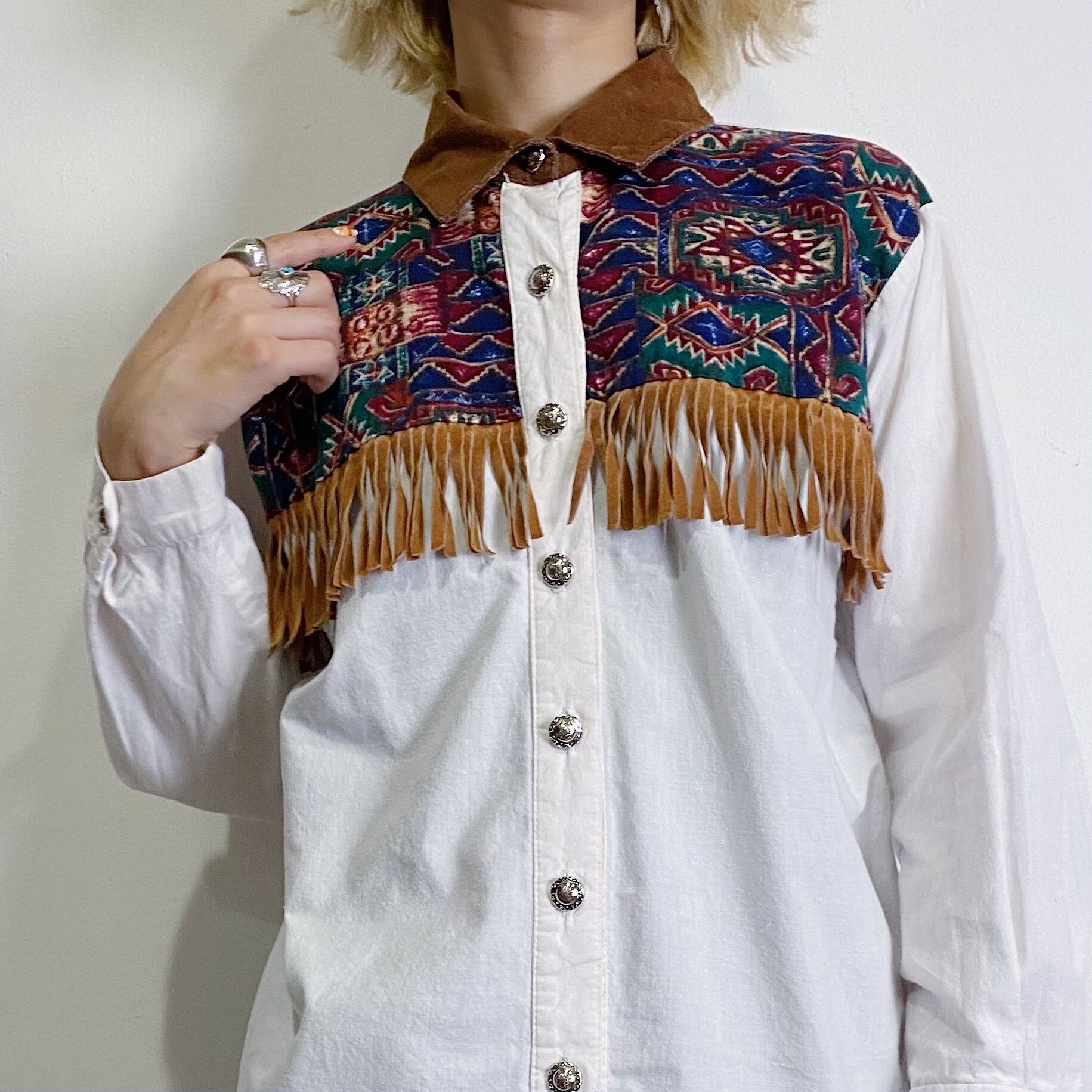 胸元のフリンジとネイティブ柄の切り替えが可愛い長袖シャツです。