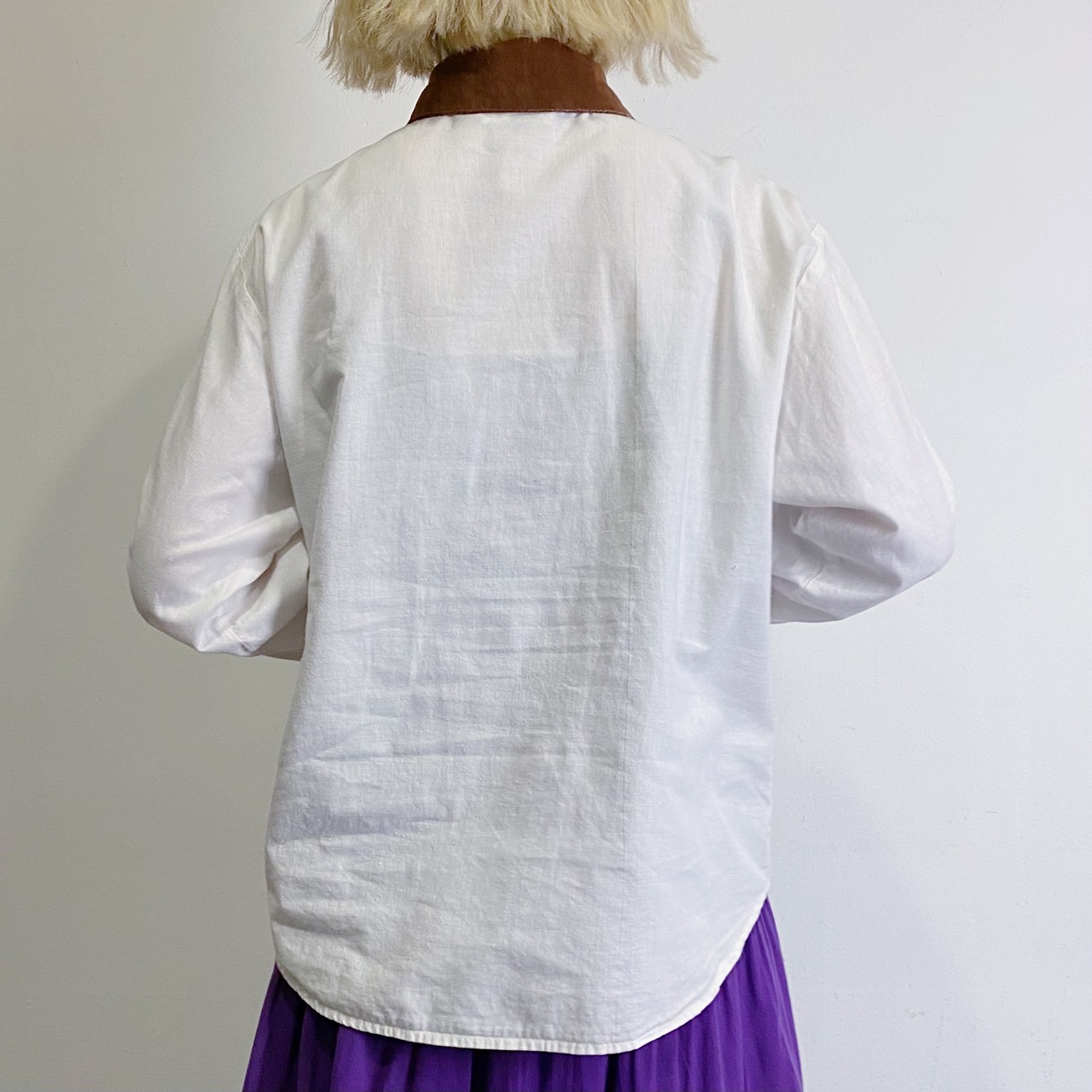 白ベースにコットン素材で着こなしやすそうな一枚。