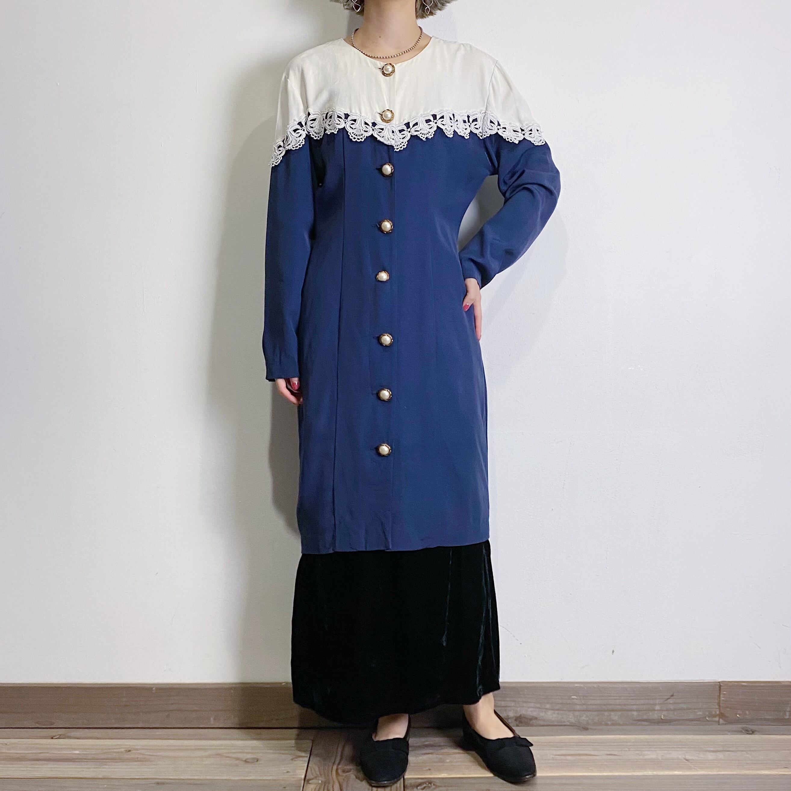 首回りのレースを境にした切り替えが可愛い80年代のワンピースです。