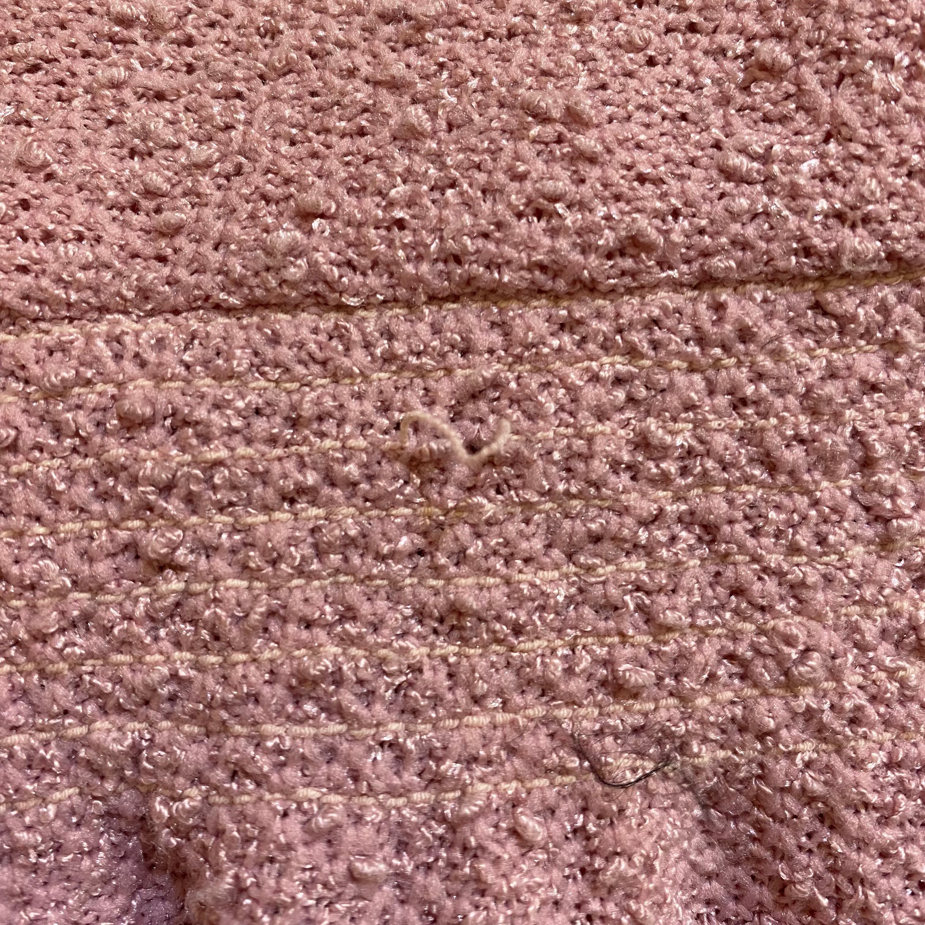 ウエストのシャーリング部分、また生地の所々に引っ掛かりの跡が見受けられますがポコポコとした生地感に紛れてほぼ目立ちません。