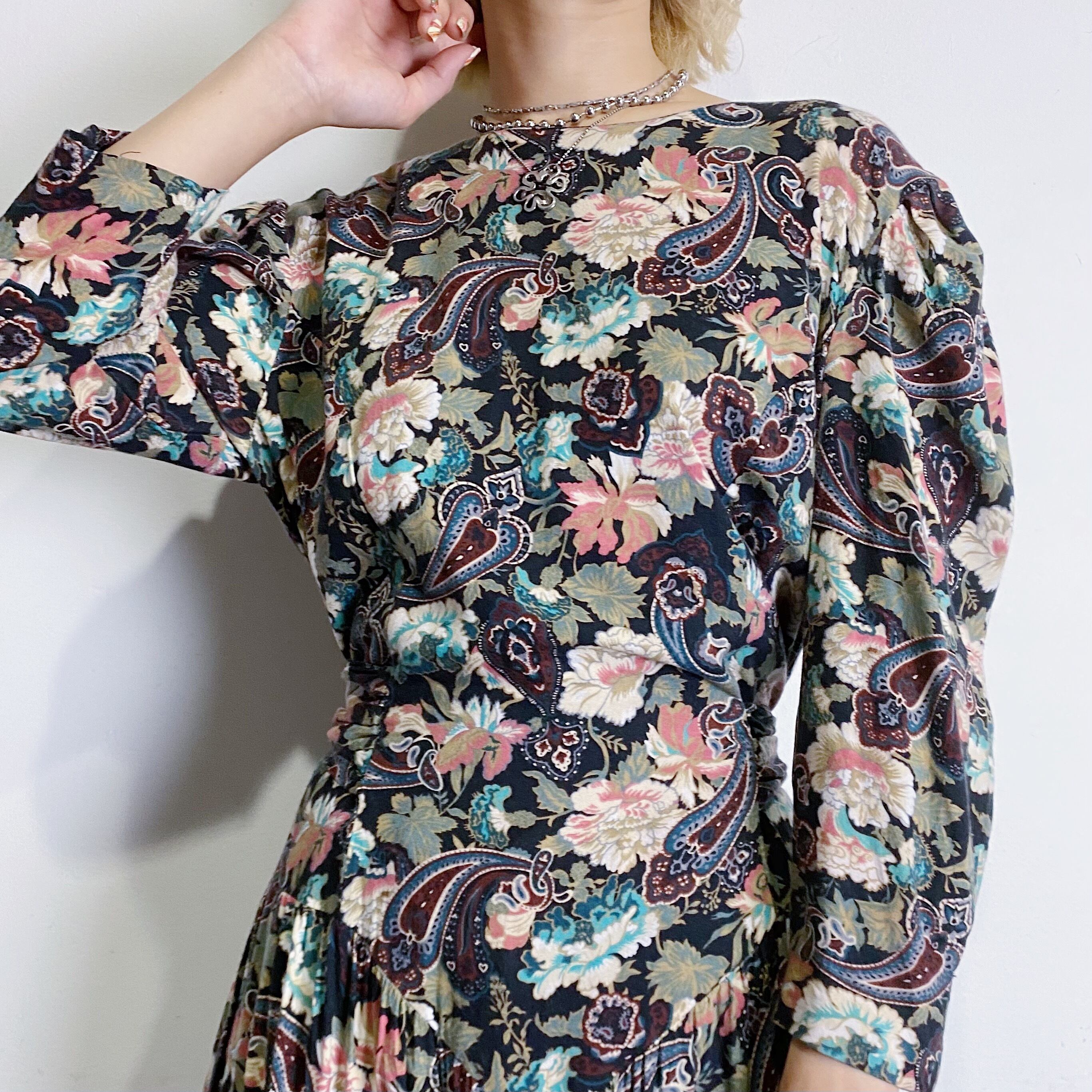 落ち着いた色合いの花柄やペイズリー柄が大人可愛いレーヨンドレスです。