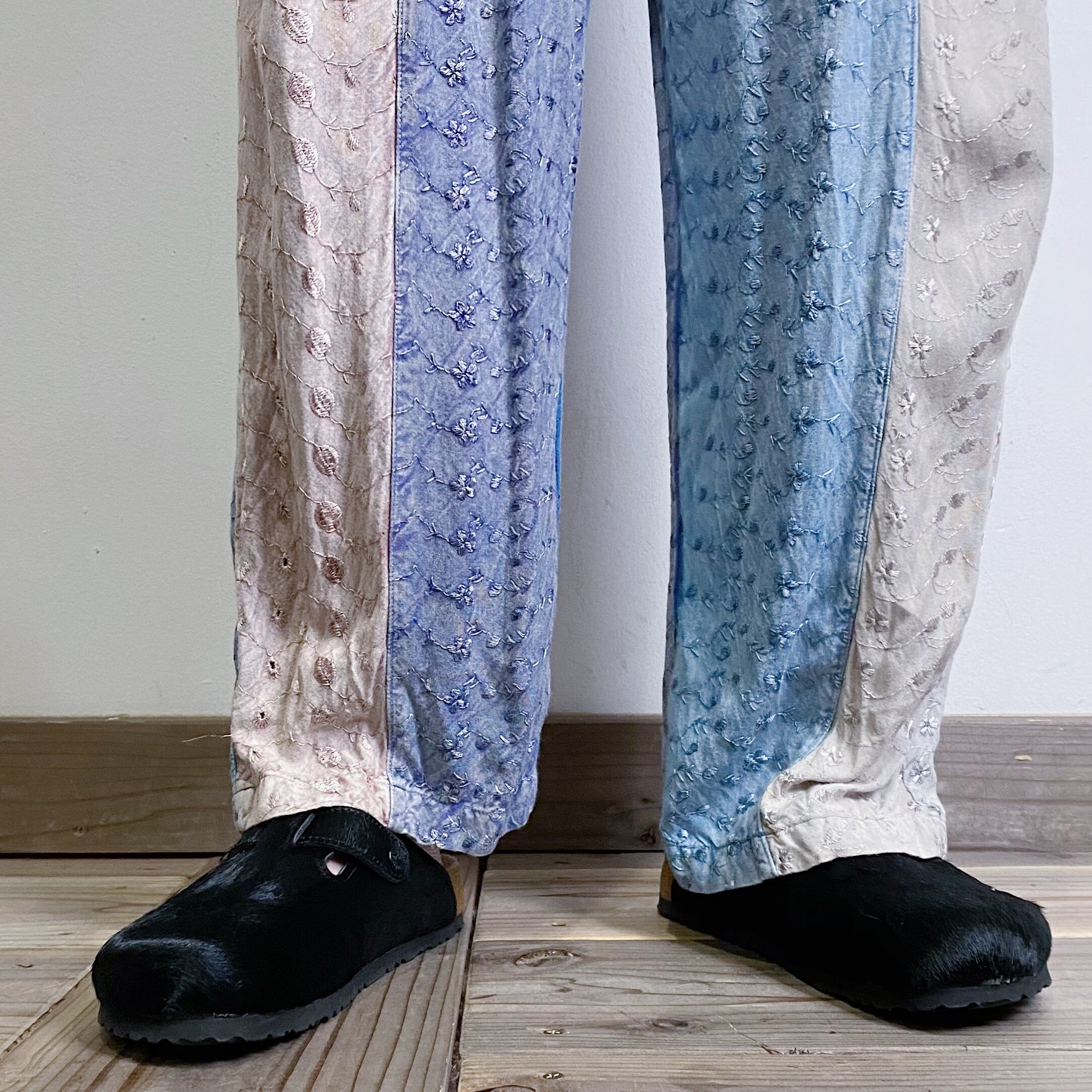 やさしい色合いのパッチワークが可愛いレーヨン素材のオーバーオールです。