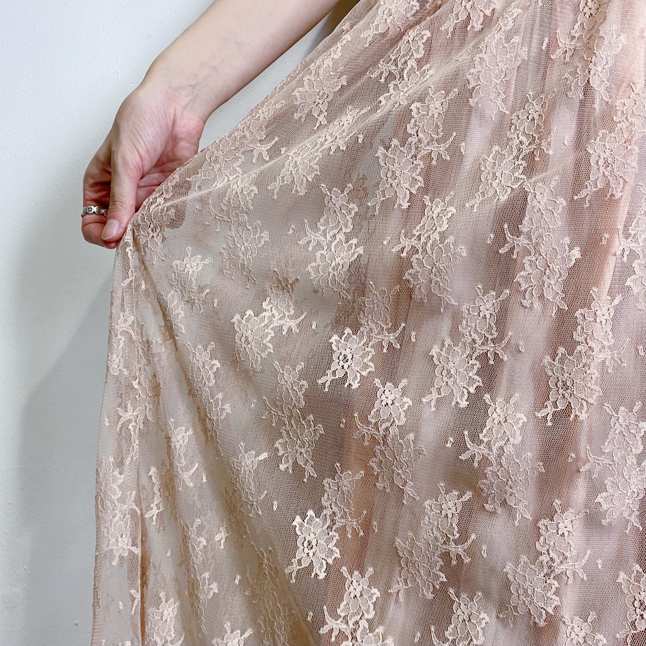 サーモンピンクに近い色合いが可愛い80年代のレーススカートです。