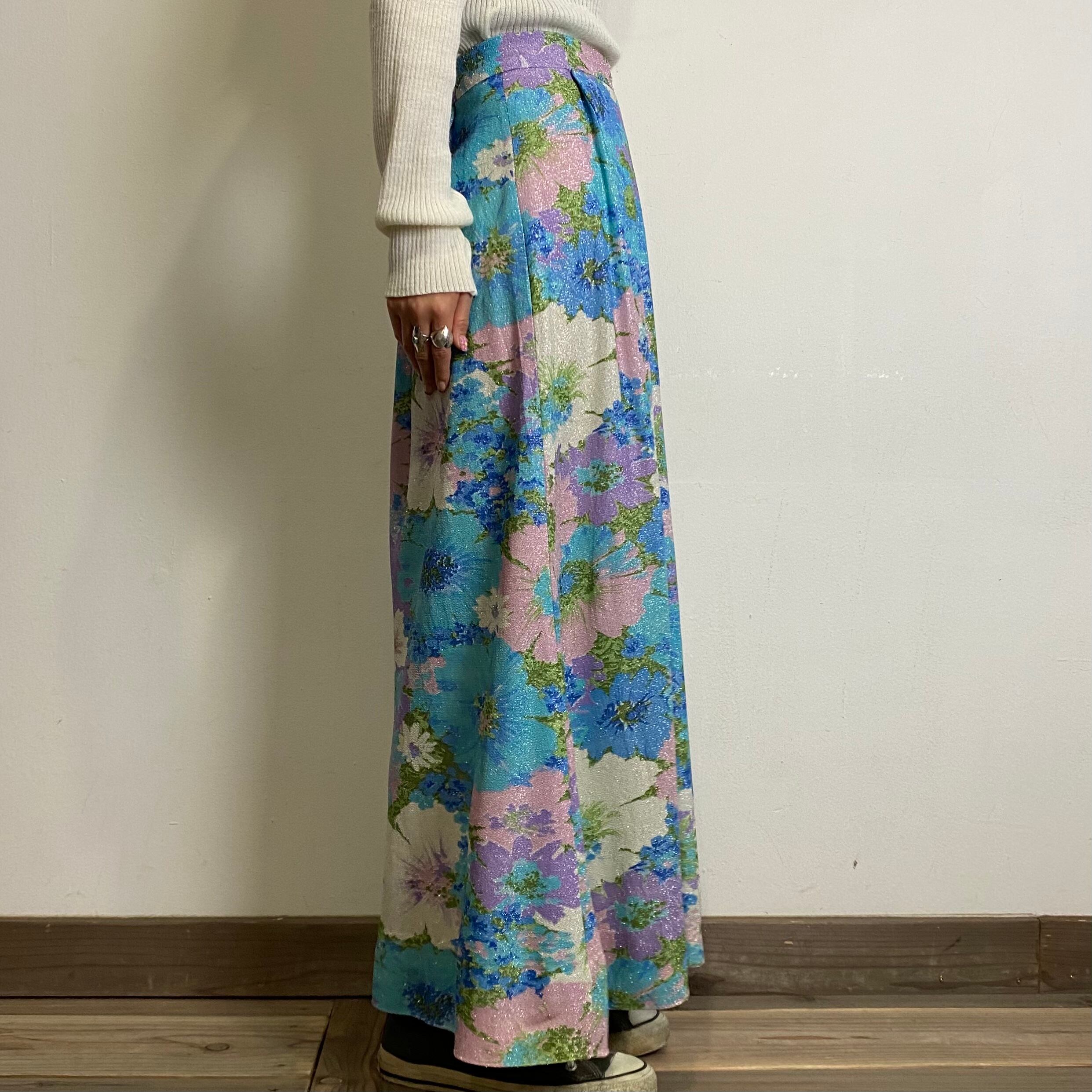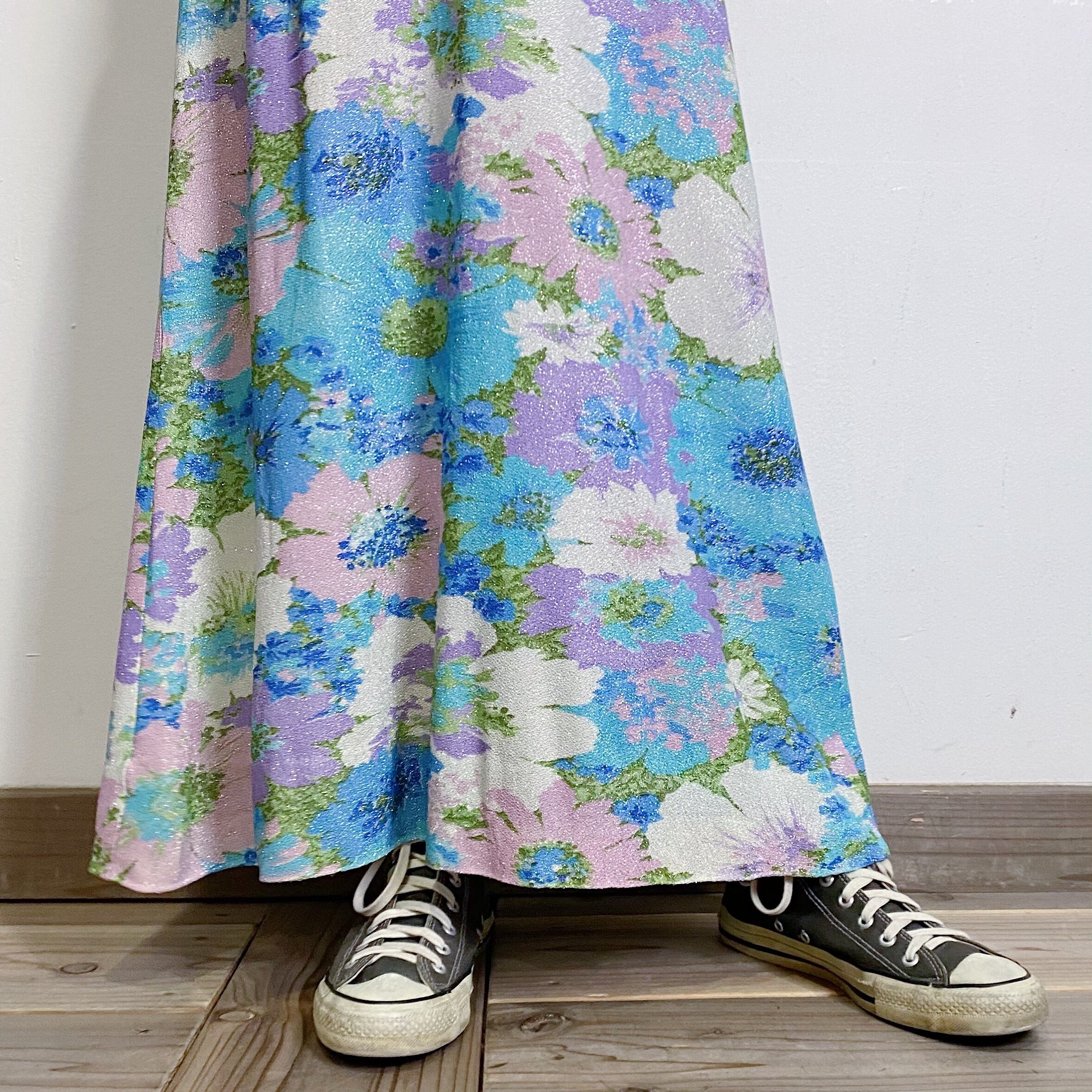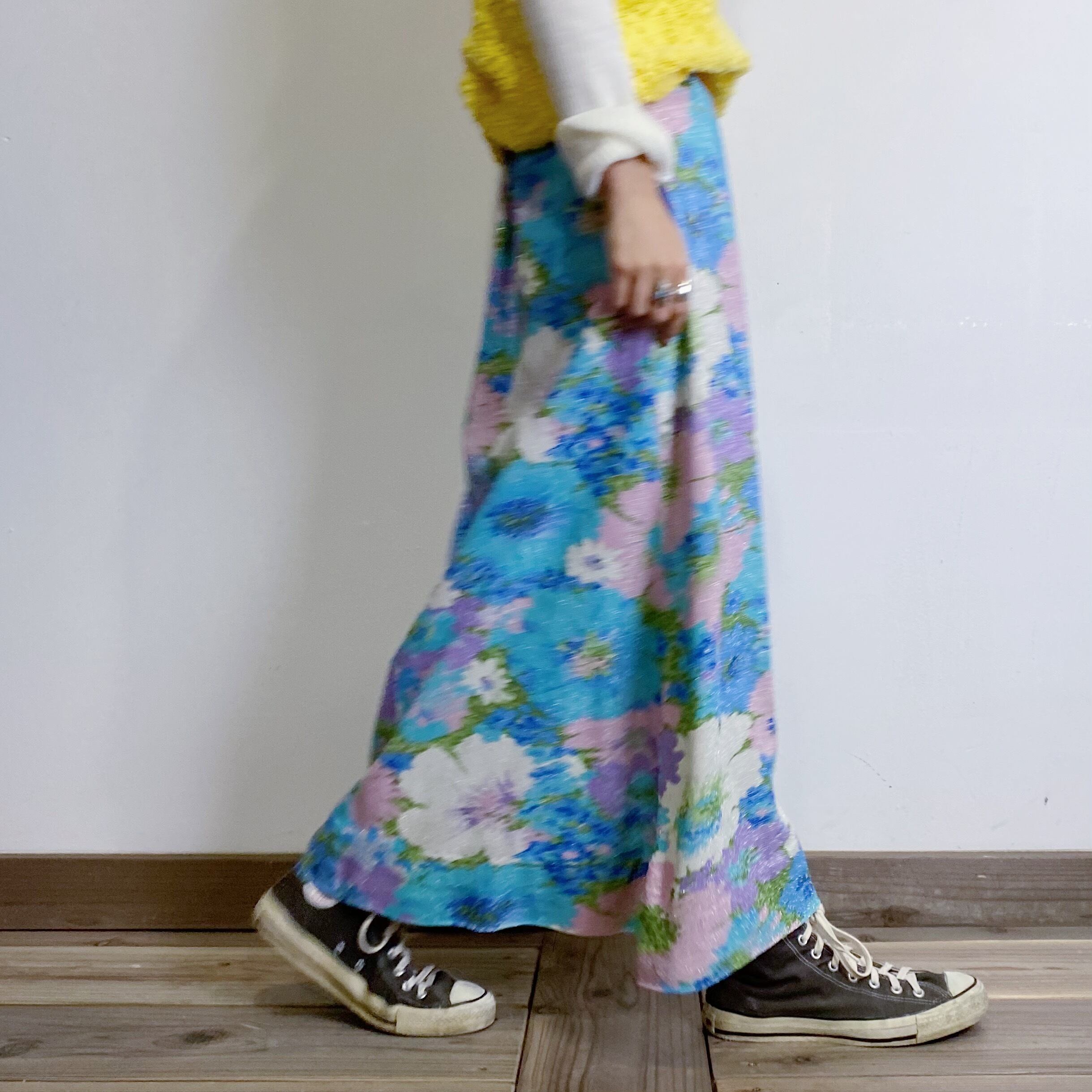 サックスブルーやパープルの色合いが可愛い60年代の花柄スカートです。