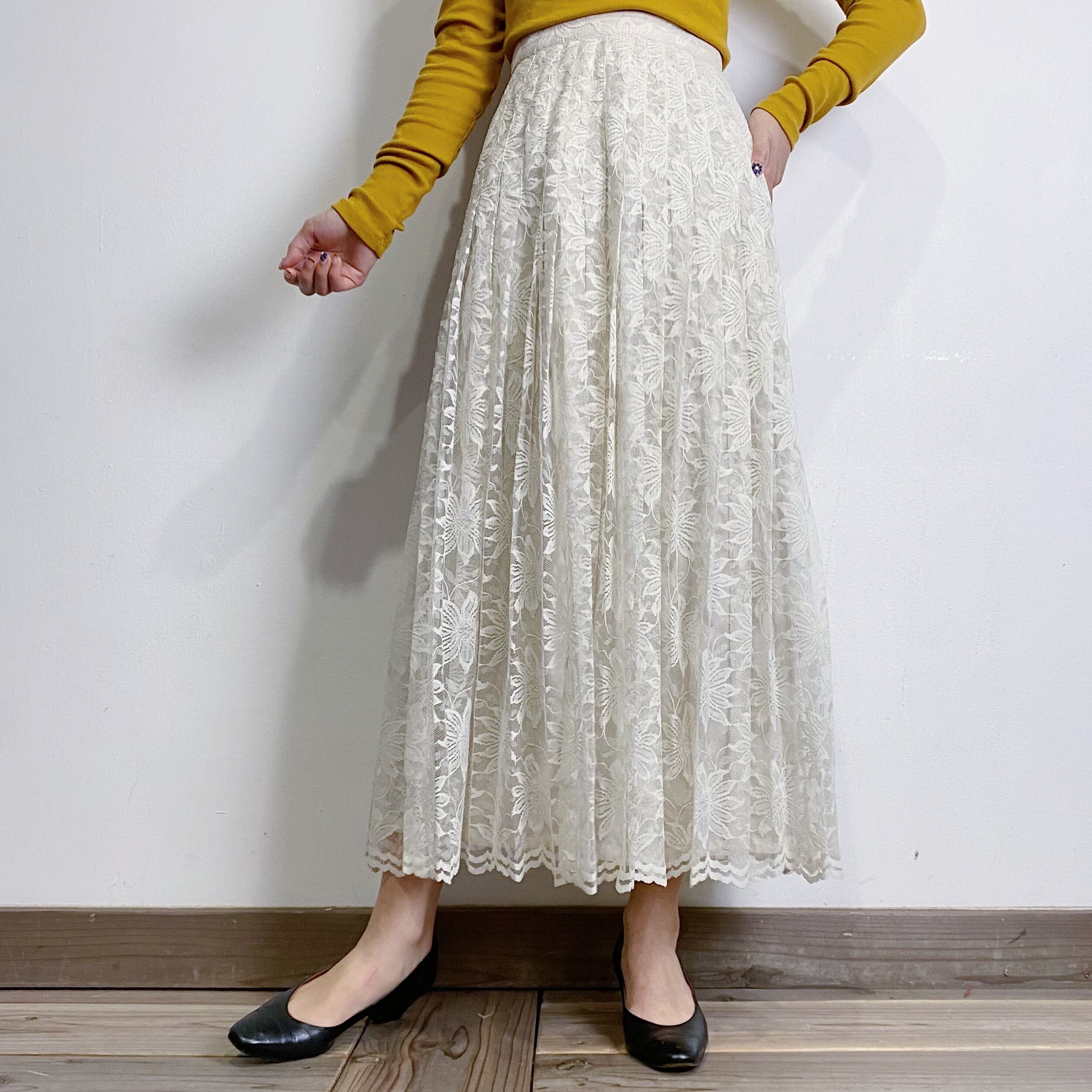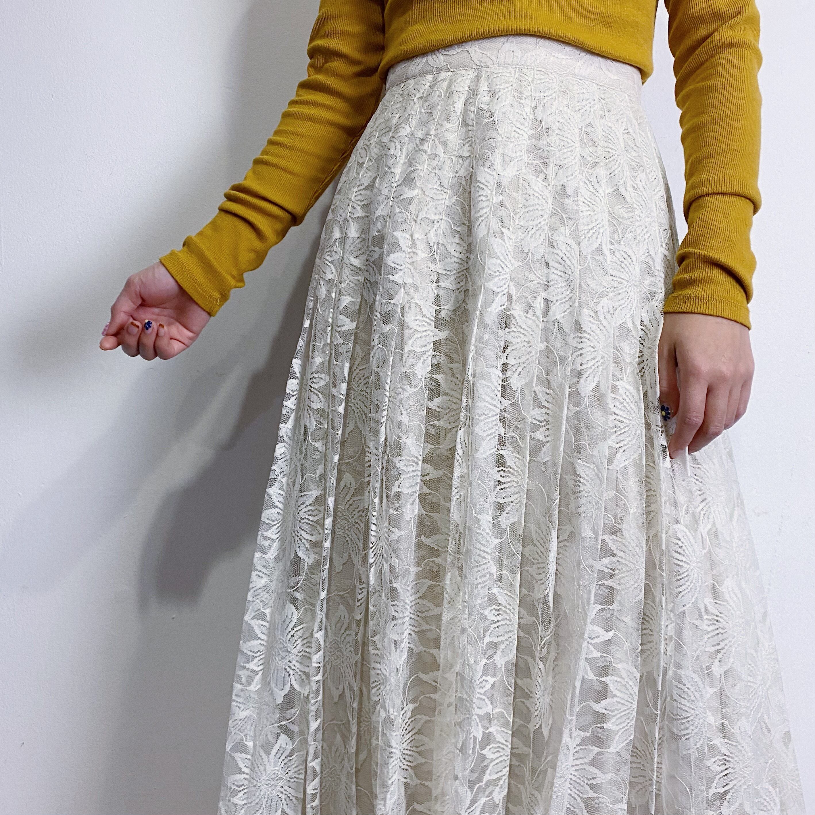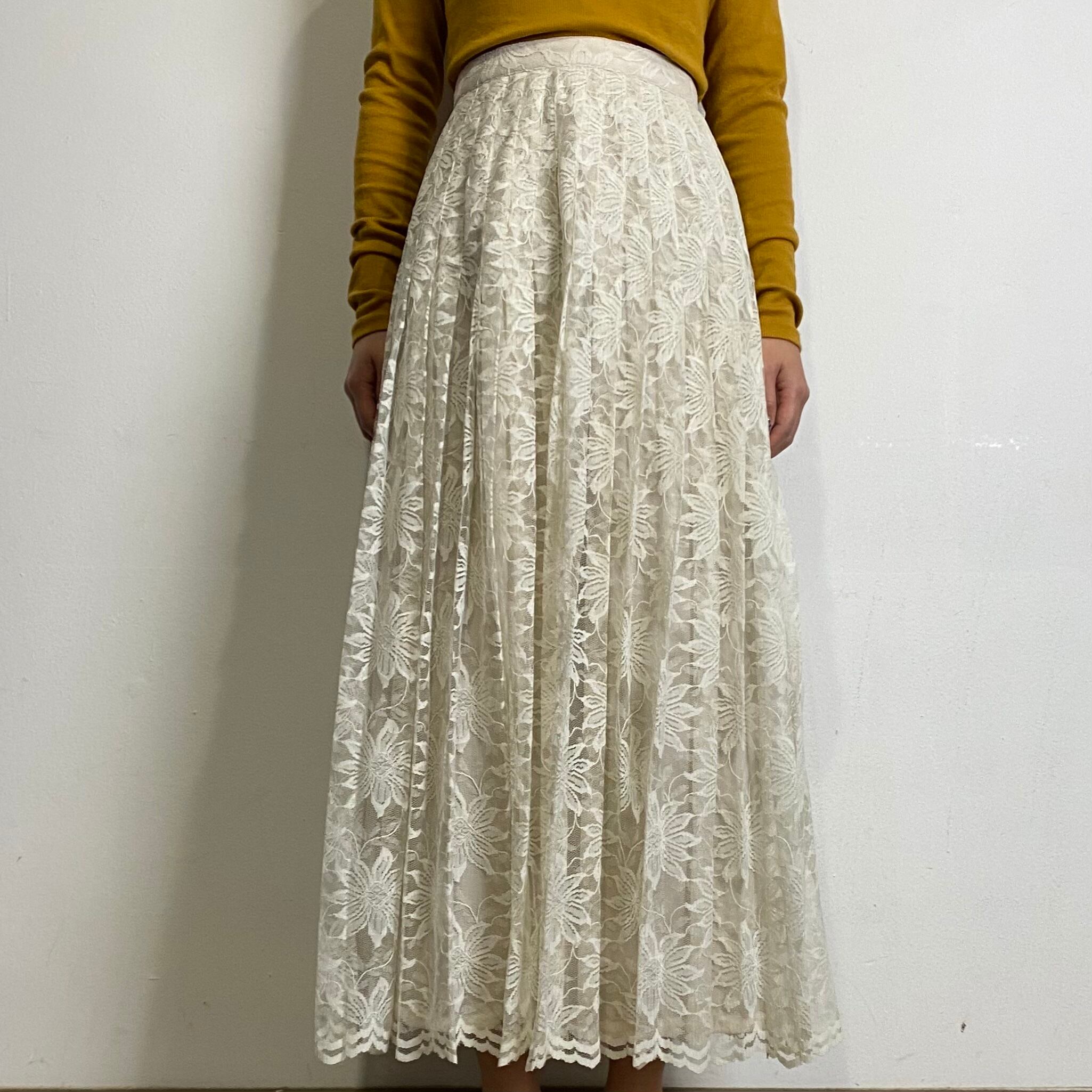 80s white lace long skirt