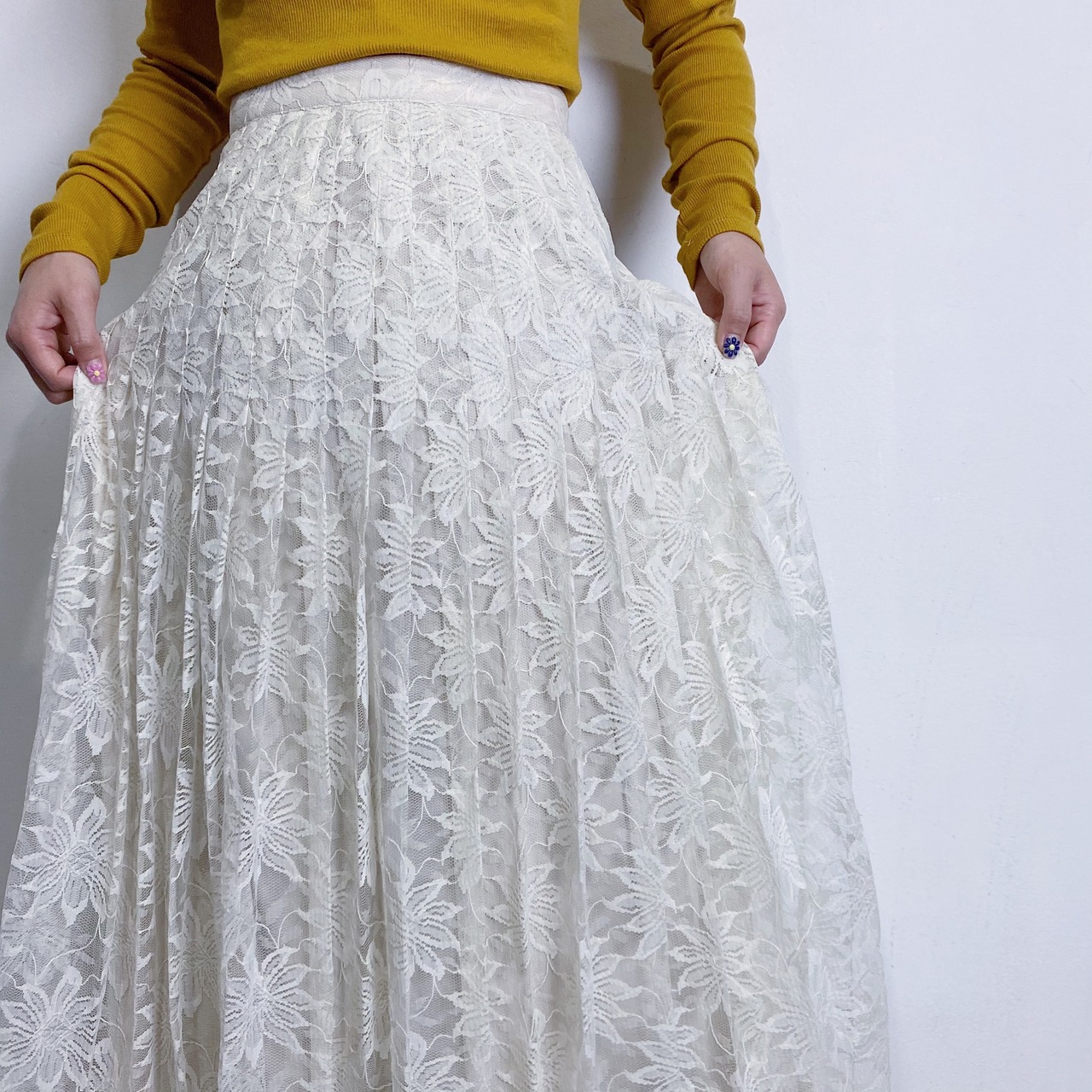お花の総レースがとってもかわいい80年代のスカートです。