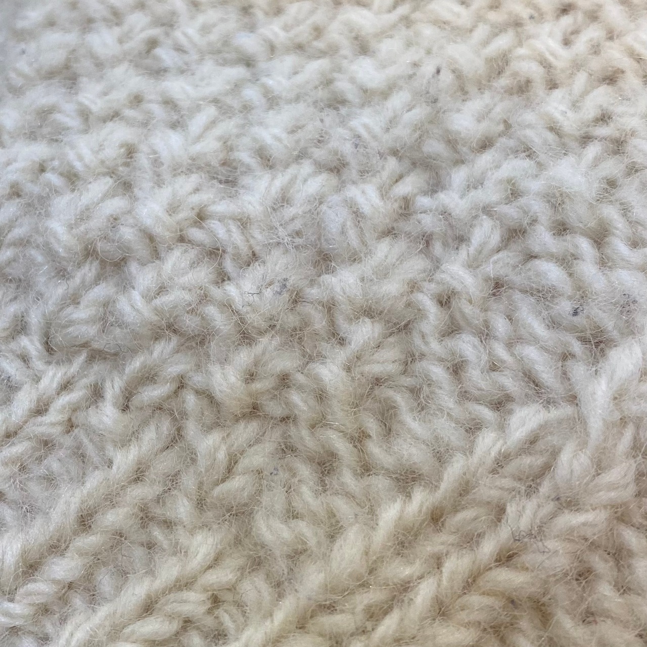 手編みで編まれたふかふかのウール素材で、大変暖かい一枚。