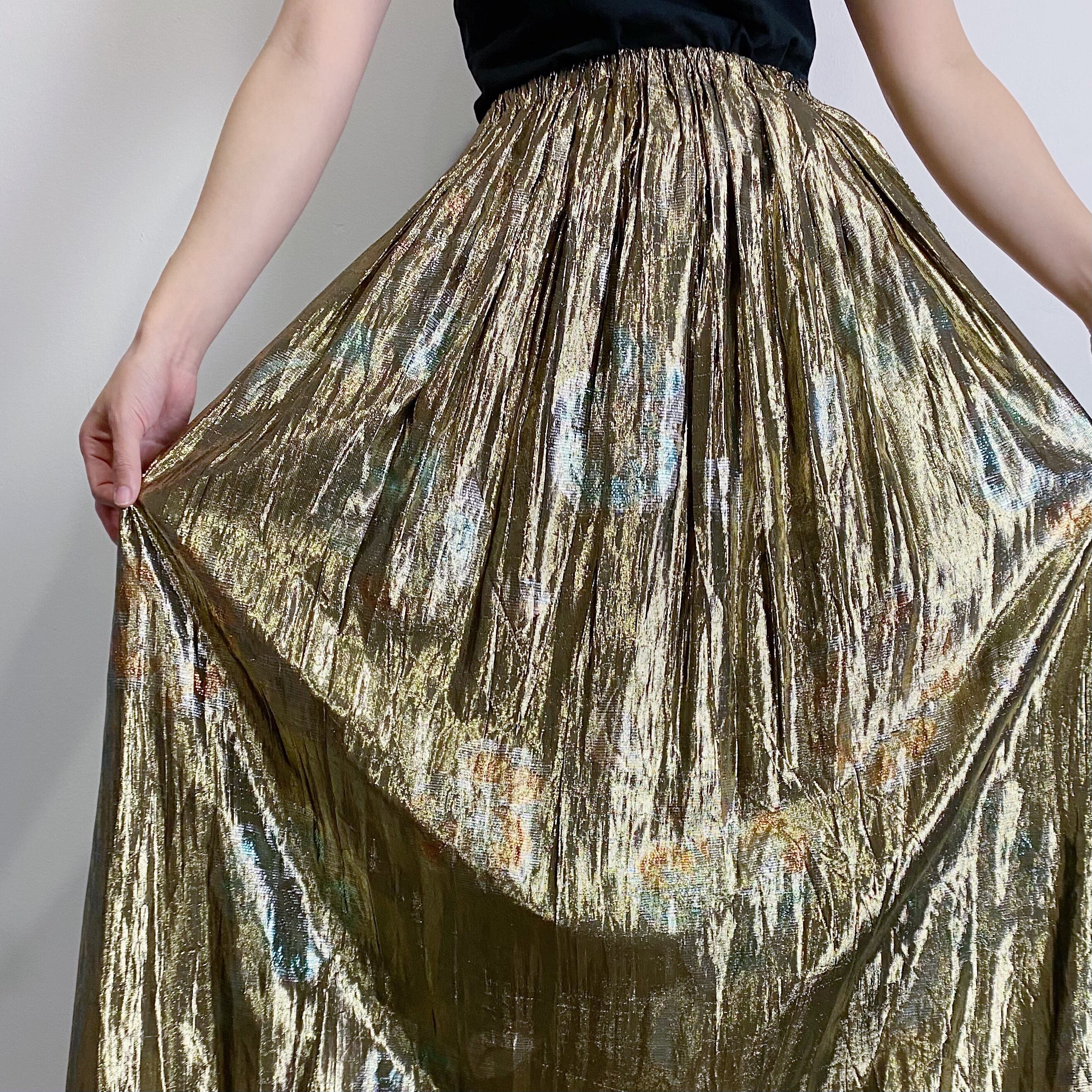 シャイニーでユニークな素材の80年代のロングスカートです。